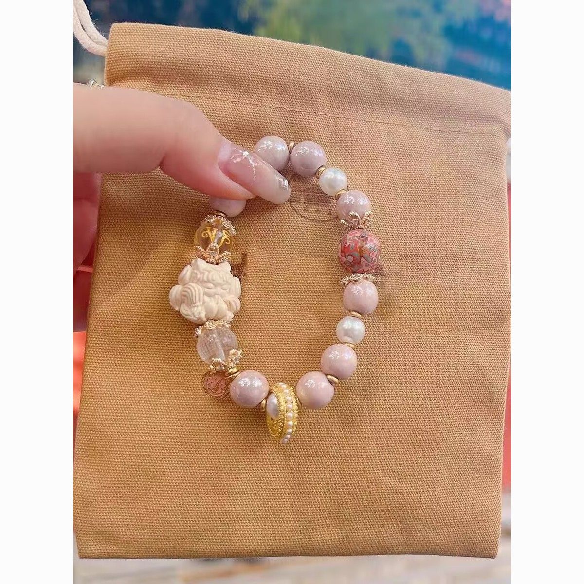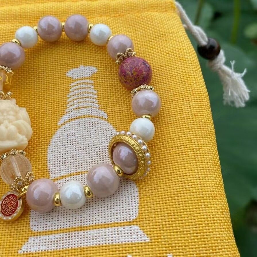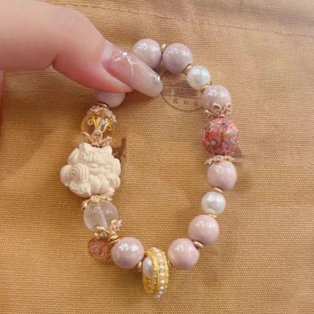 新款香积琉璃粉瓷手串搭配狐仙粉色大漆珠跑环单圈多巴胺女孩礼物