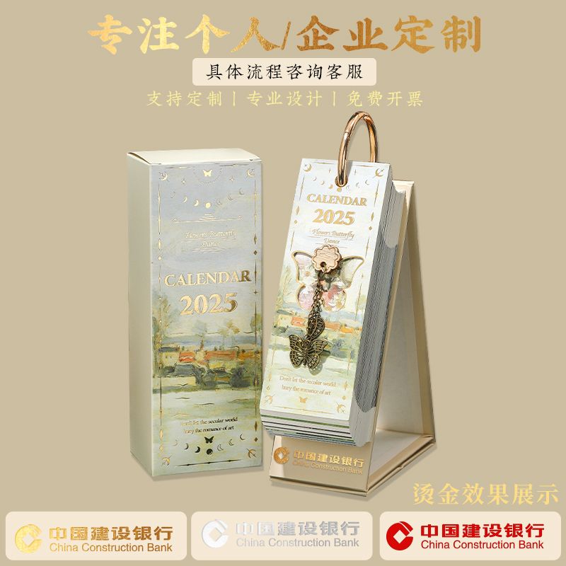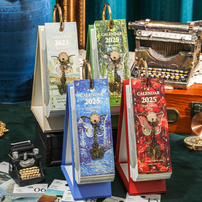2025年镂空蝴蝶单向日历ins高颜值桌面摆件2024打卡记事备忘台历