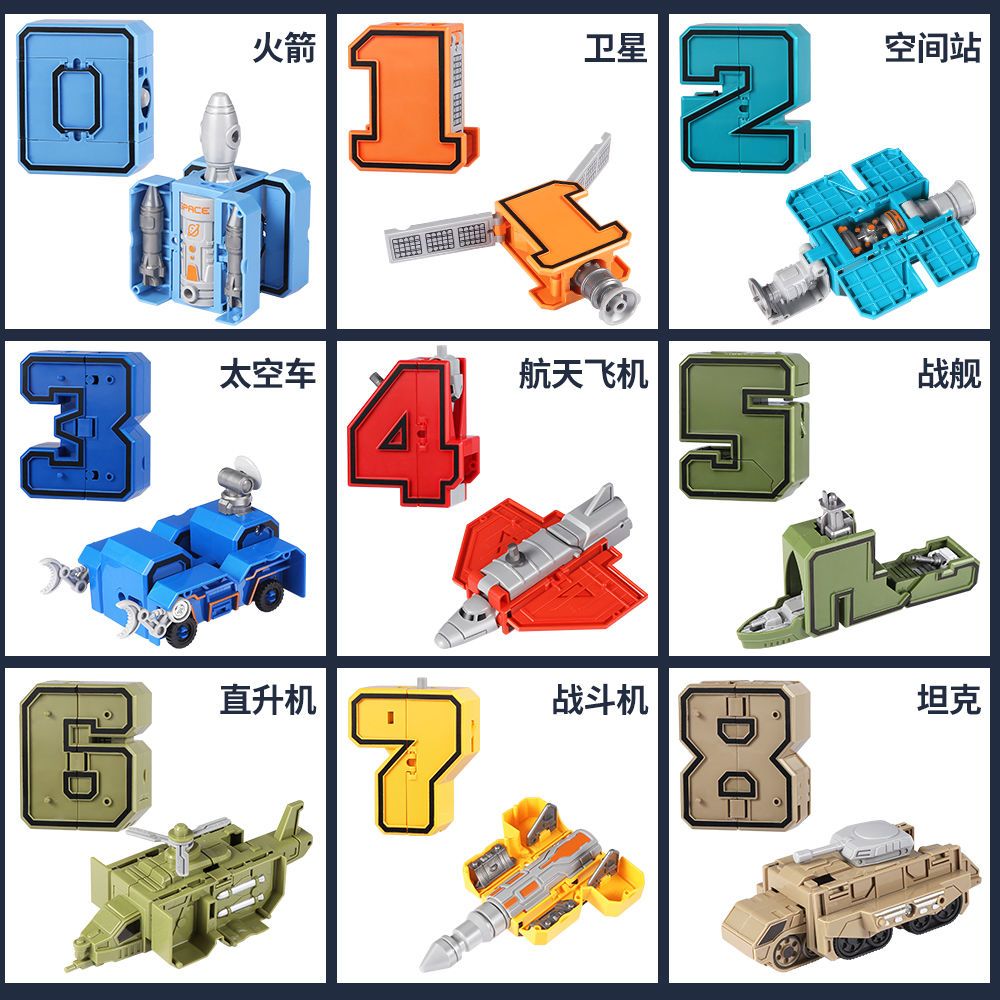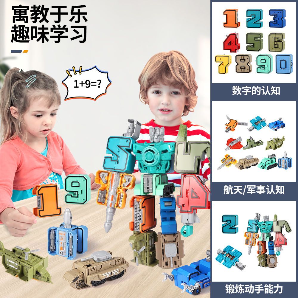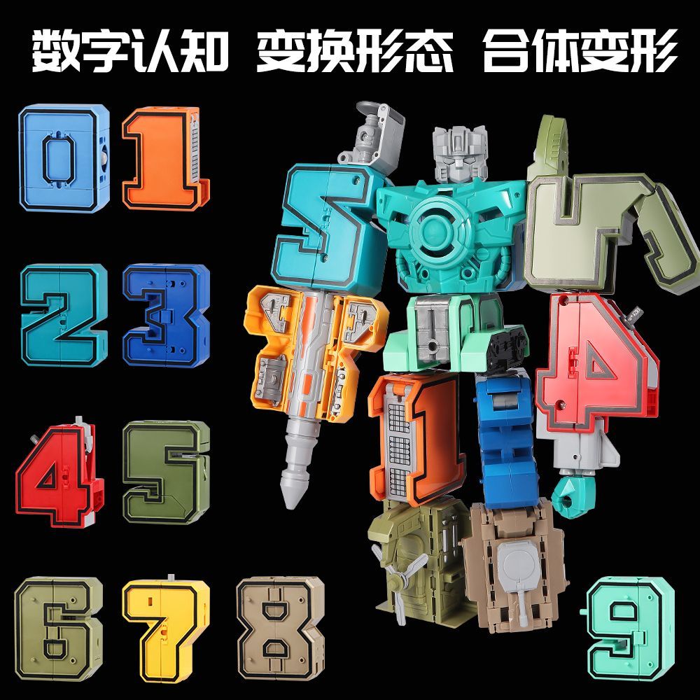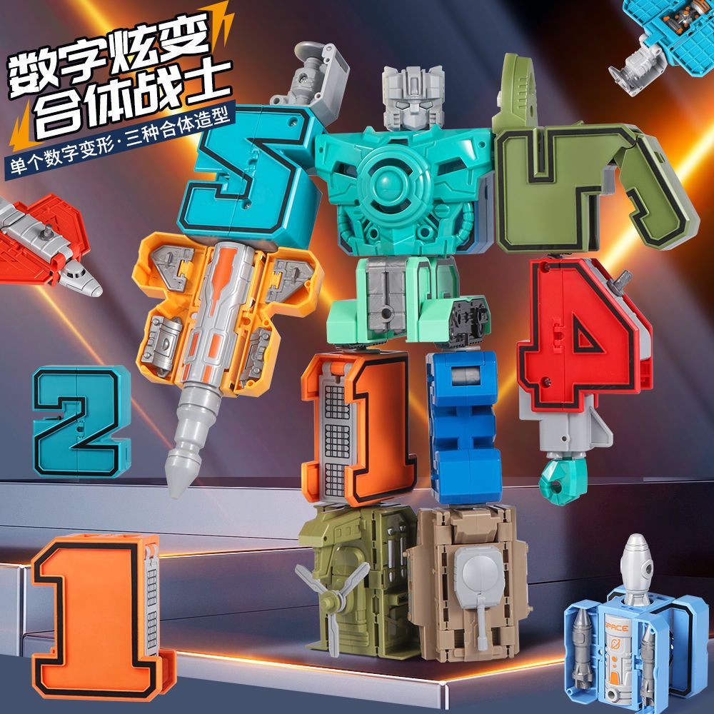 数字变形金刚战队机器人合体汽车坦克车儿童拼插男孩智力益智玩具