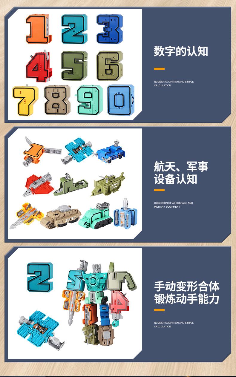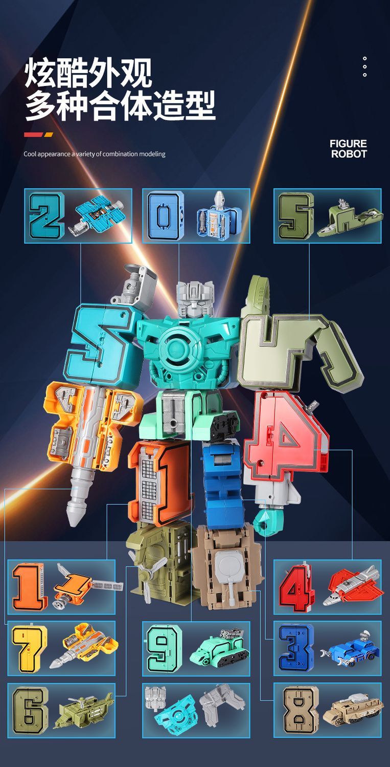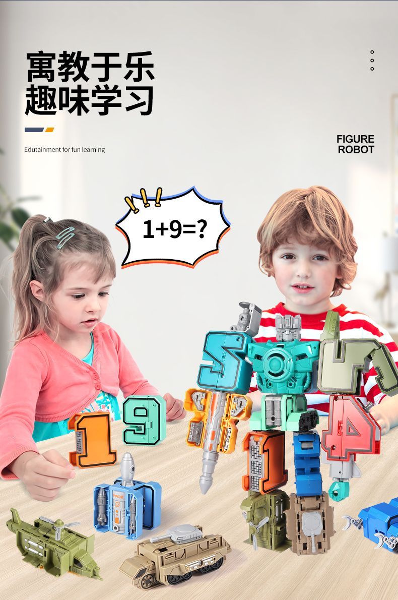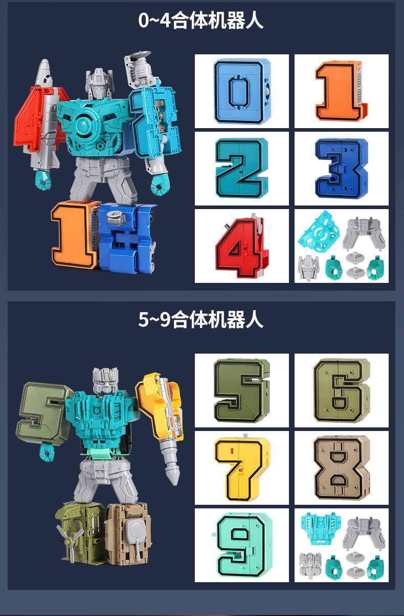 数字变形金刚战队机器人合体汽车坦克车儿童拼插男孩智力益智玩具