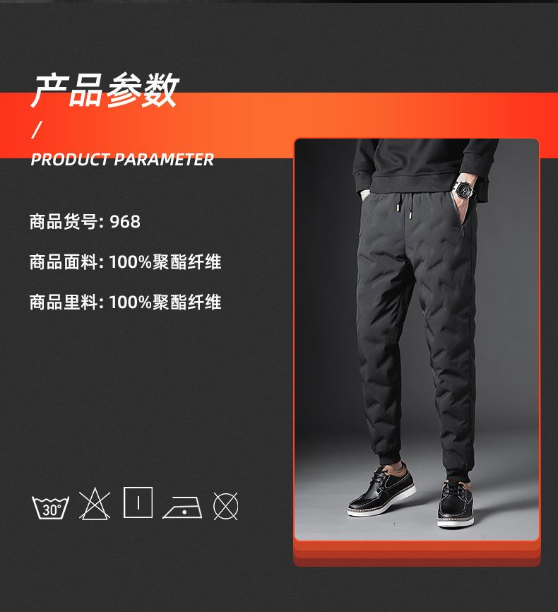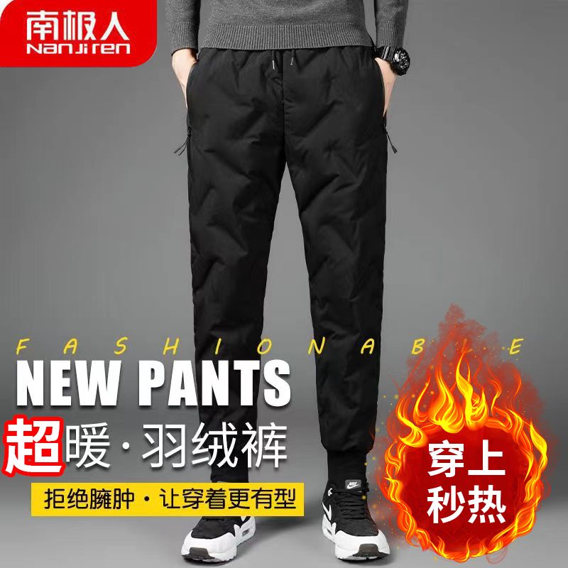 南极人羽绒裤男士冬季外穿保暖修身户外运动休闲长裤束脚鸭绒裤男