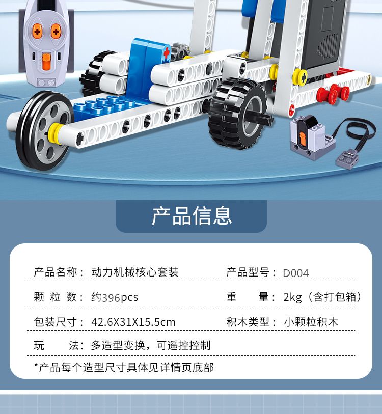 | 【入门级】396颗粒(电动组1套)遥控编程 | USD $26.71 | 99999 piece available |
