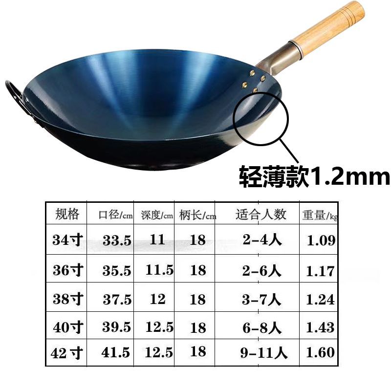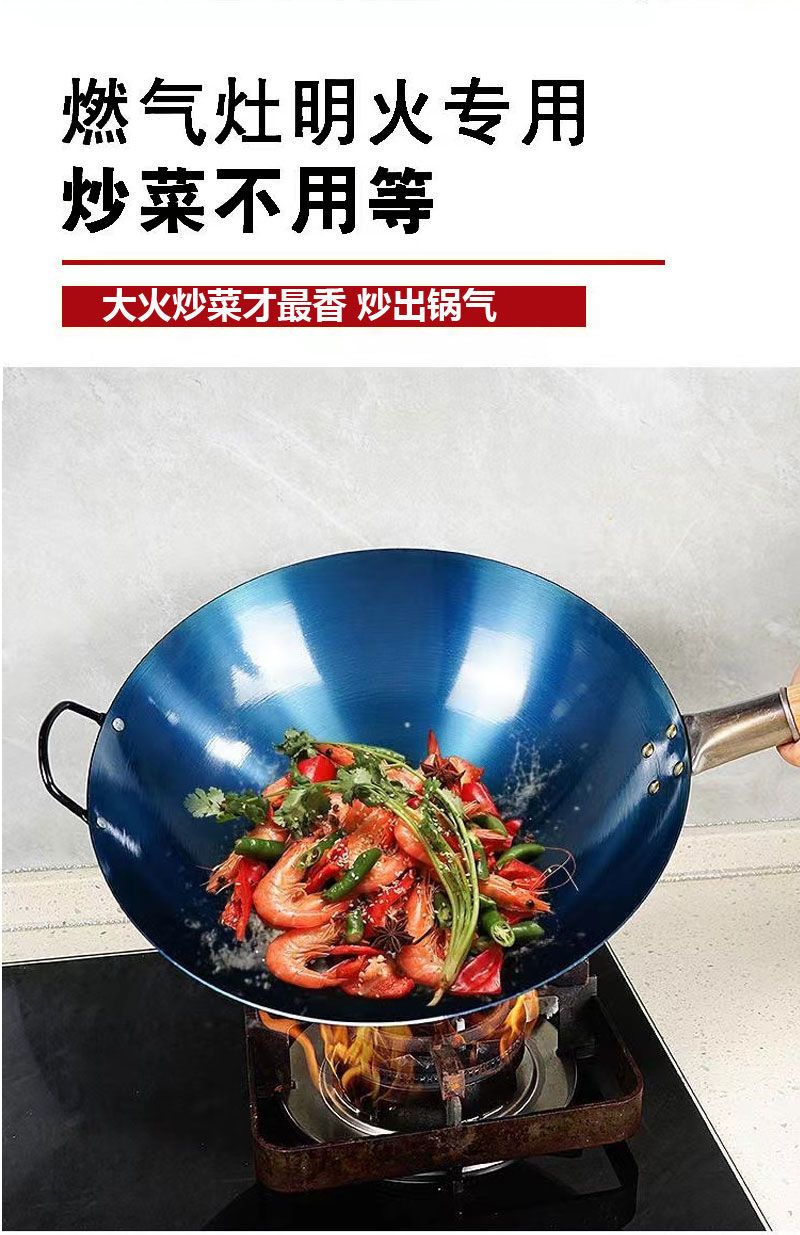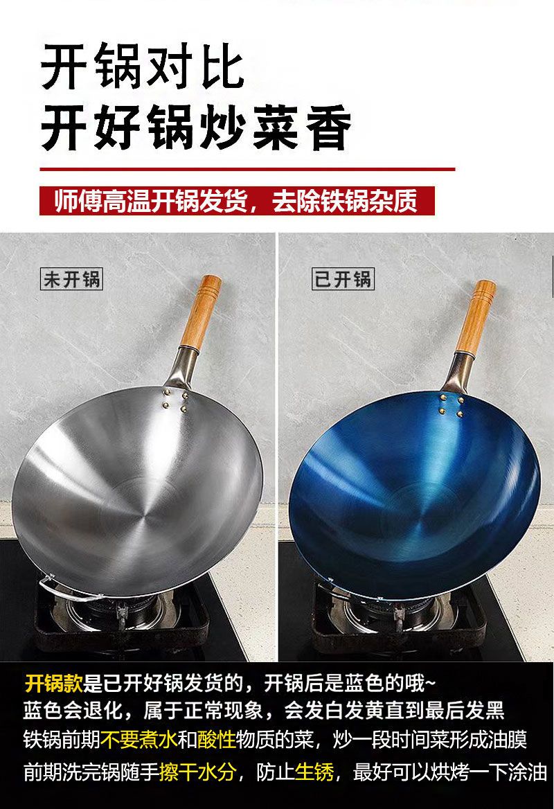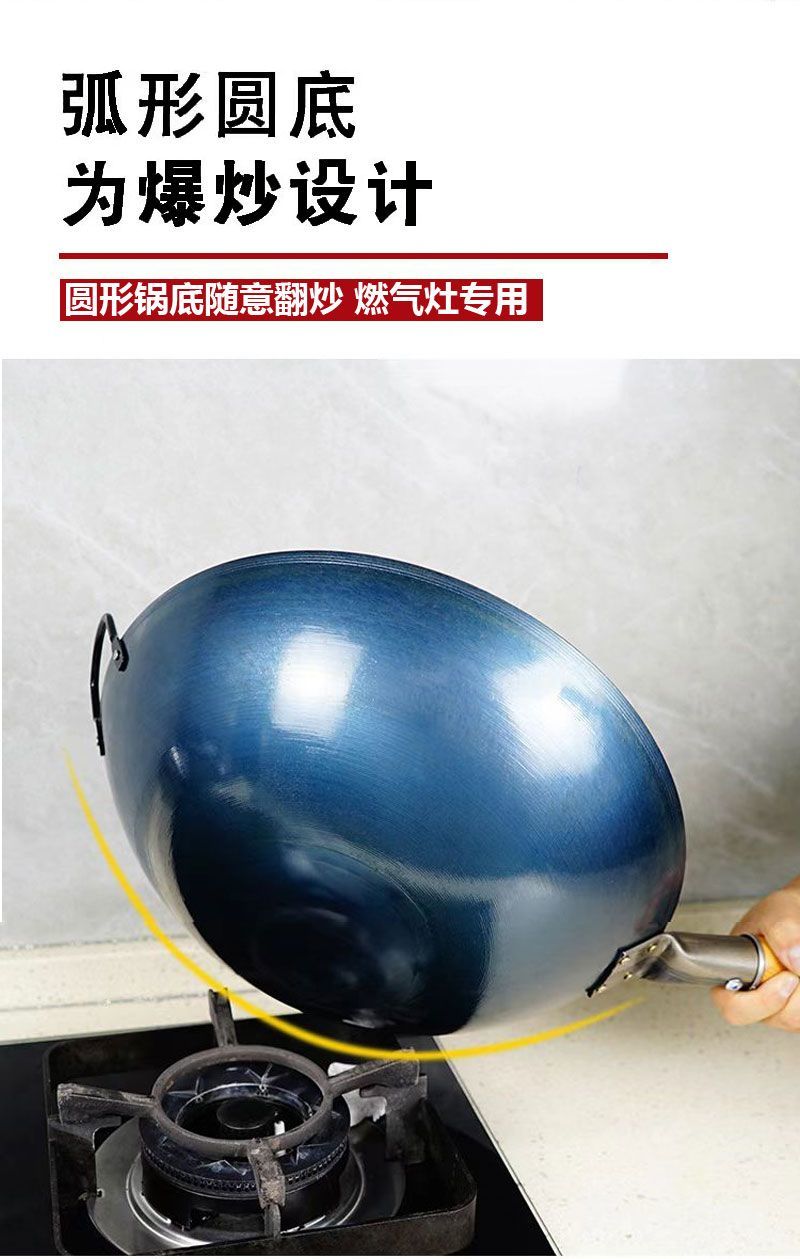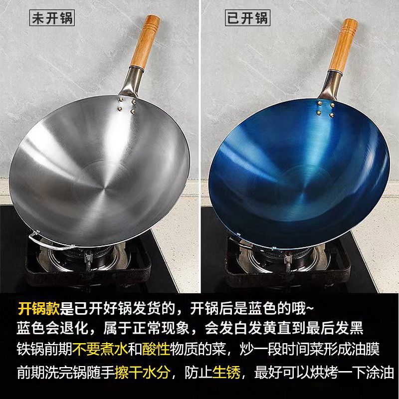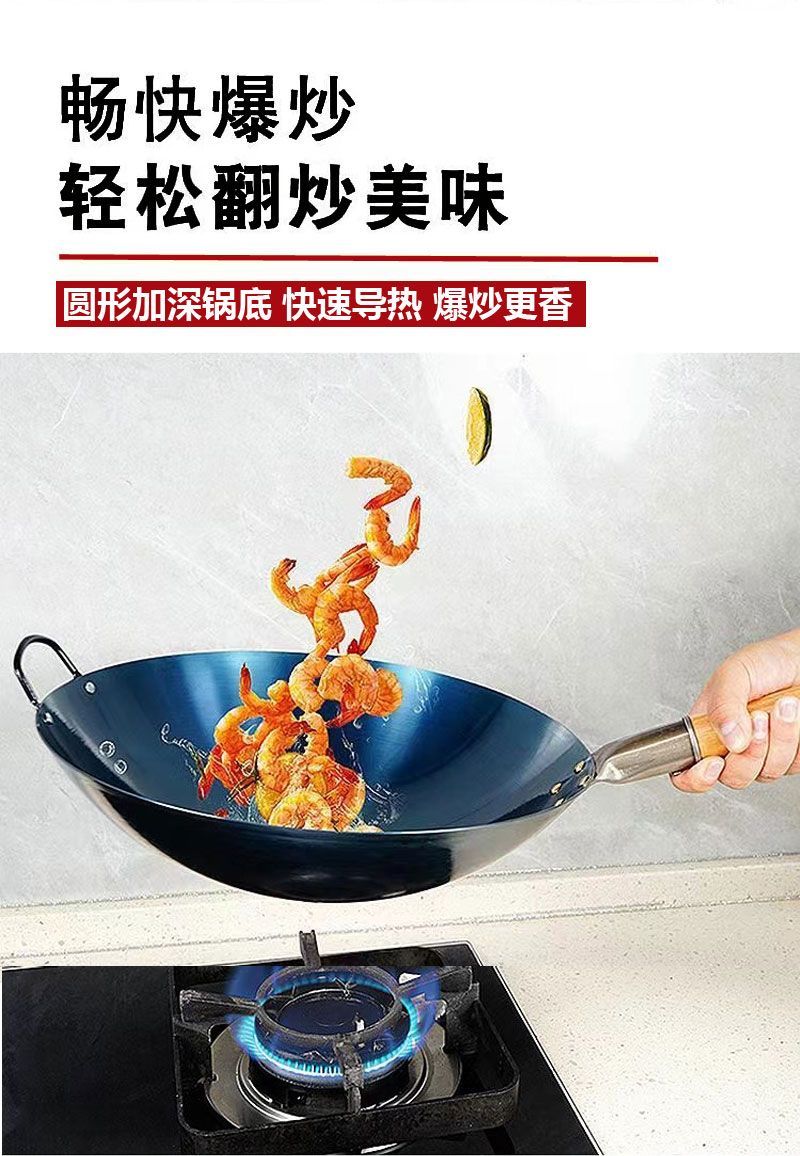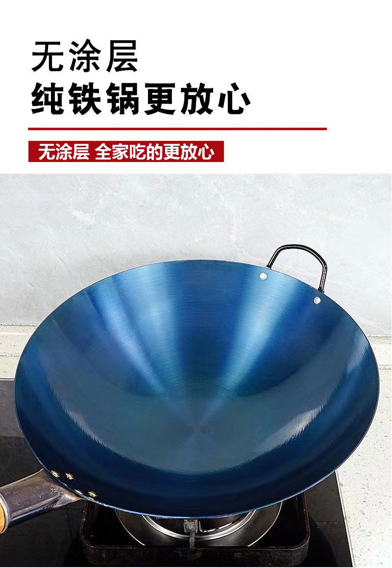 超薄无涂层家用炒菜铁锅不粘锅炒锅厨师专用圆底电磁炉适用全套