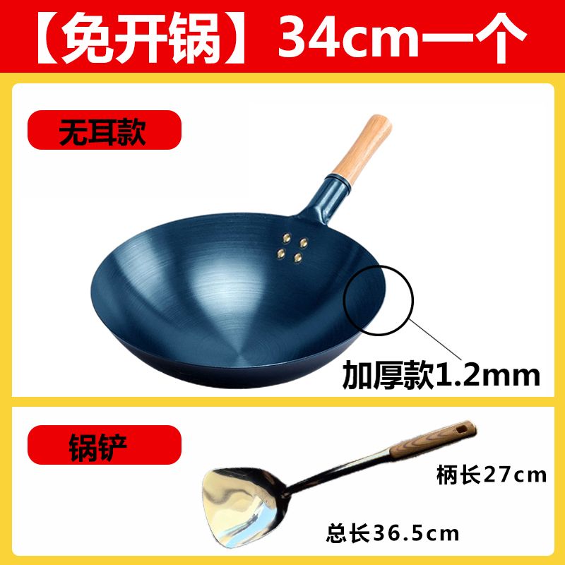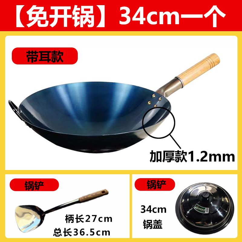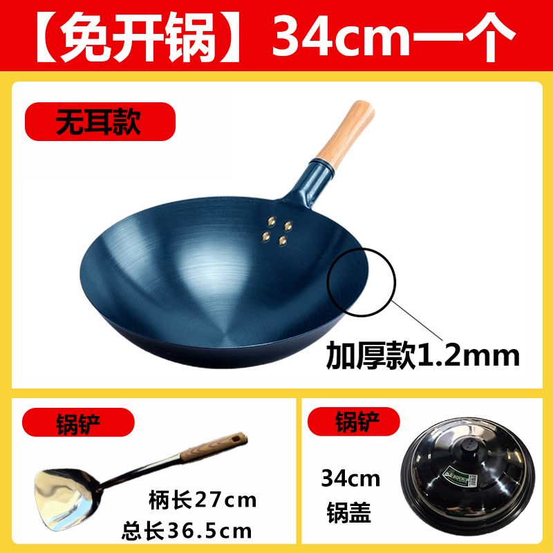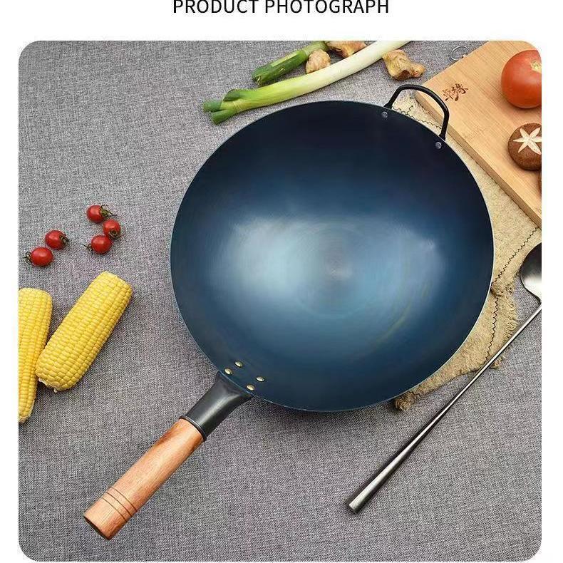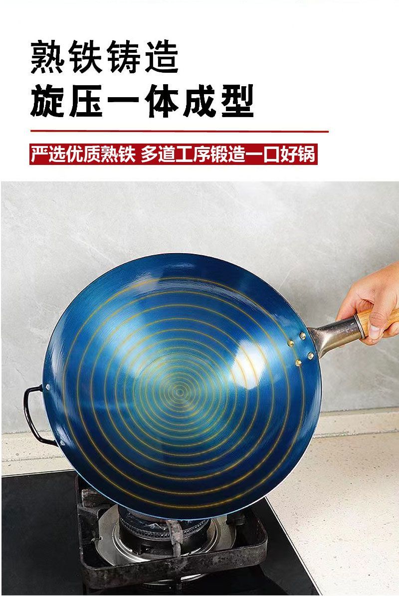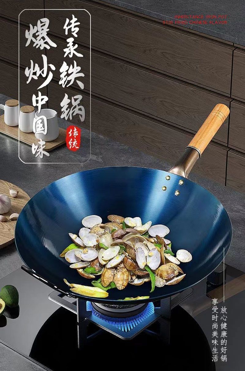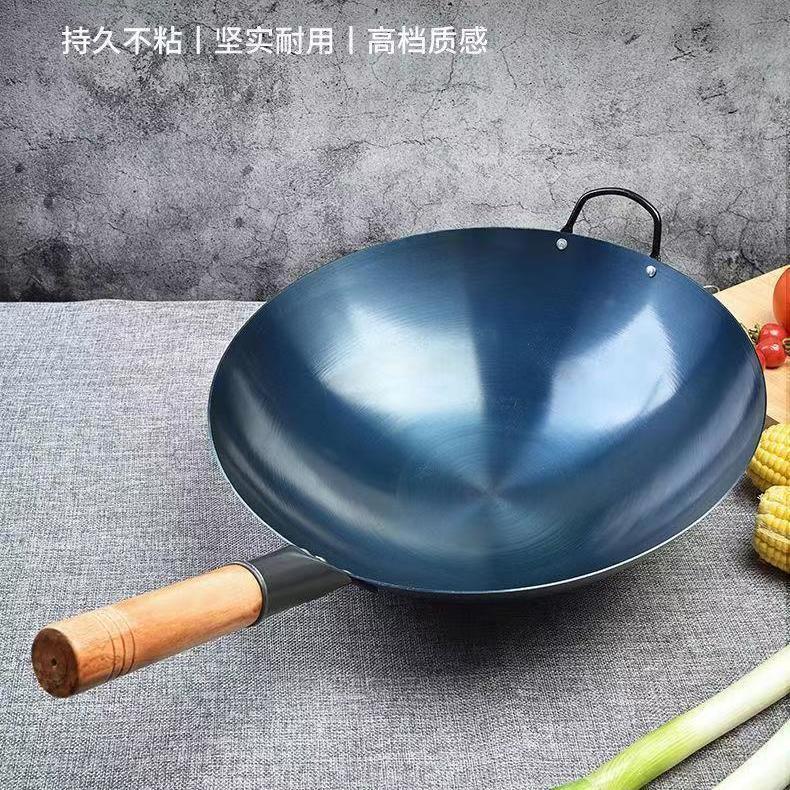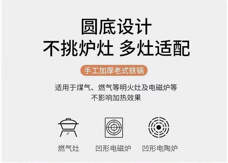 超薄无涂层家用炒菜铁锅不粘锅炒锅厨师专用圆底电磁炉适用全套