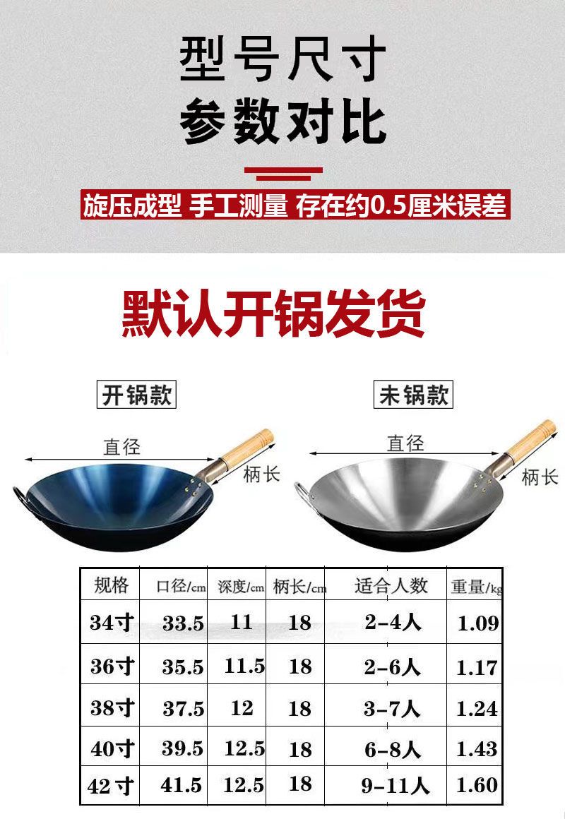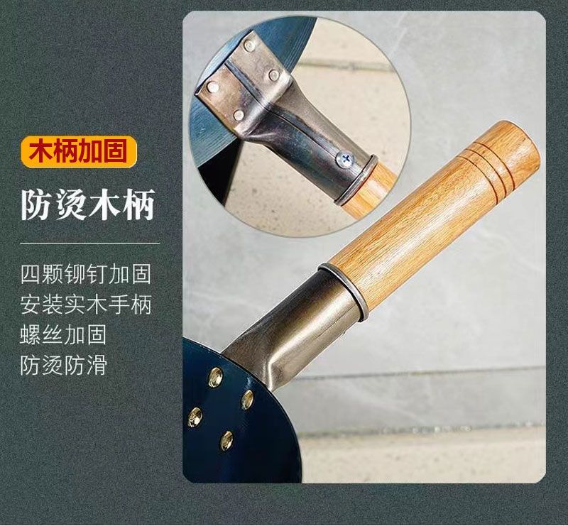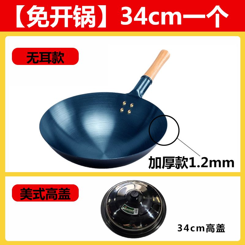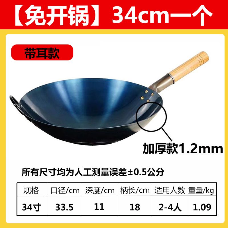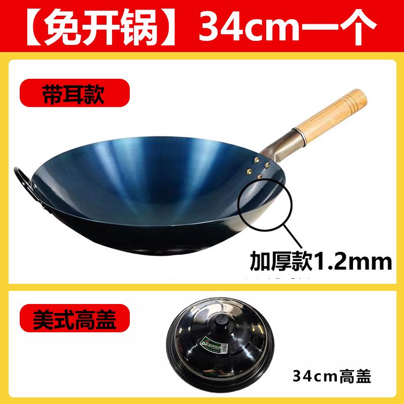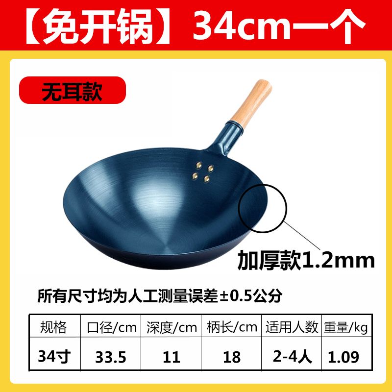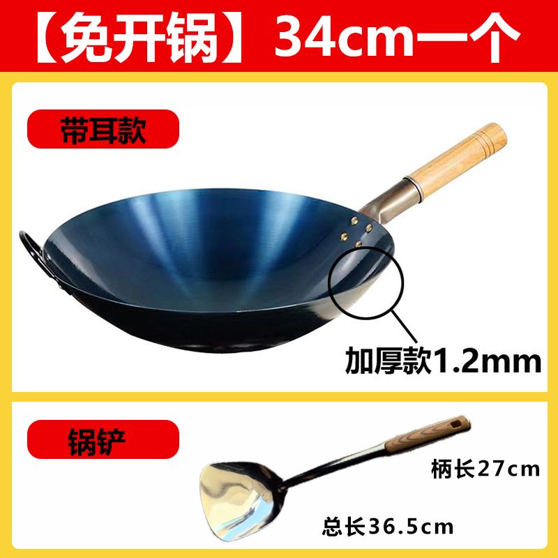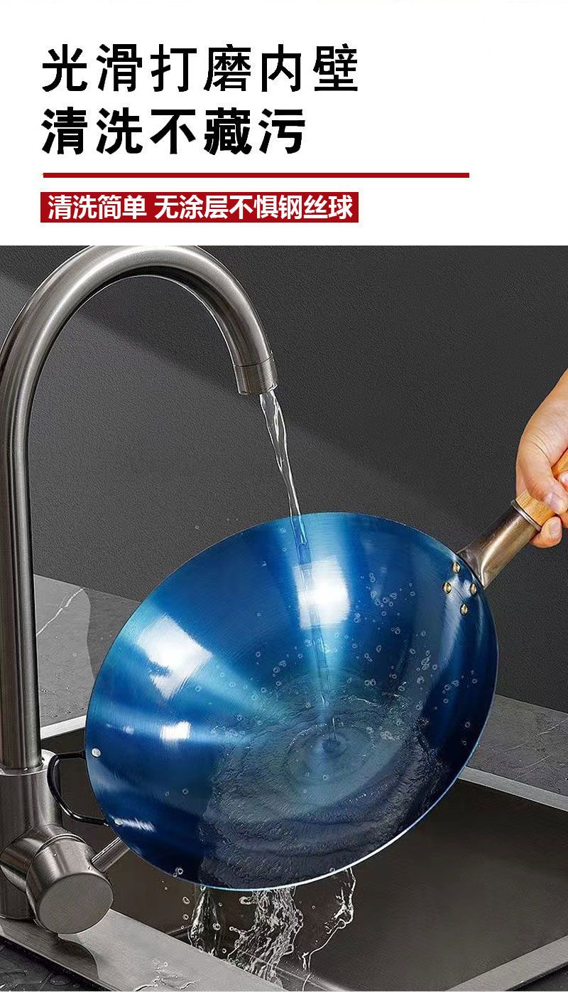 超薄无涂层家用炒菜铁锅不粘锅炒锅厨师专用圆底电磁炉适用全套