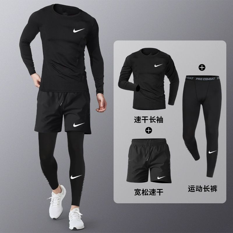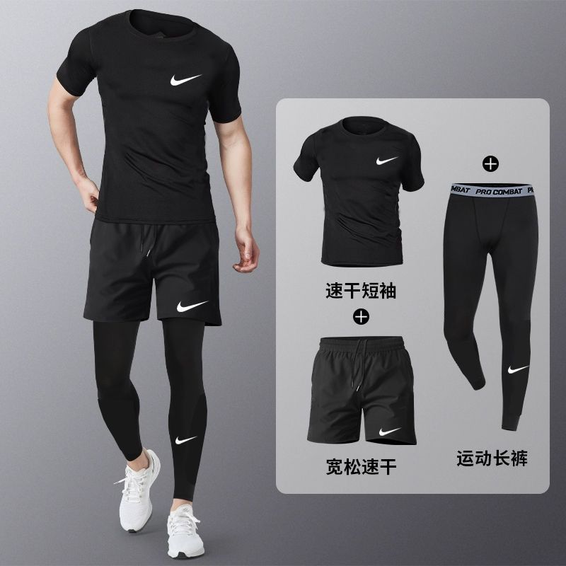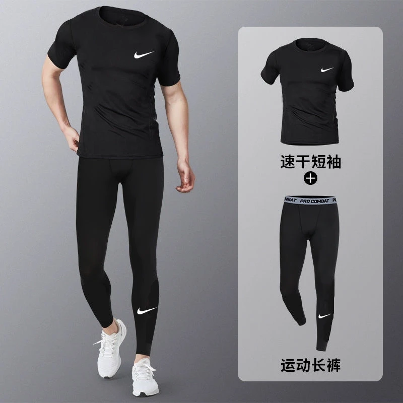 紧身裤男短裤男速干田径马拉松健身压缩运动套装跑步训练弹力高弹