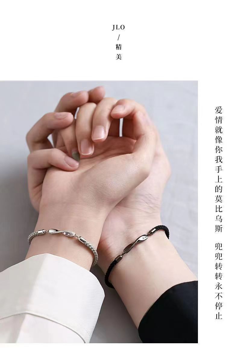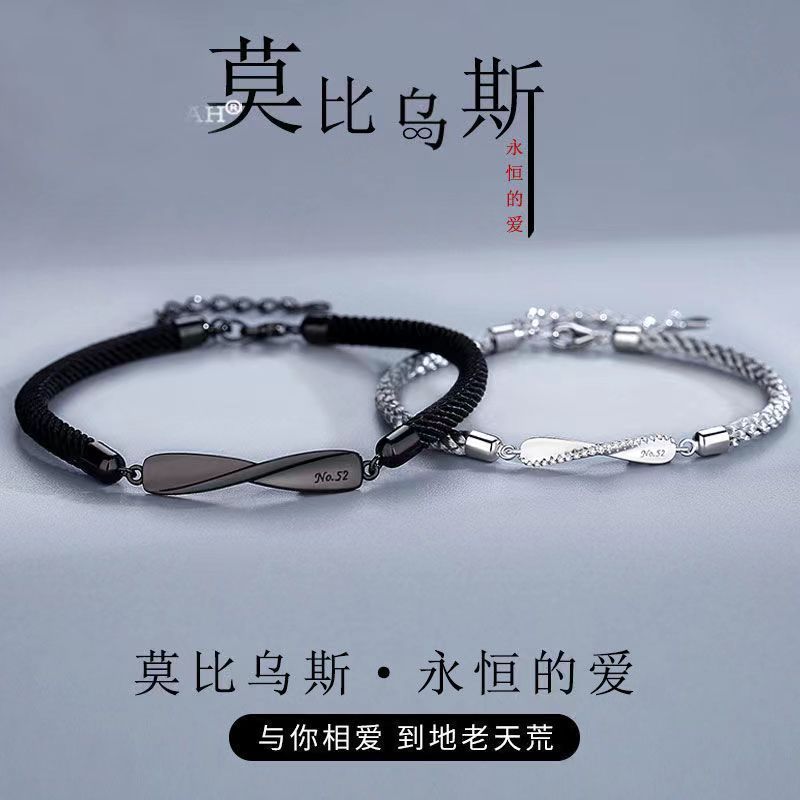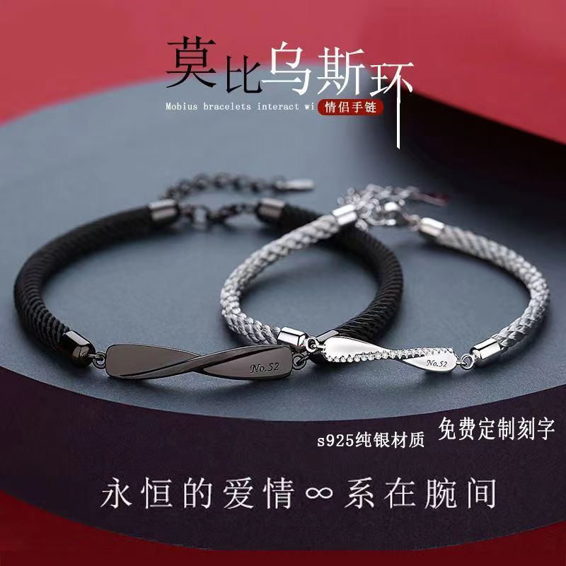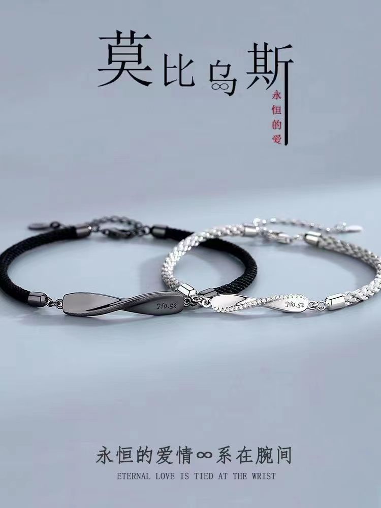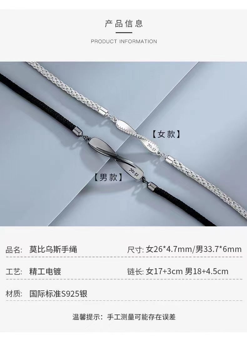 莫比乌斯情侣镀S925纯银手链一对小众编织手绳轻奢情人节高级礼物