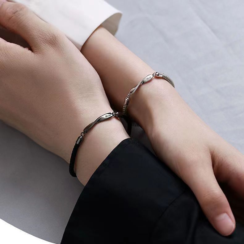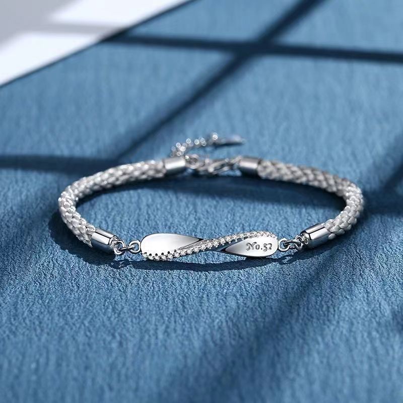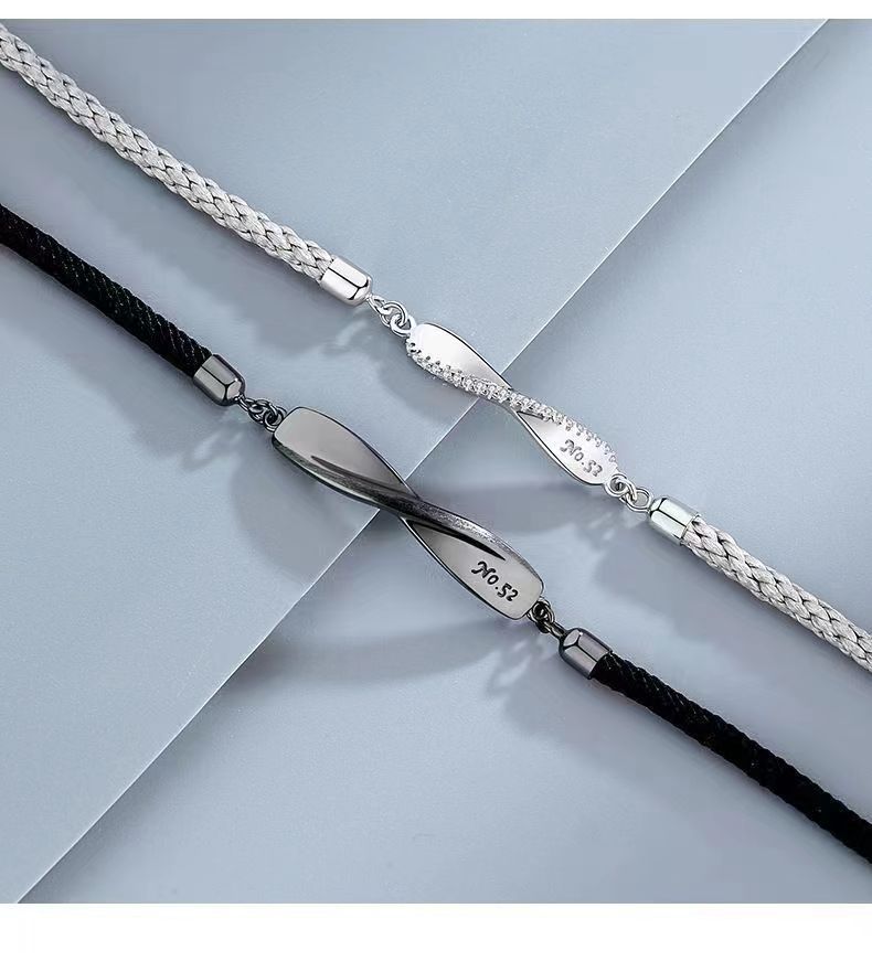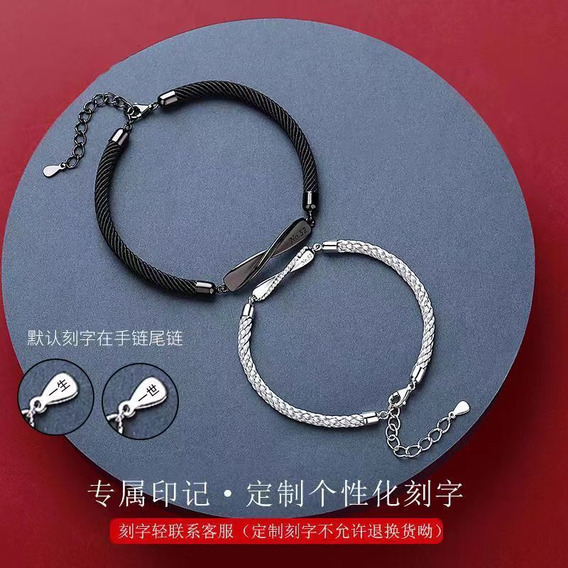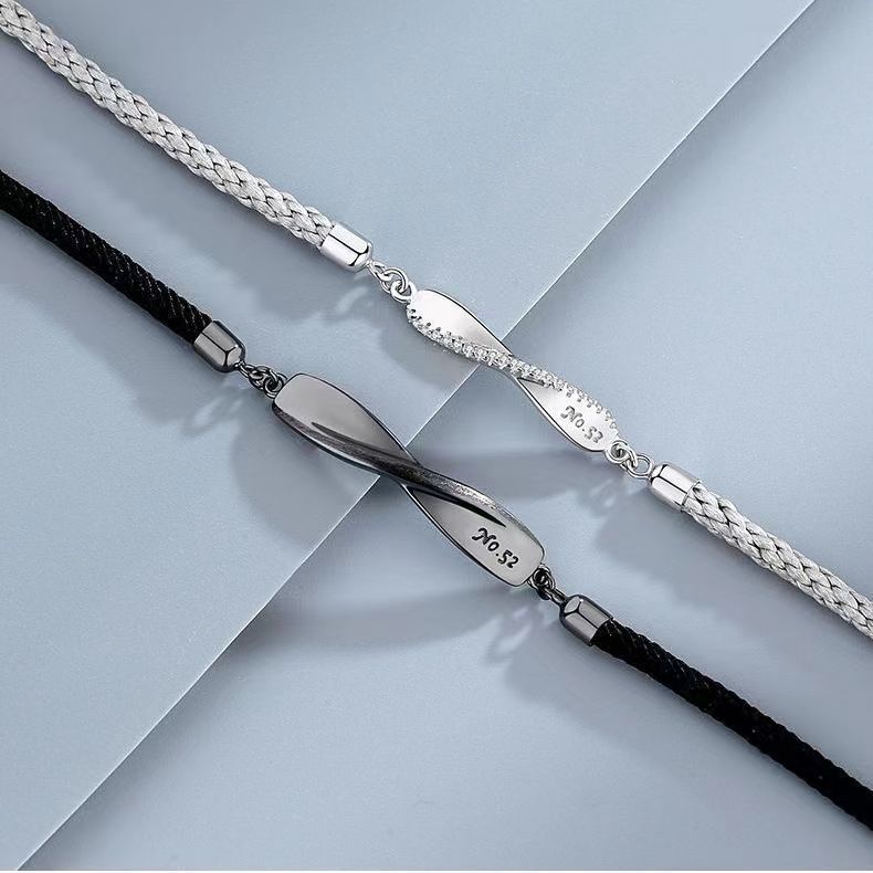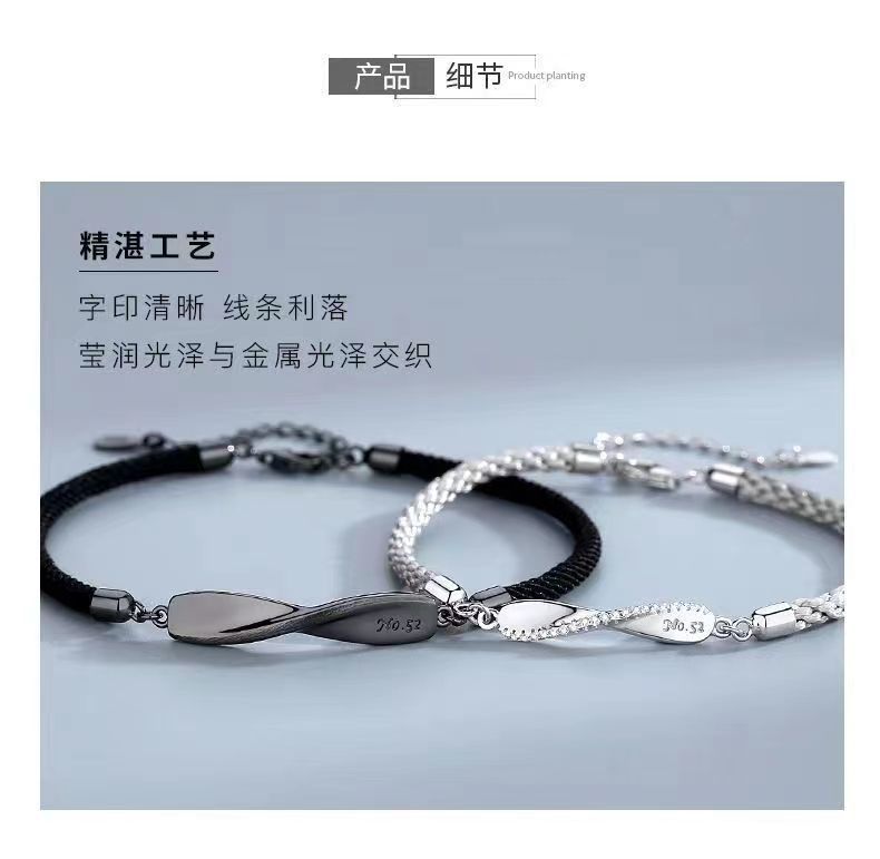 莫比乌斯情侣镀S925纯银手链一对小众编织手绳轻奢情人节高级礼物