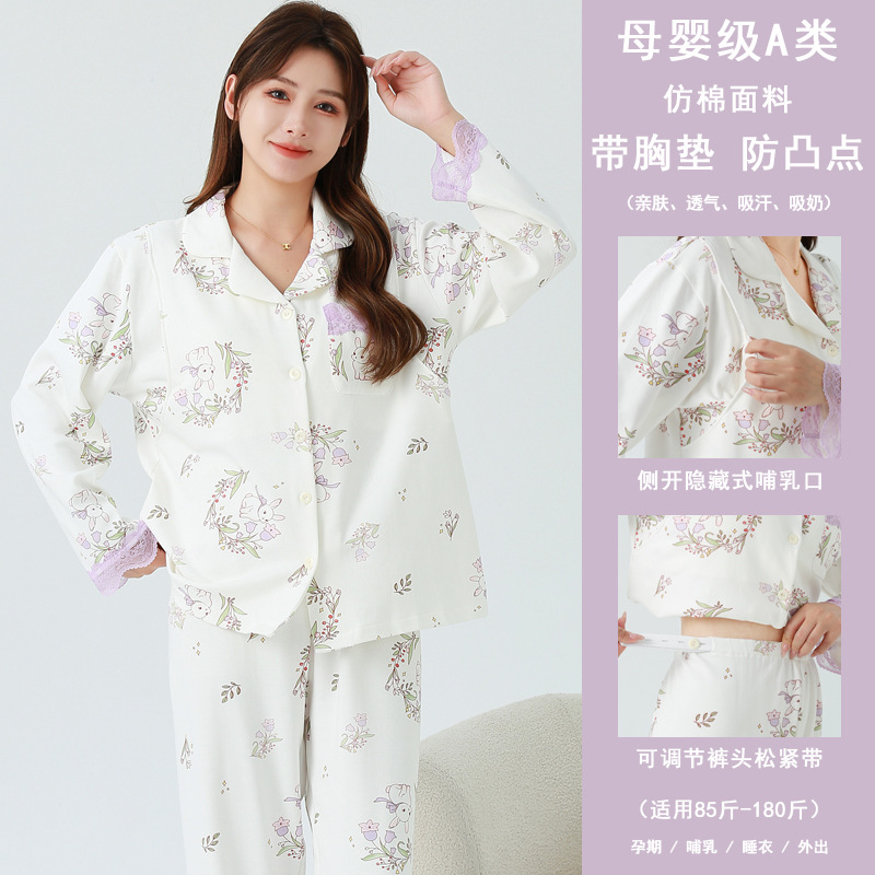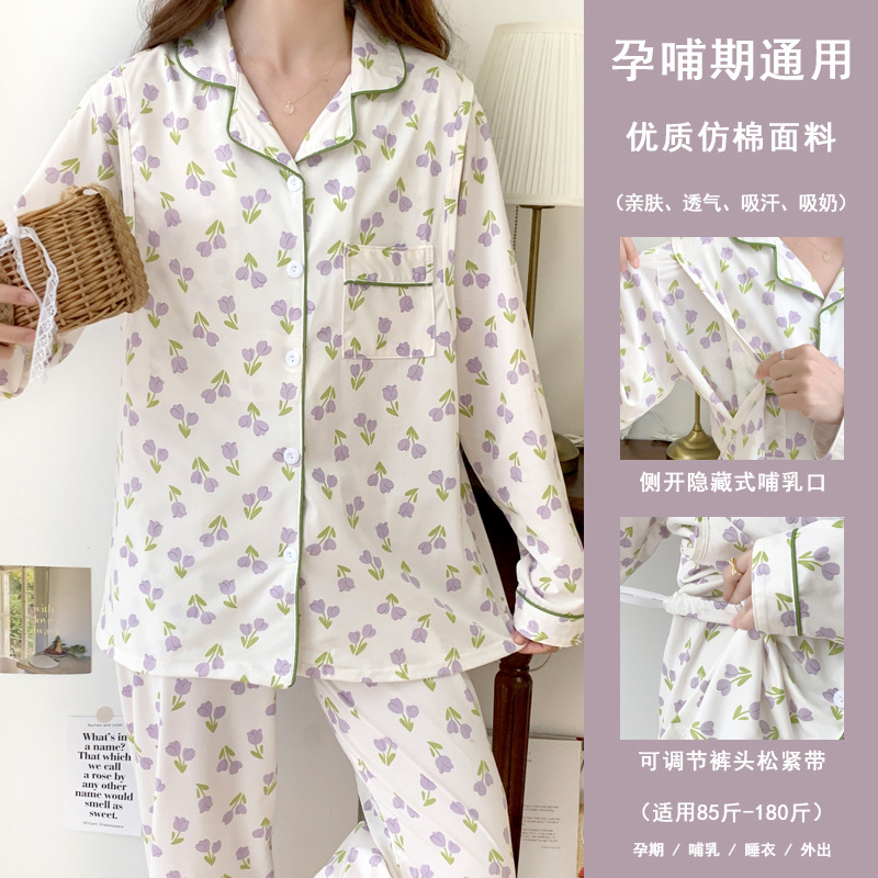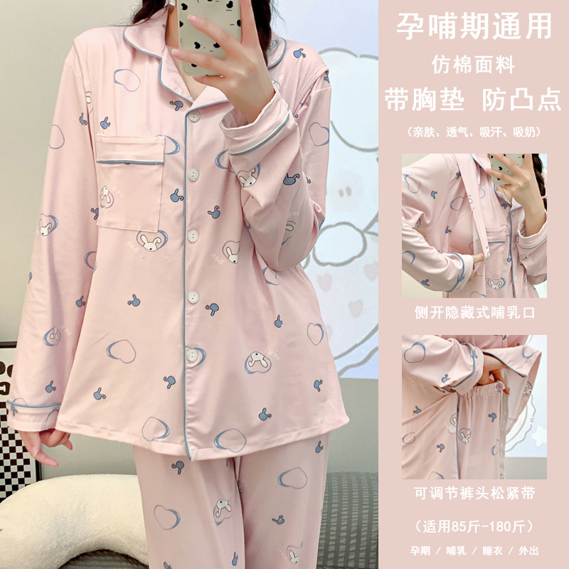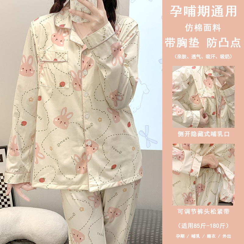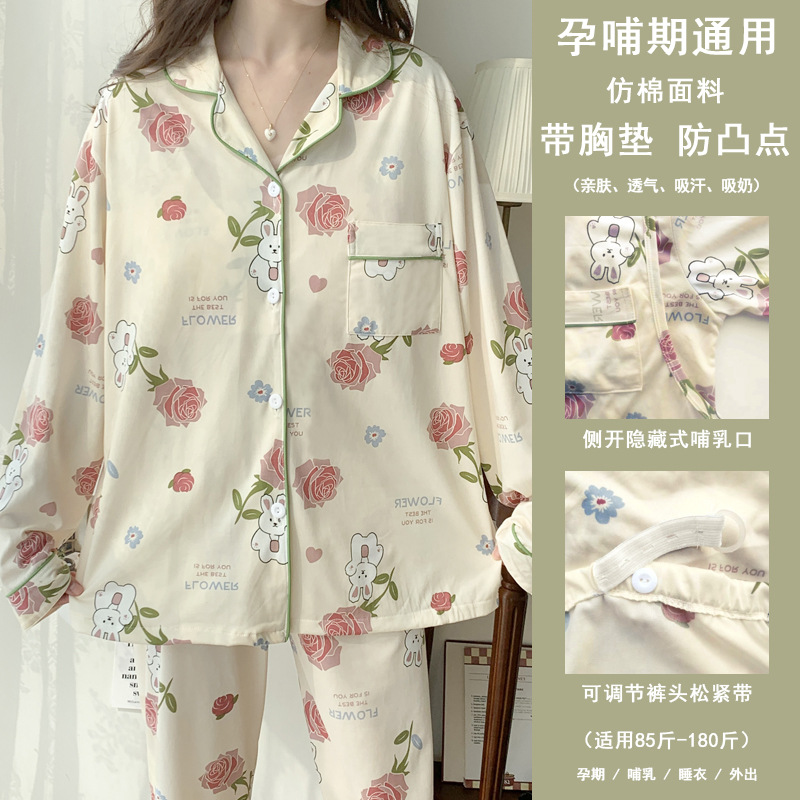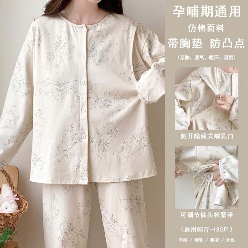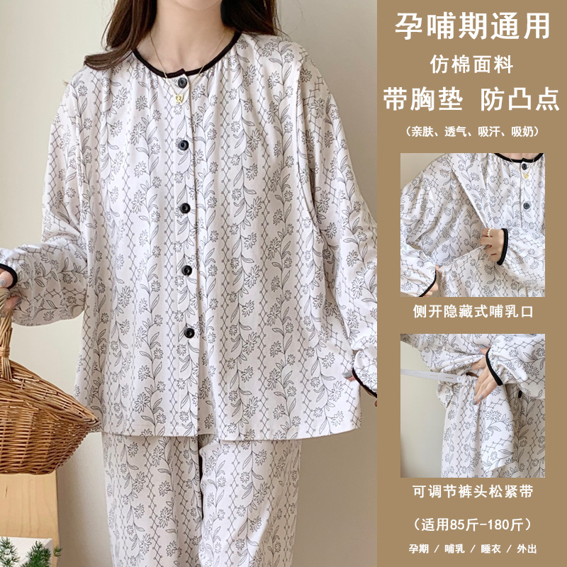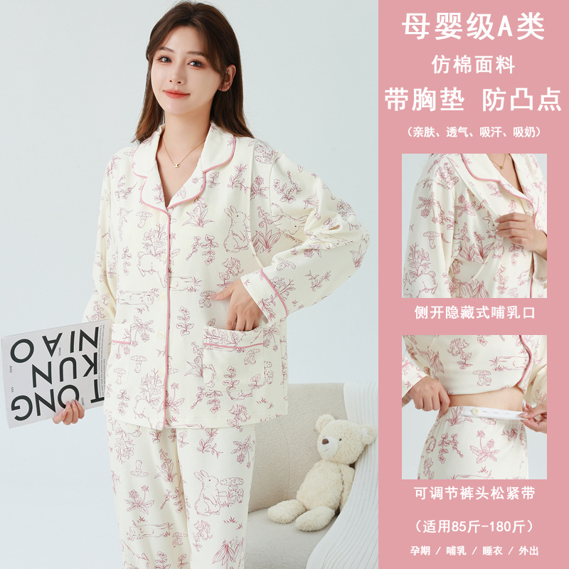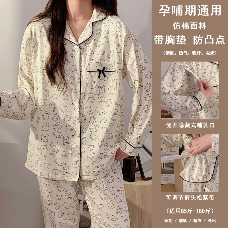 批发A类月子服春秋薄款孕妇睡衣带胸垫产后喂奶哺乳衣产妇待产服