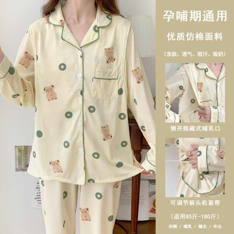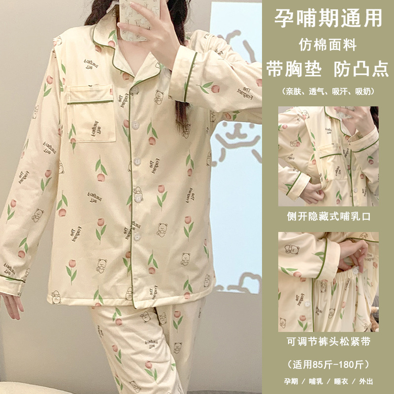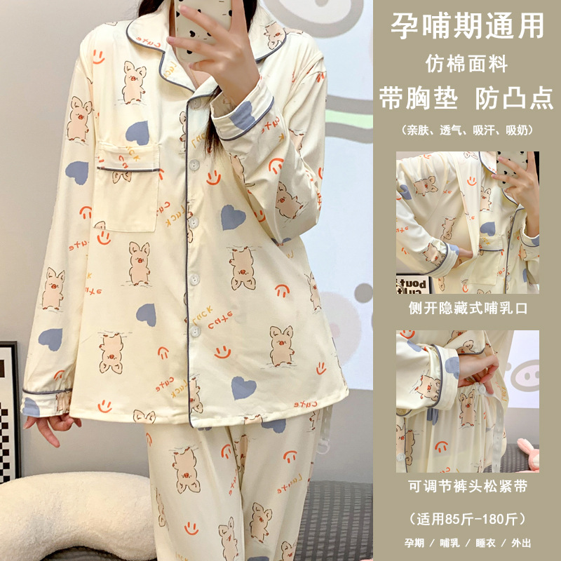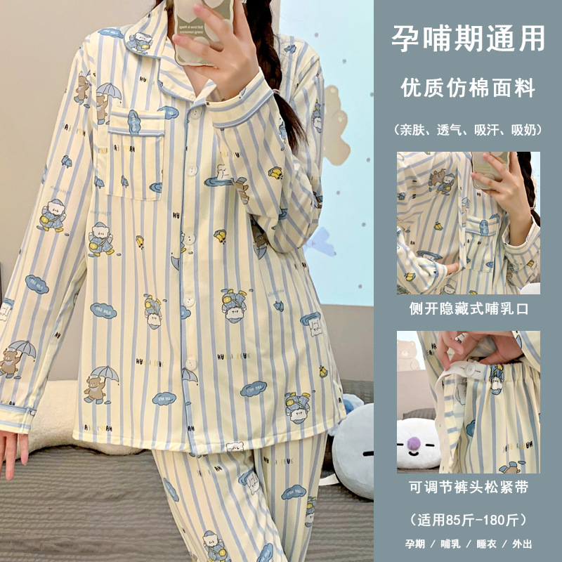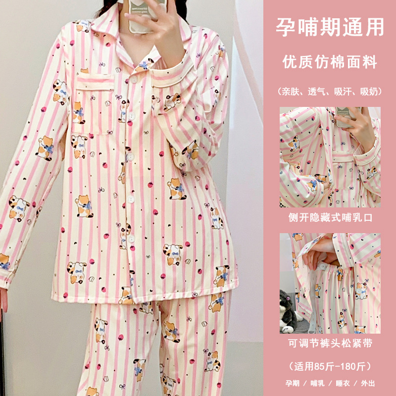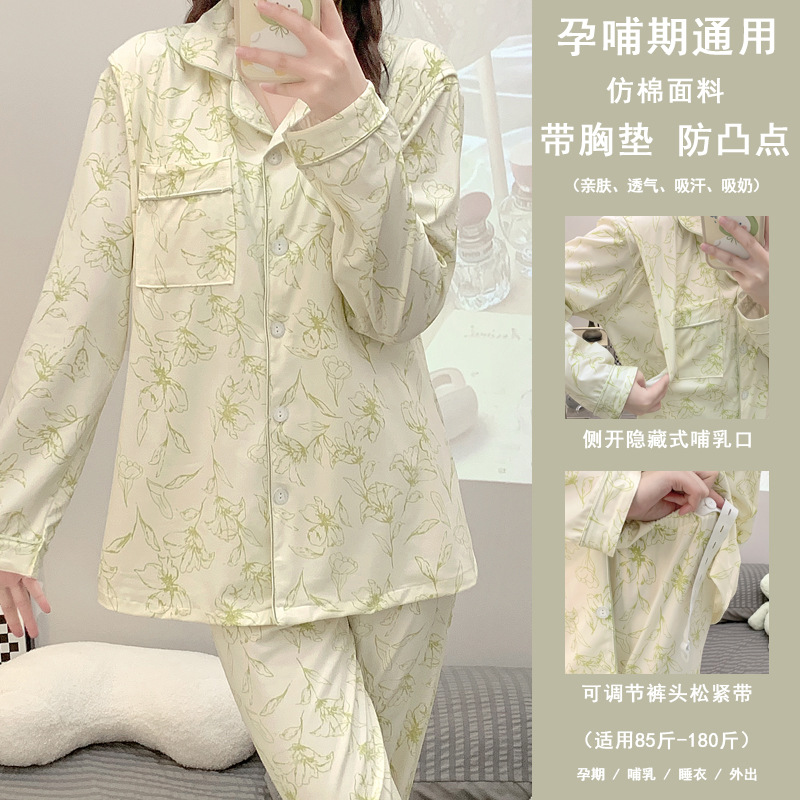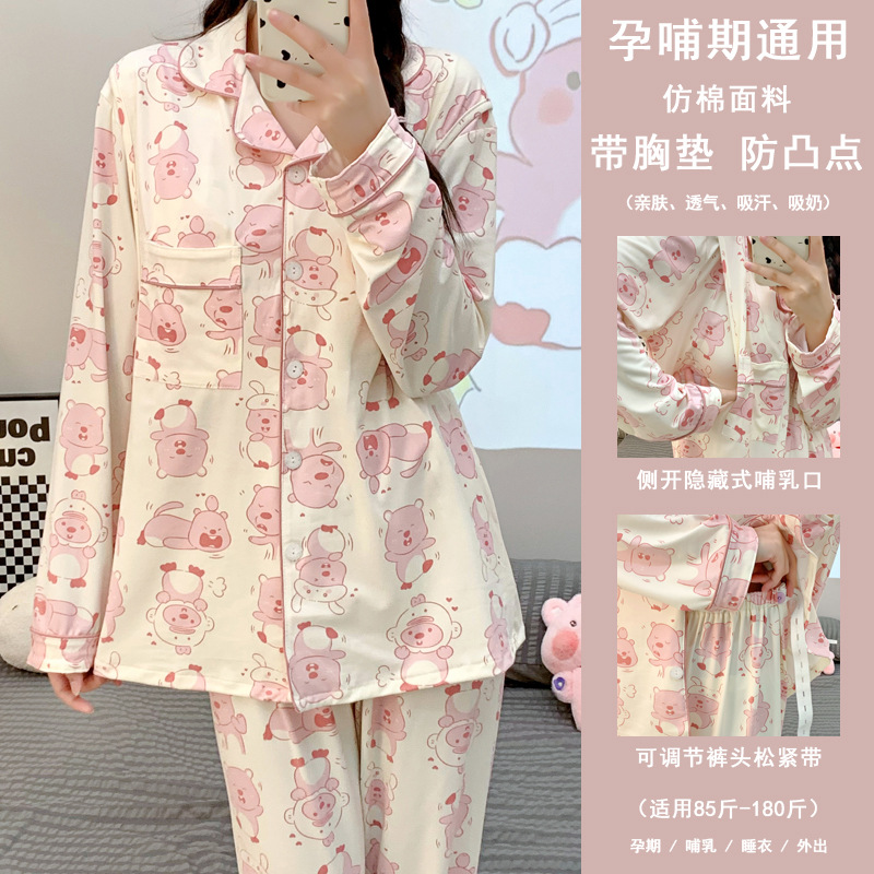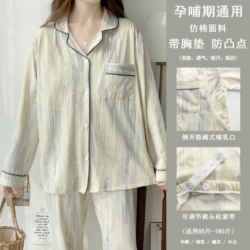 批发A类月子服春秋薄款孕妇睡衣带胸垫产后喂奶哺乳衣产妇待产服