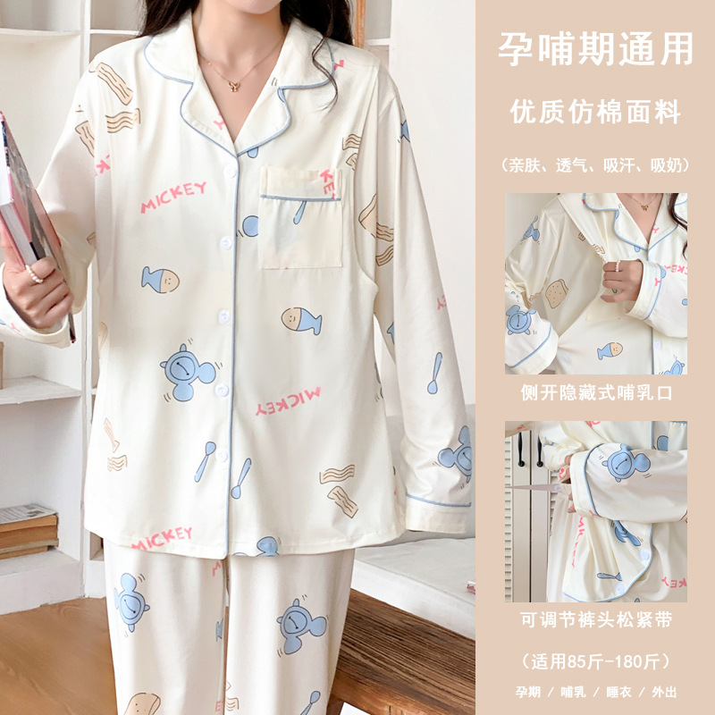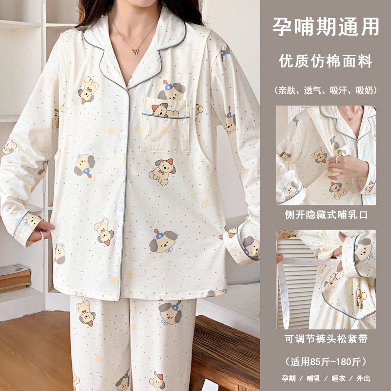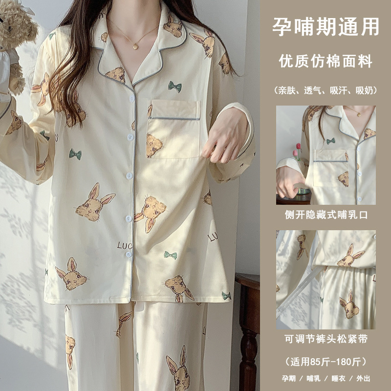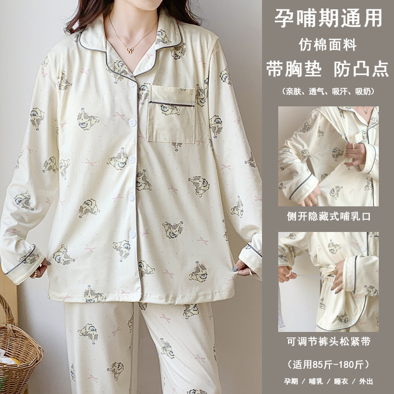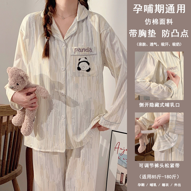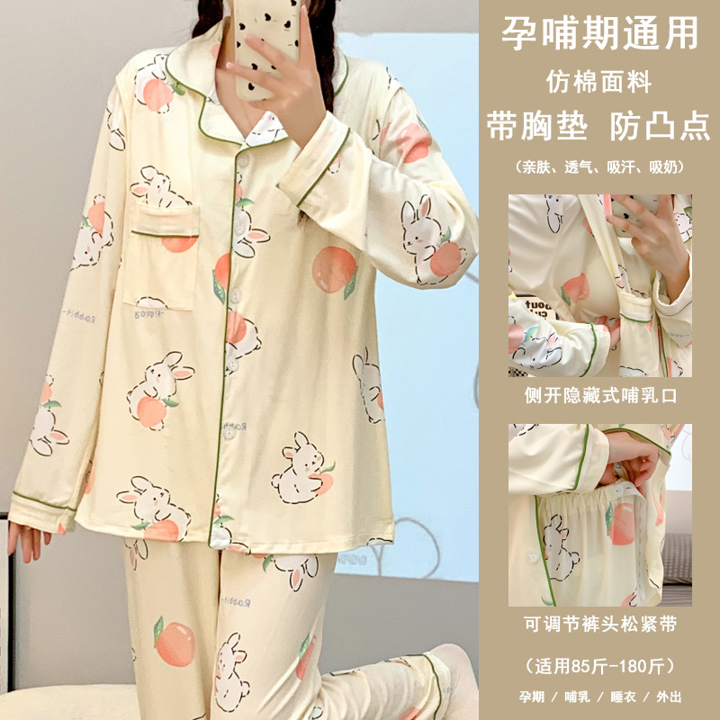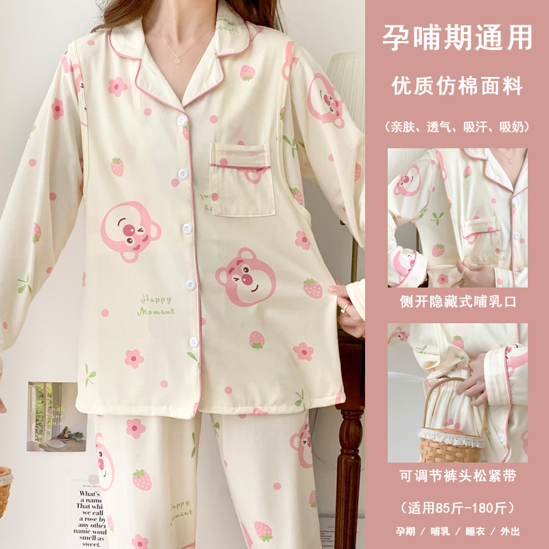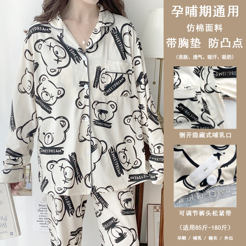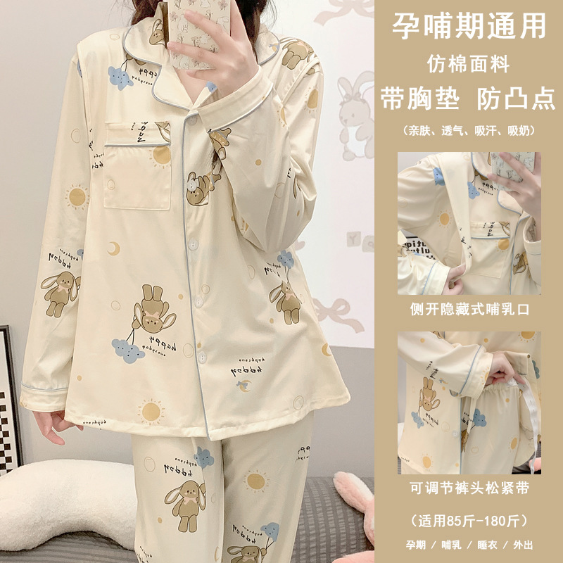批发A类月子服春秋薄款孕妇睡衣带胸垫产后喂奶哺乳衣产妇待产服