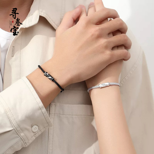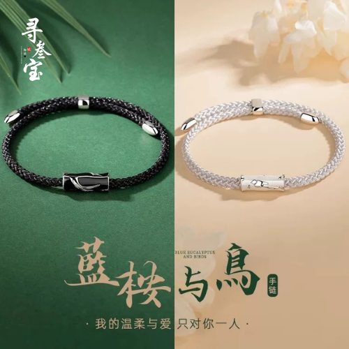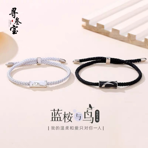 纯银925蓝桉与鸟情侣手绳一对ins小众设计编织异地恋纪念送男女友