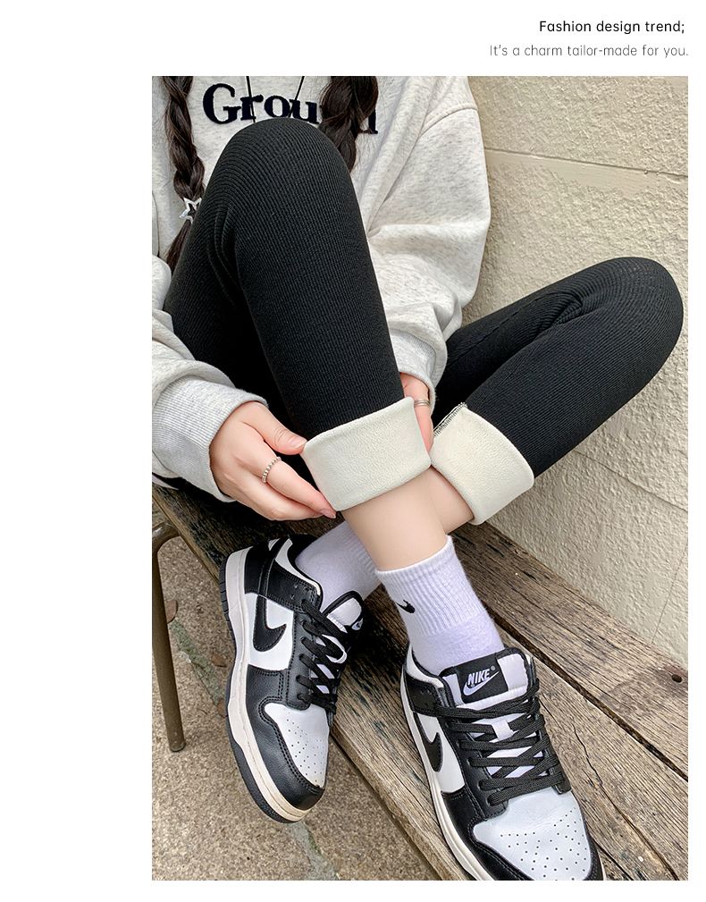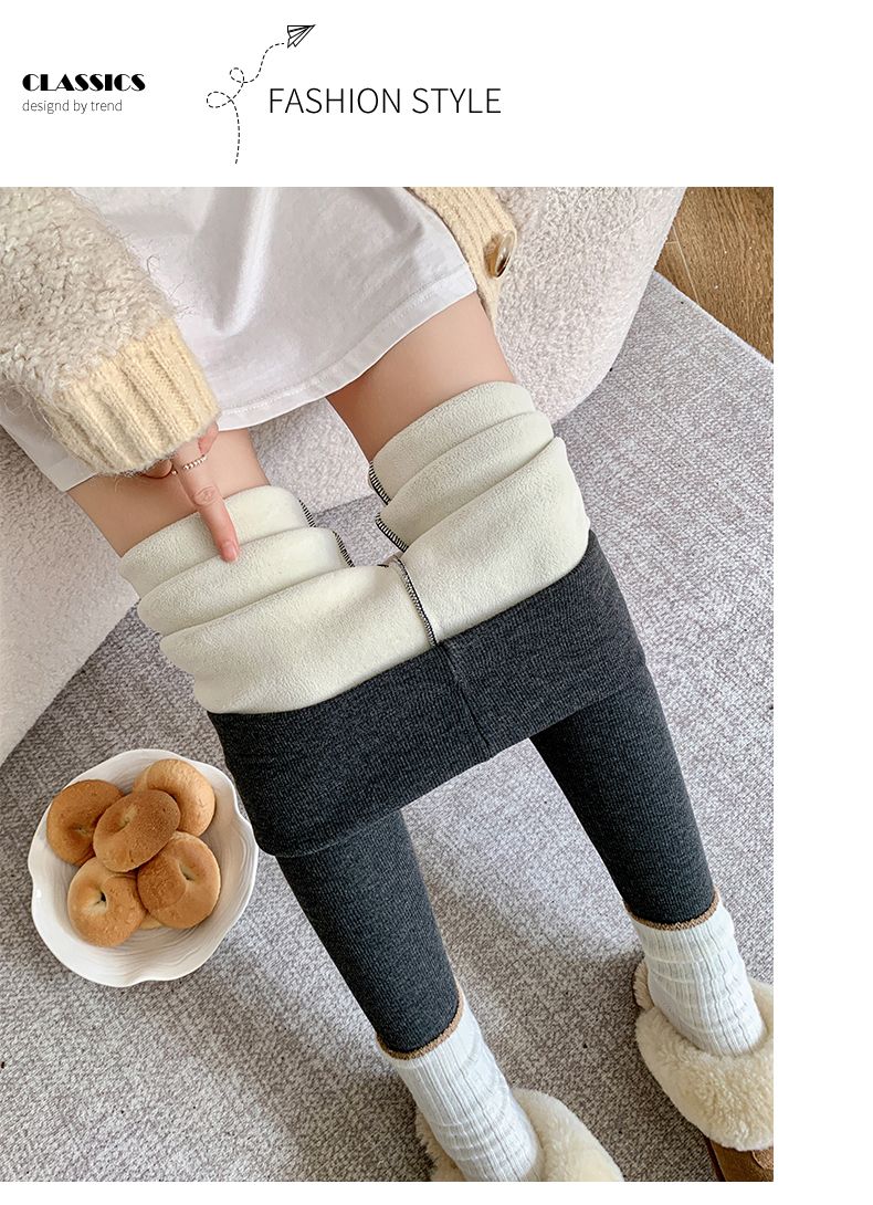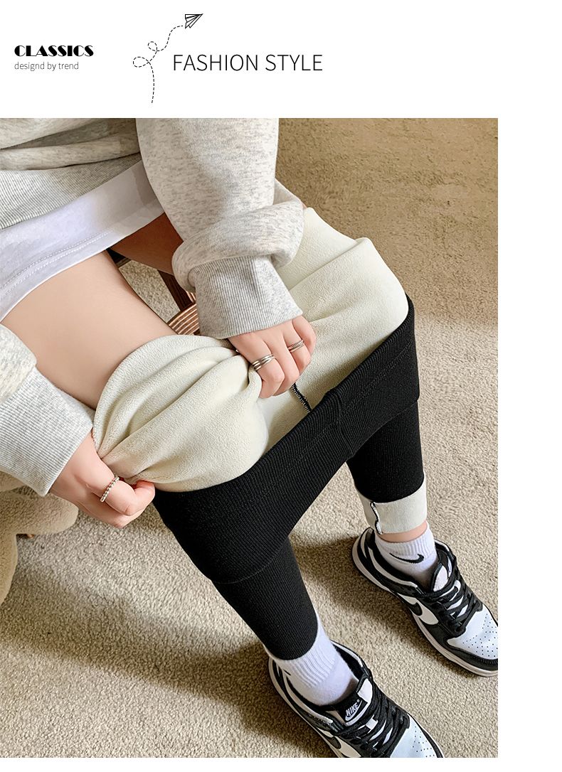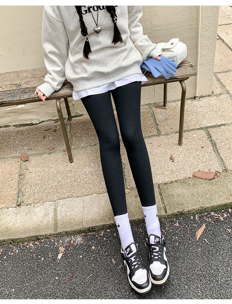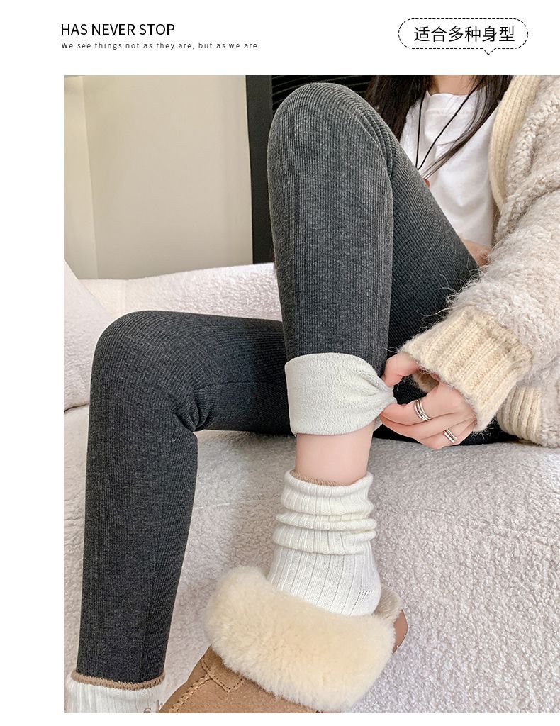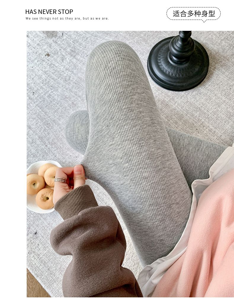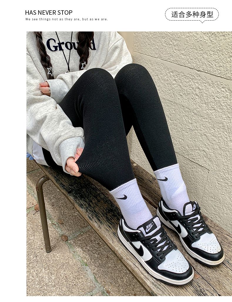 竖条纹加绒打底裤冬季加绒加厚可外穿保暖秋裤女紧身内穿校服内搭