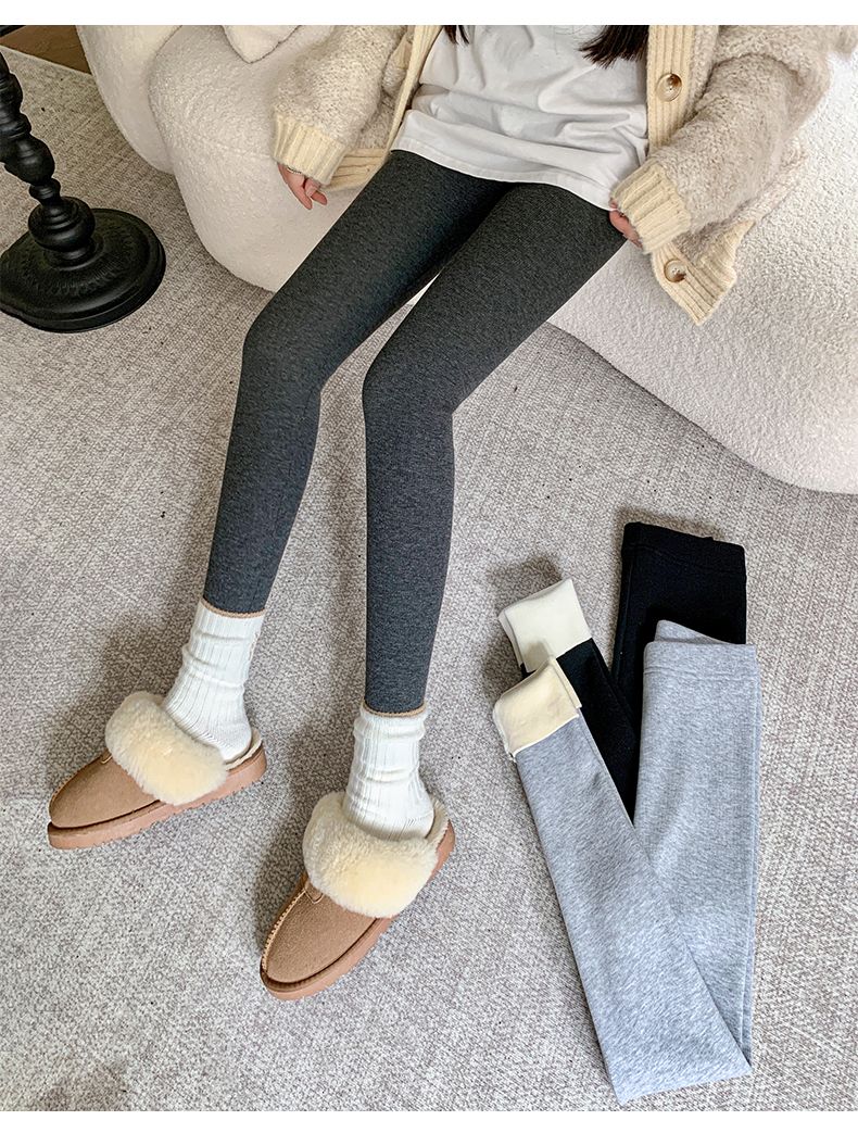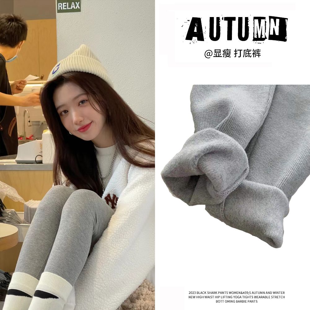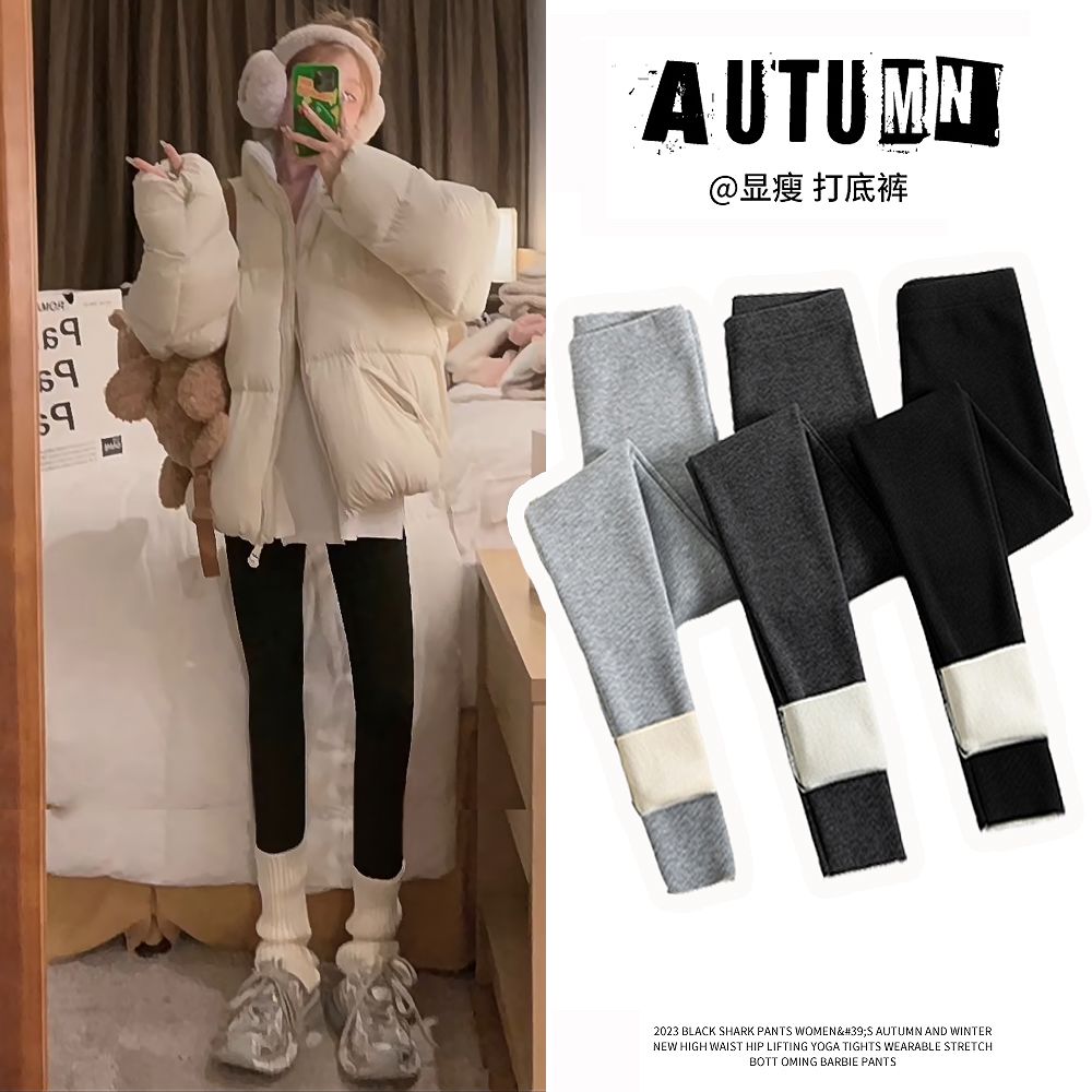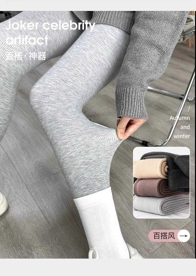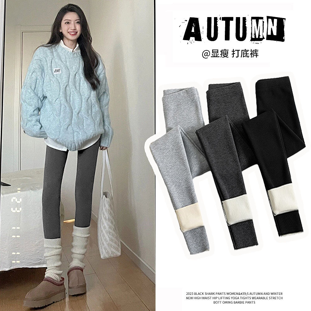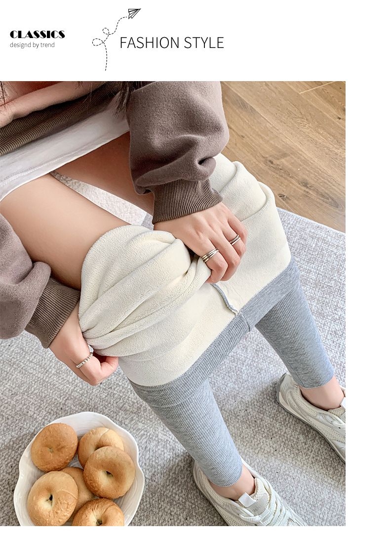 竖条纹加绒打底裤冬季加绒加厚可外穿保暖秋裤女紧身内穿校服内搭