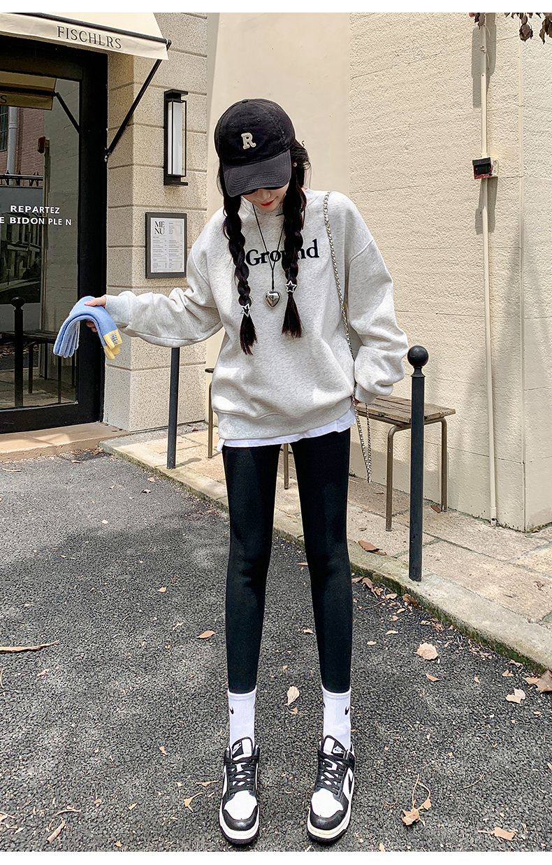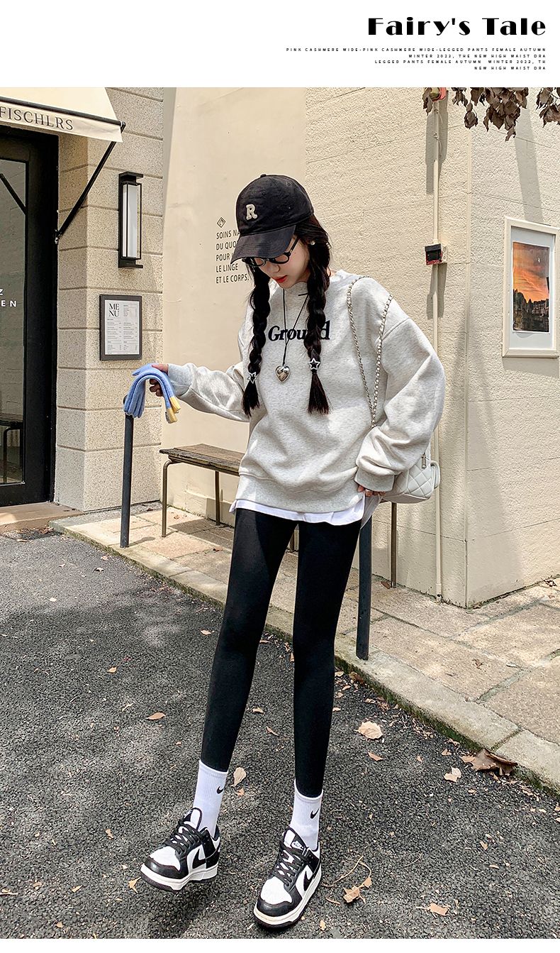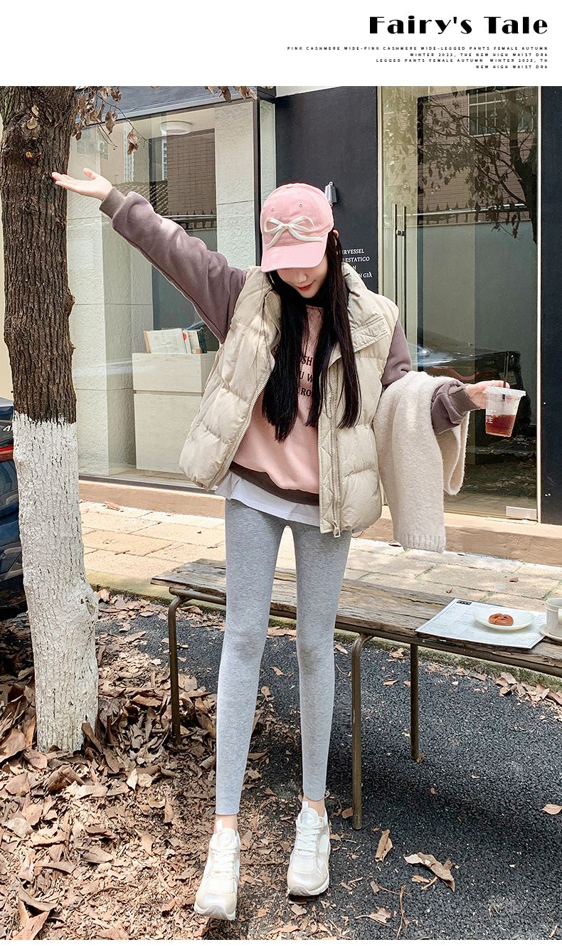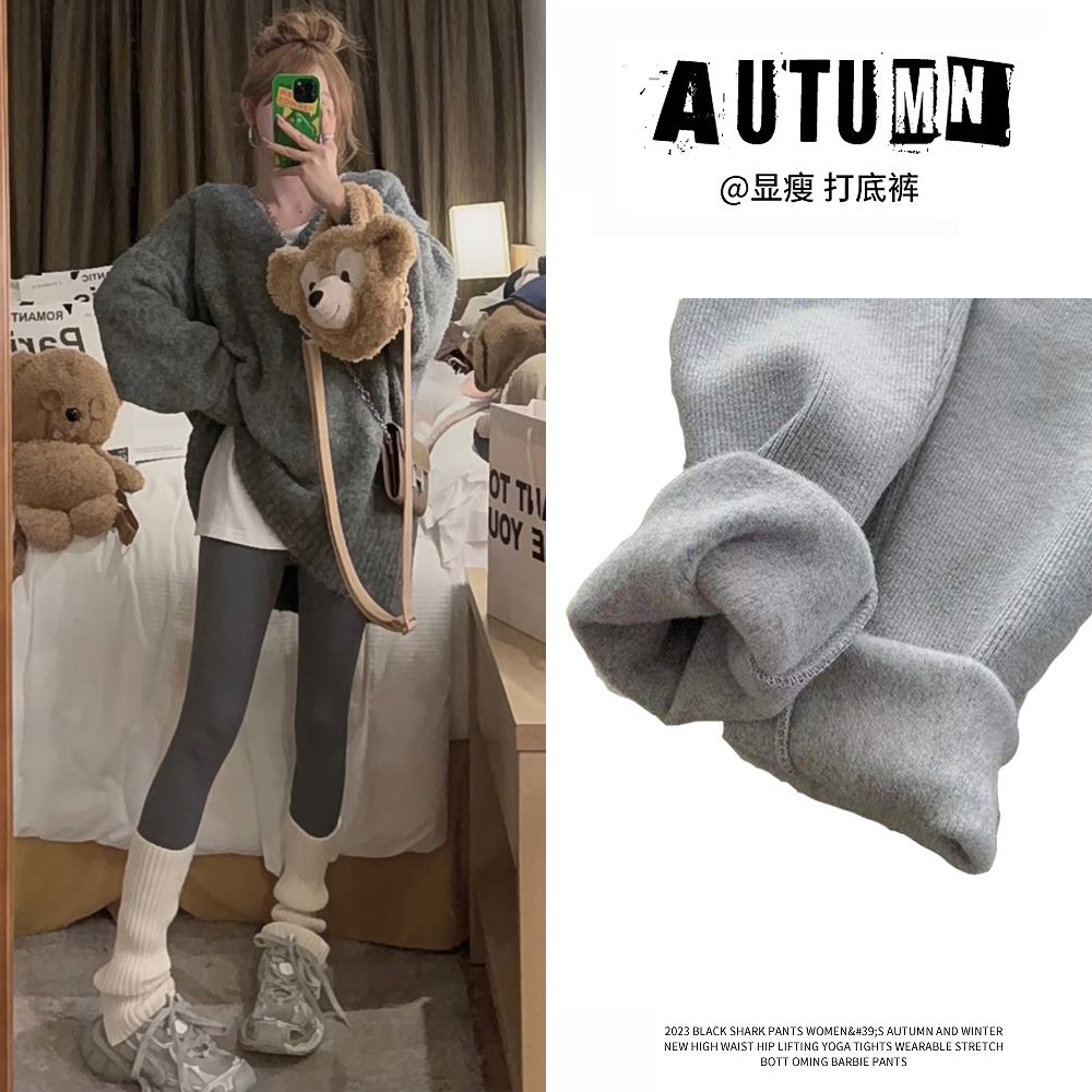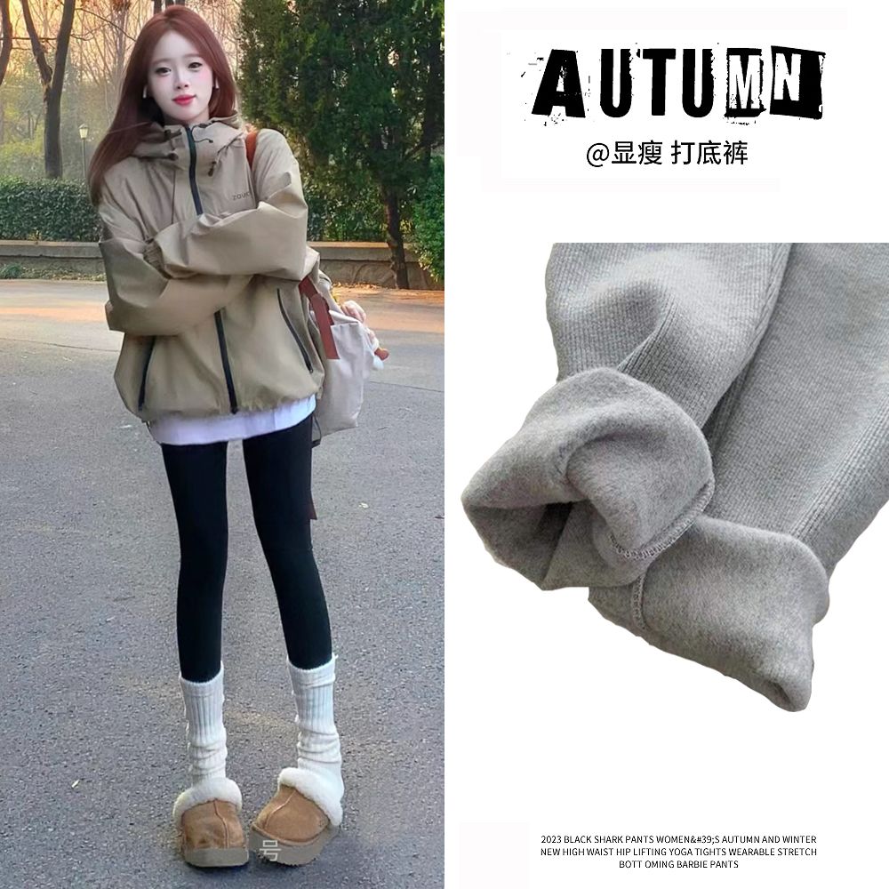 竖条纹加绒打底裤冬季加绒加厚可外穿保暖秋裤女紧身内穿校服内搭