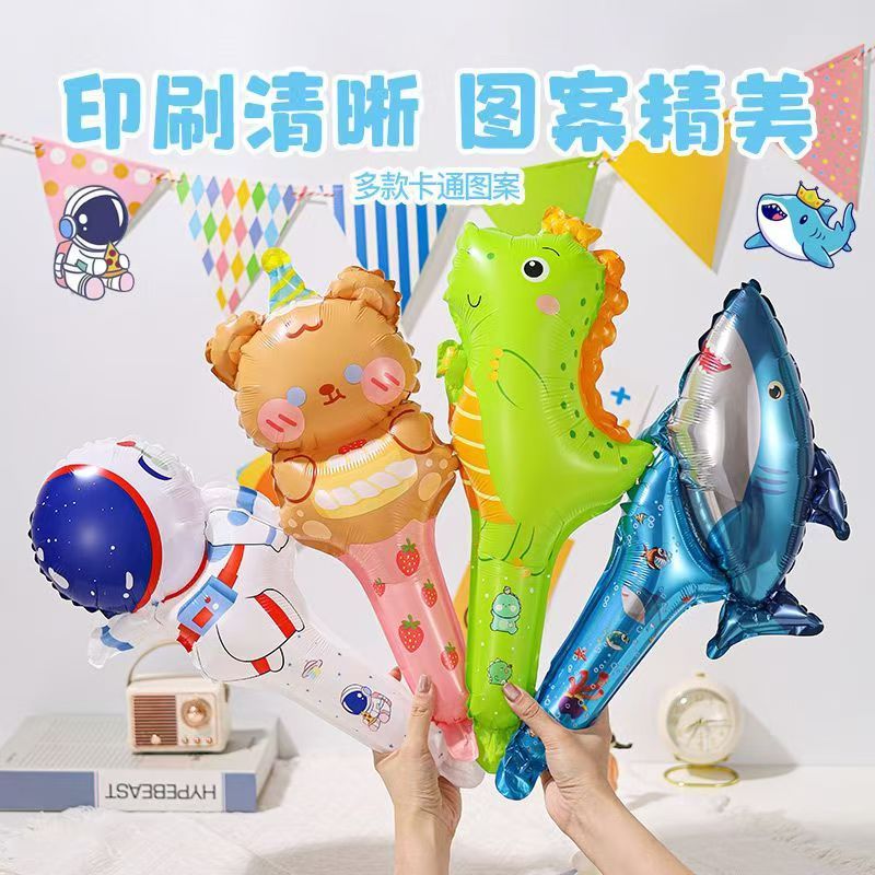 夜市摆地摊卡通铝膜中棒气球小商品哄娃手持婴儿儿童学生节日礼品