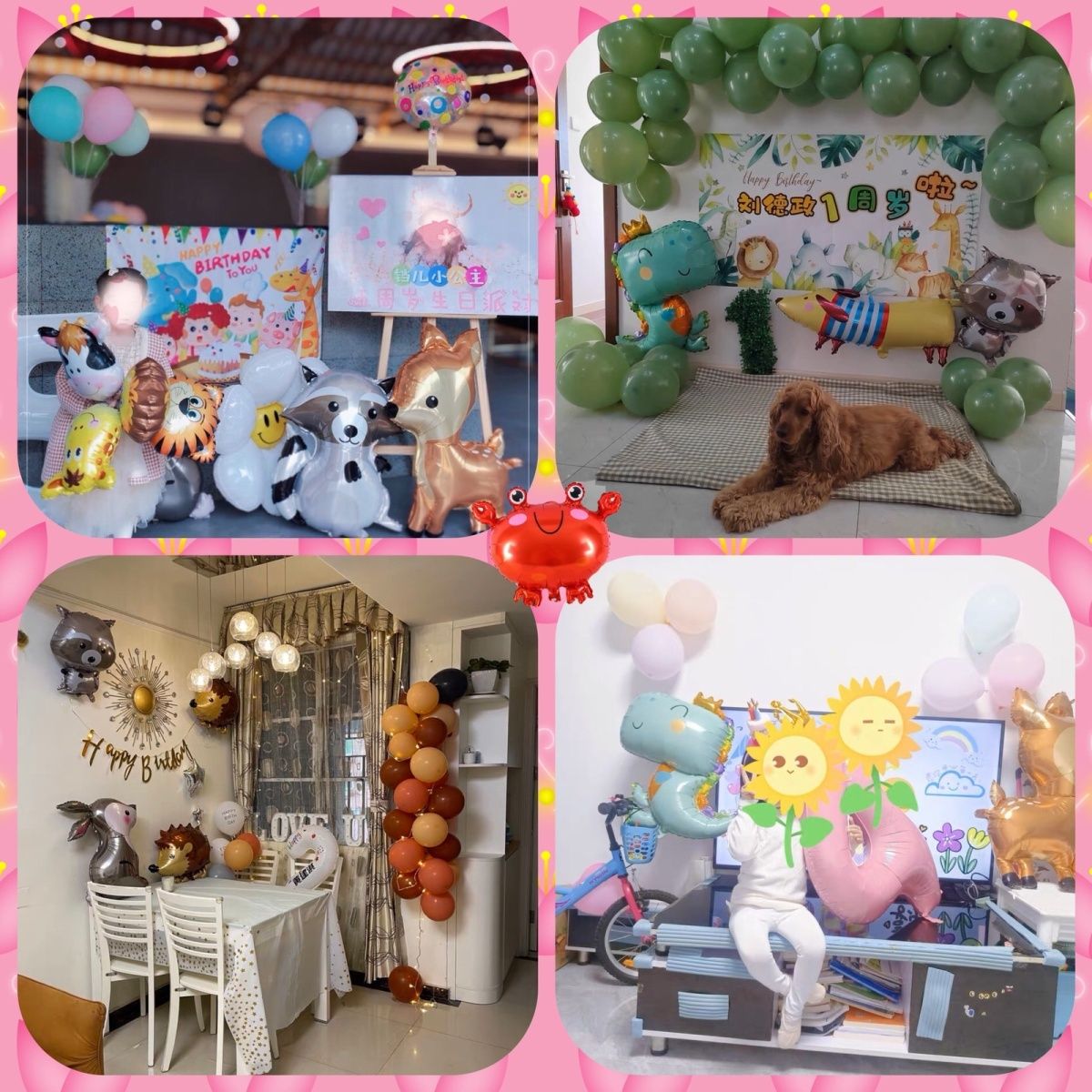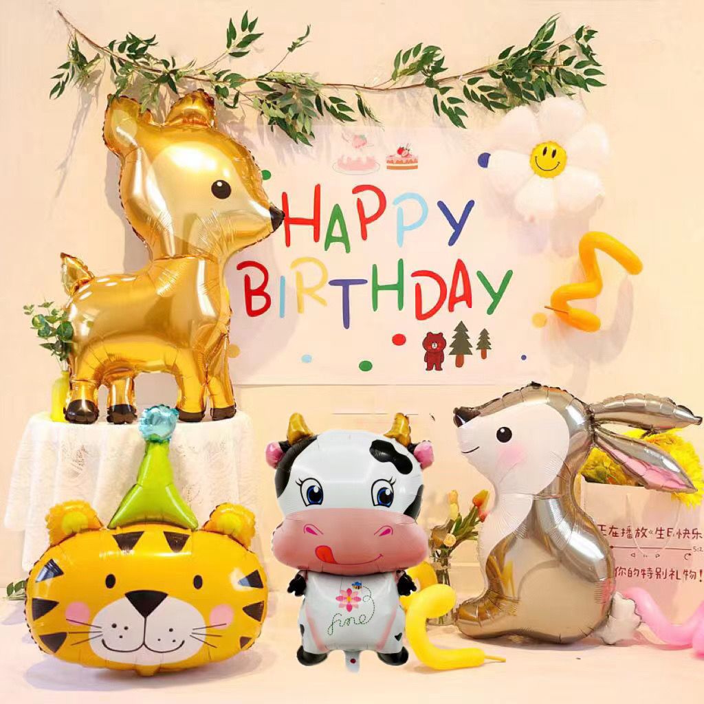 卡通动物主题气球宝宝生日六一派对桌飘汽柱悬空挂壁布置装饰拍照