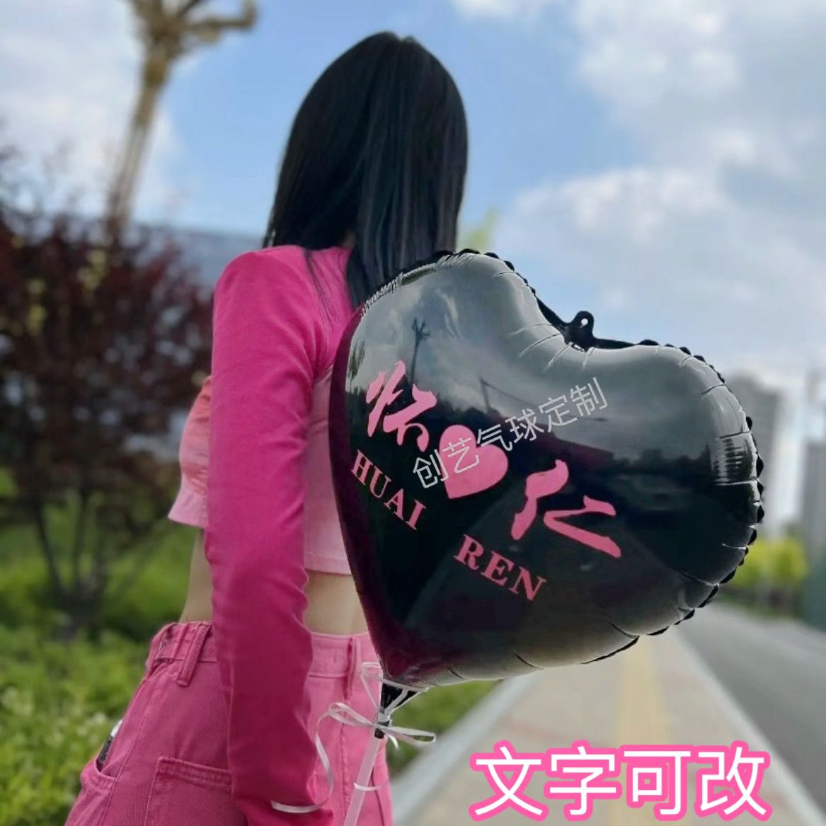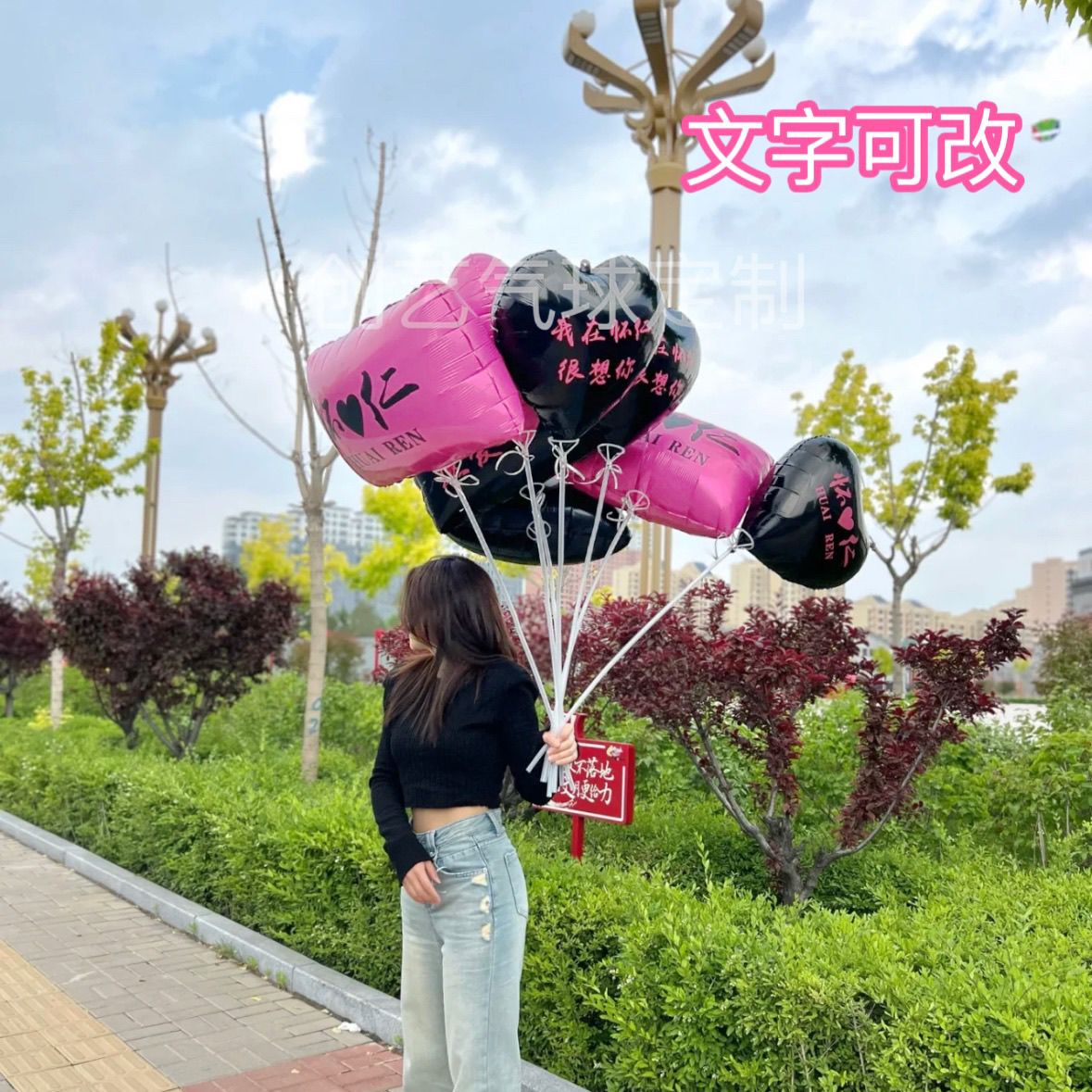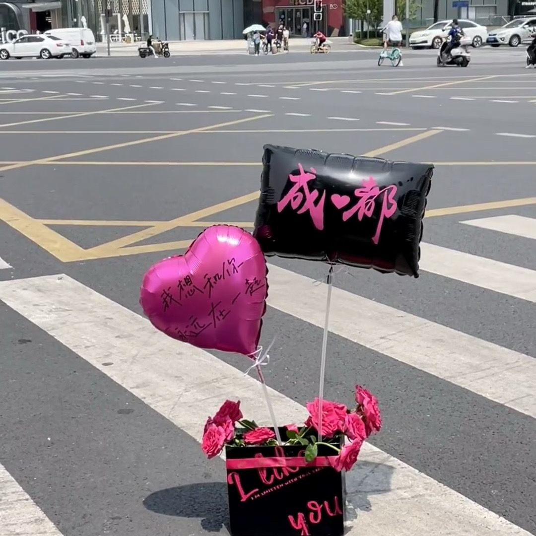 新款长沙网红城市地标气球定制印字logo长方形夜市摆摊手持爱心