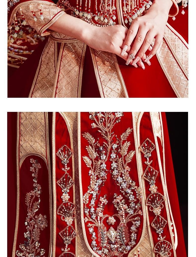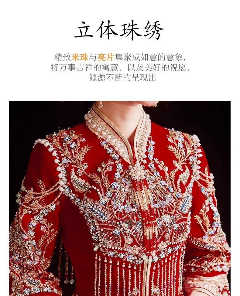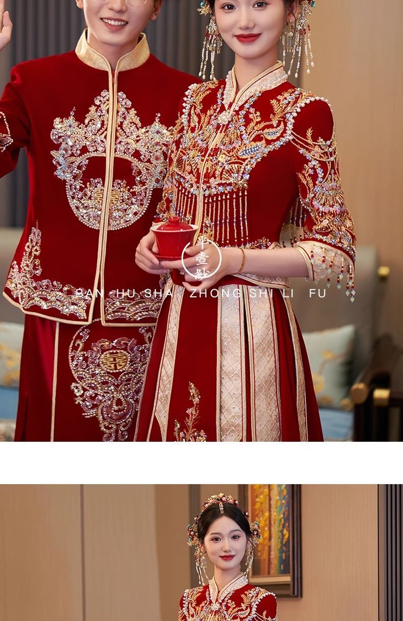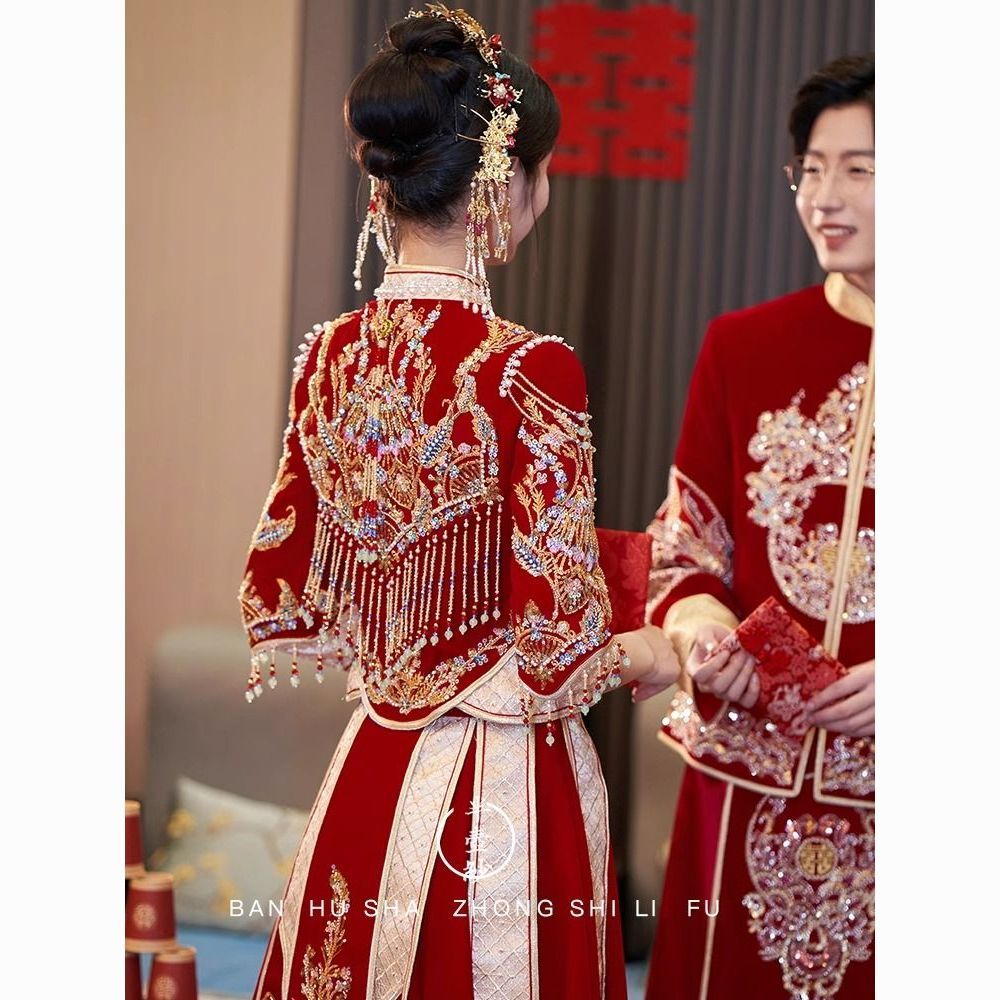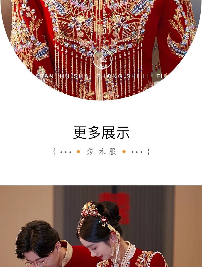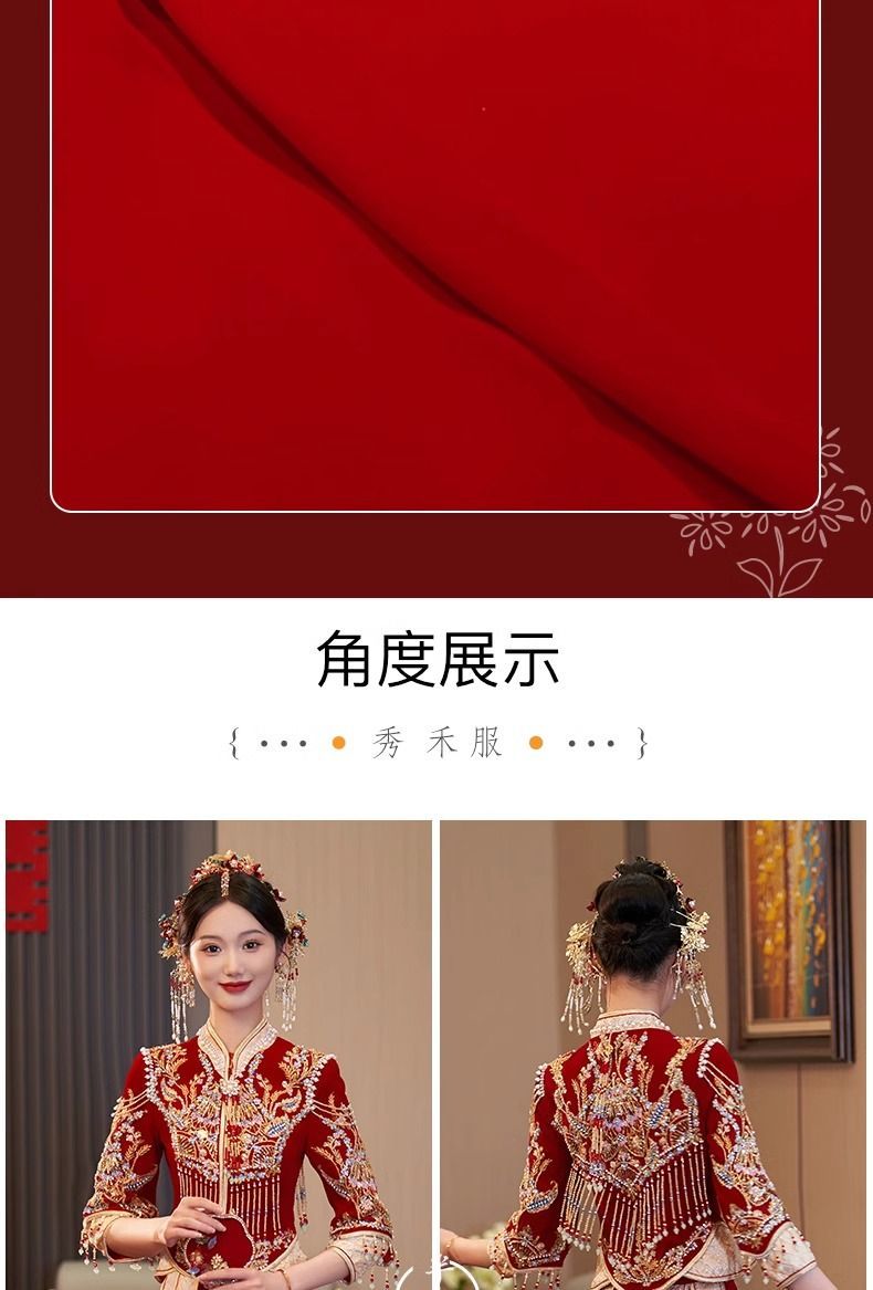秀禾服低领2024新款新娘情侣新式结婚礼服修身大裙摆嫁衣丝绒秋冬