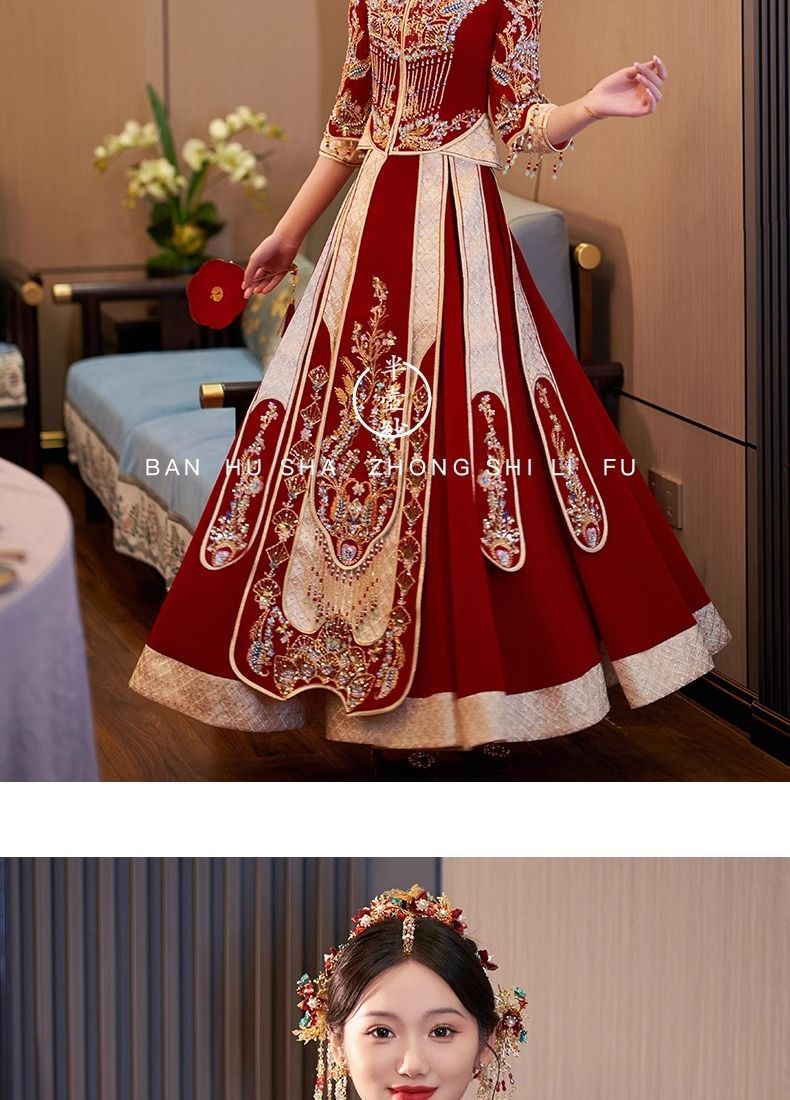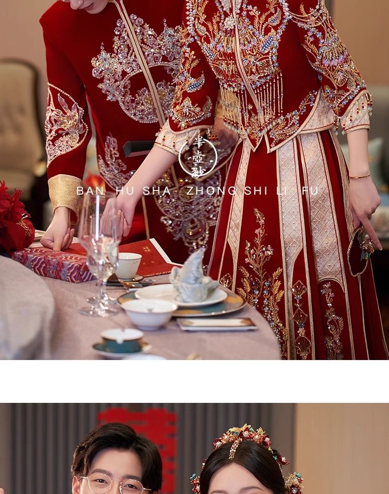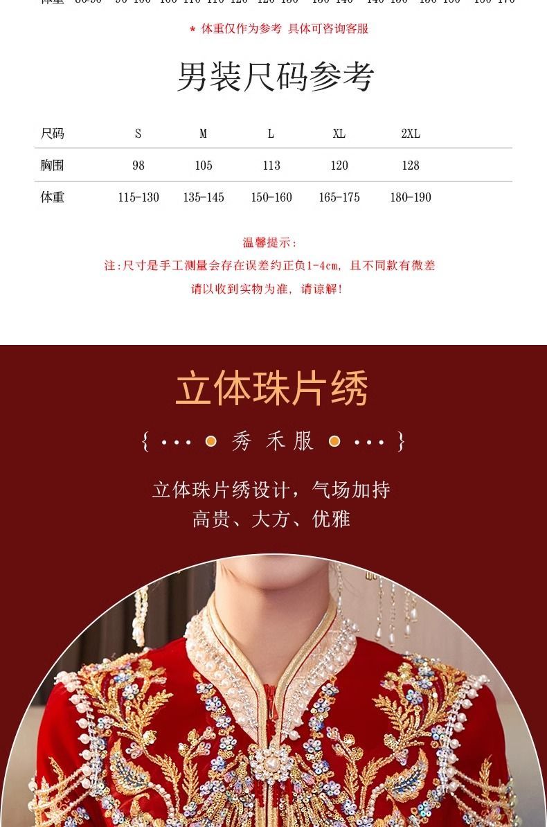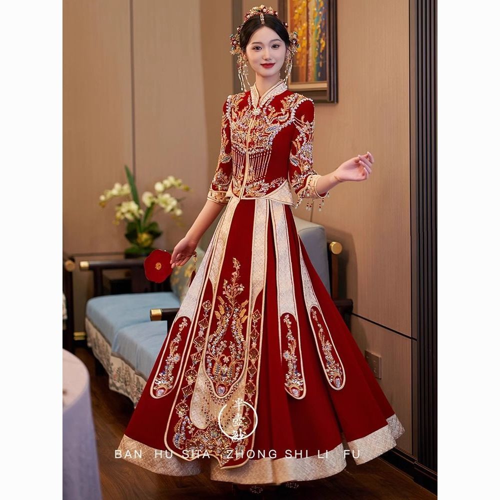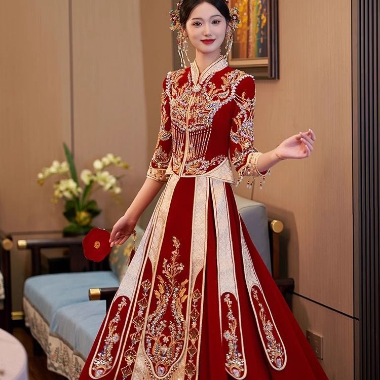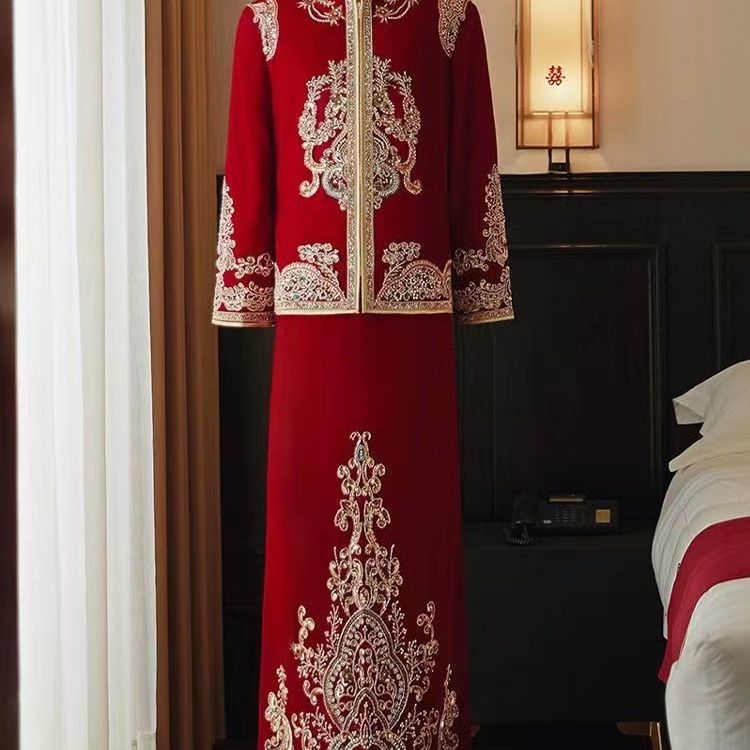 秀禾服低领2024新款新娘情侣新式结婚礼服修身大裙摆嫁衣丝绒秋冬