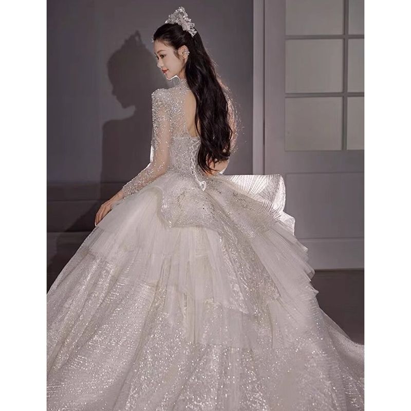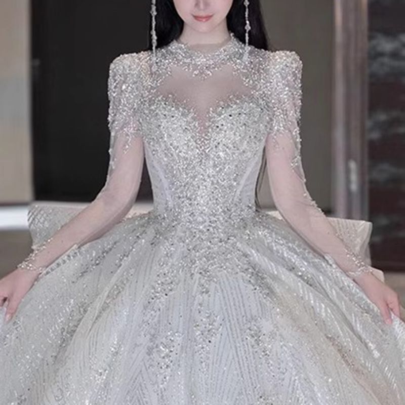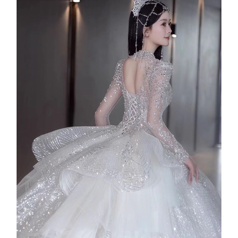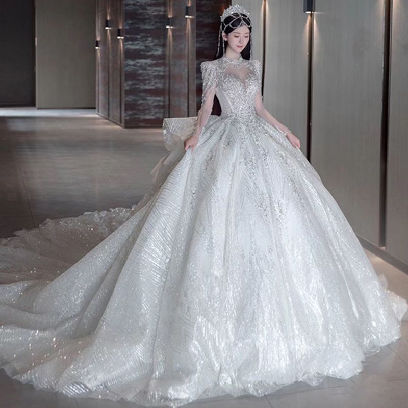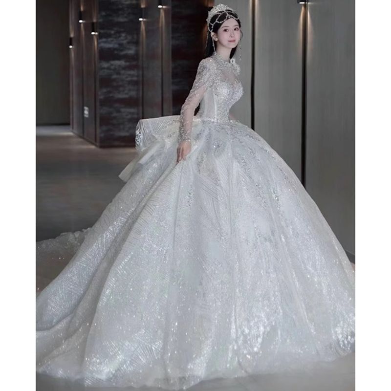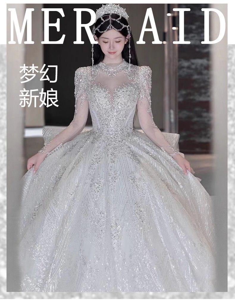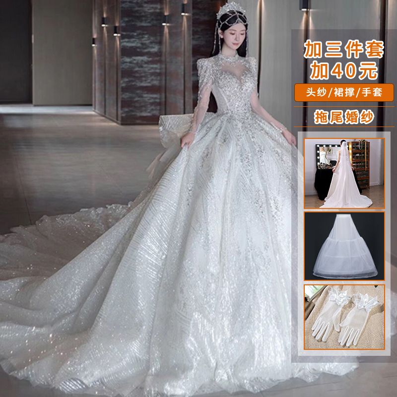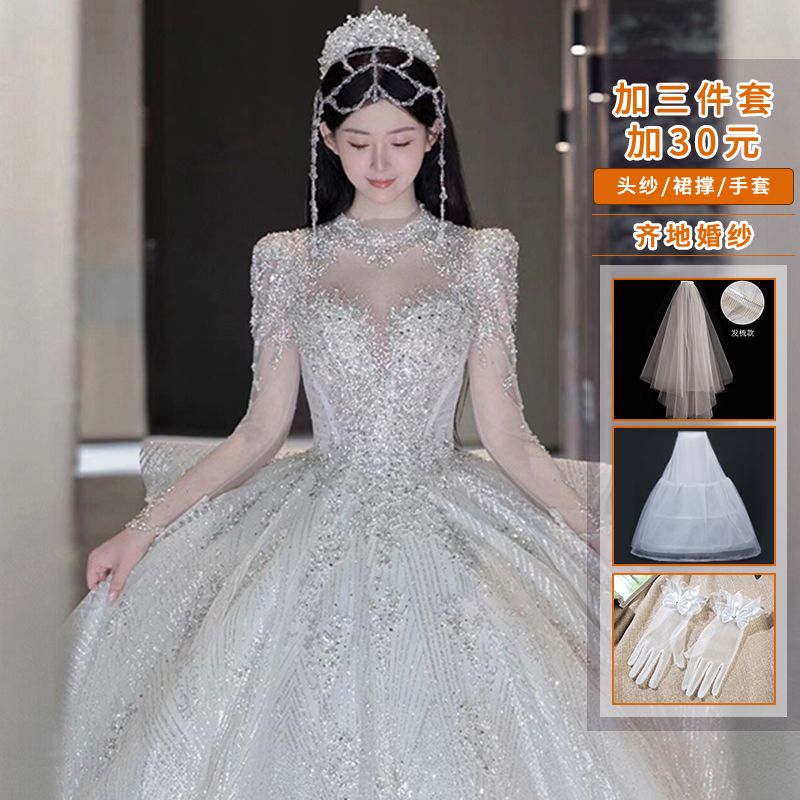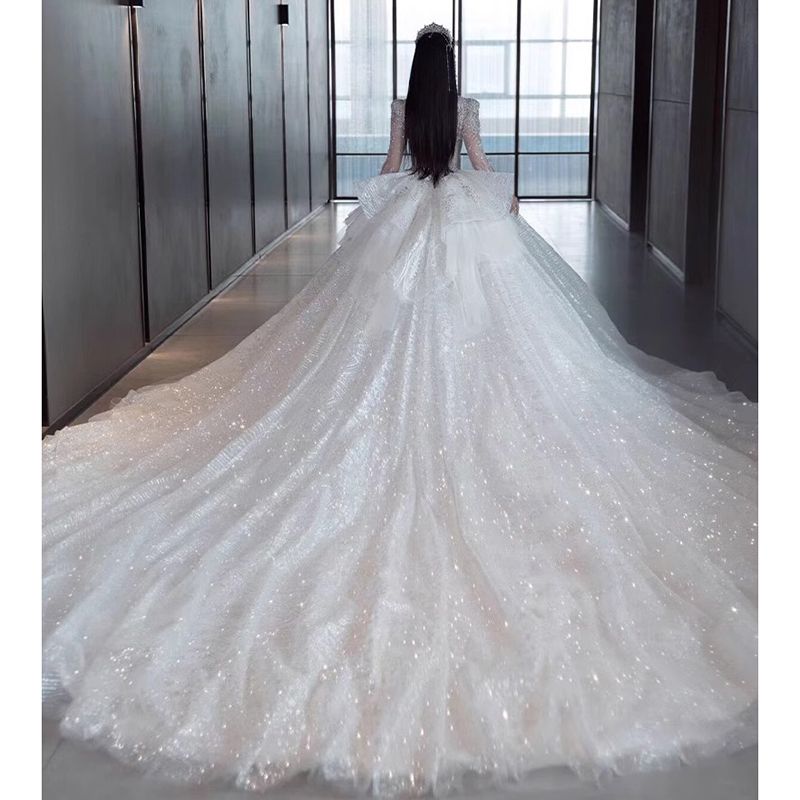 法式轻婚纱新娘2024新款重工长袖高端奢华复古主纱高级质感长拖尾