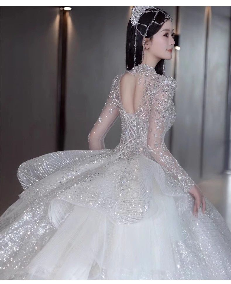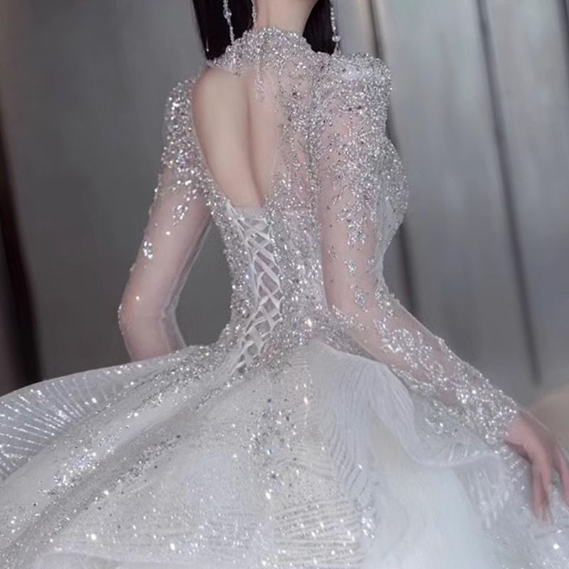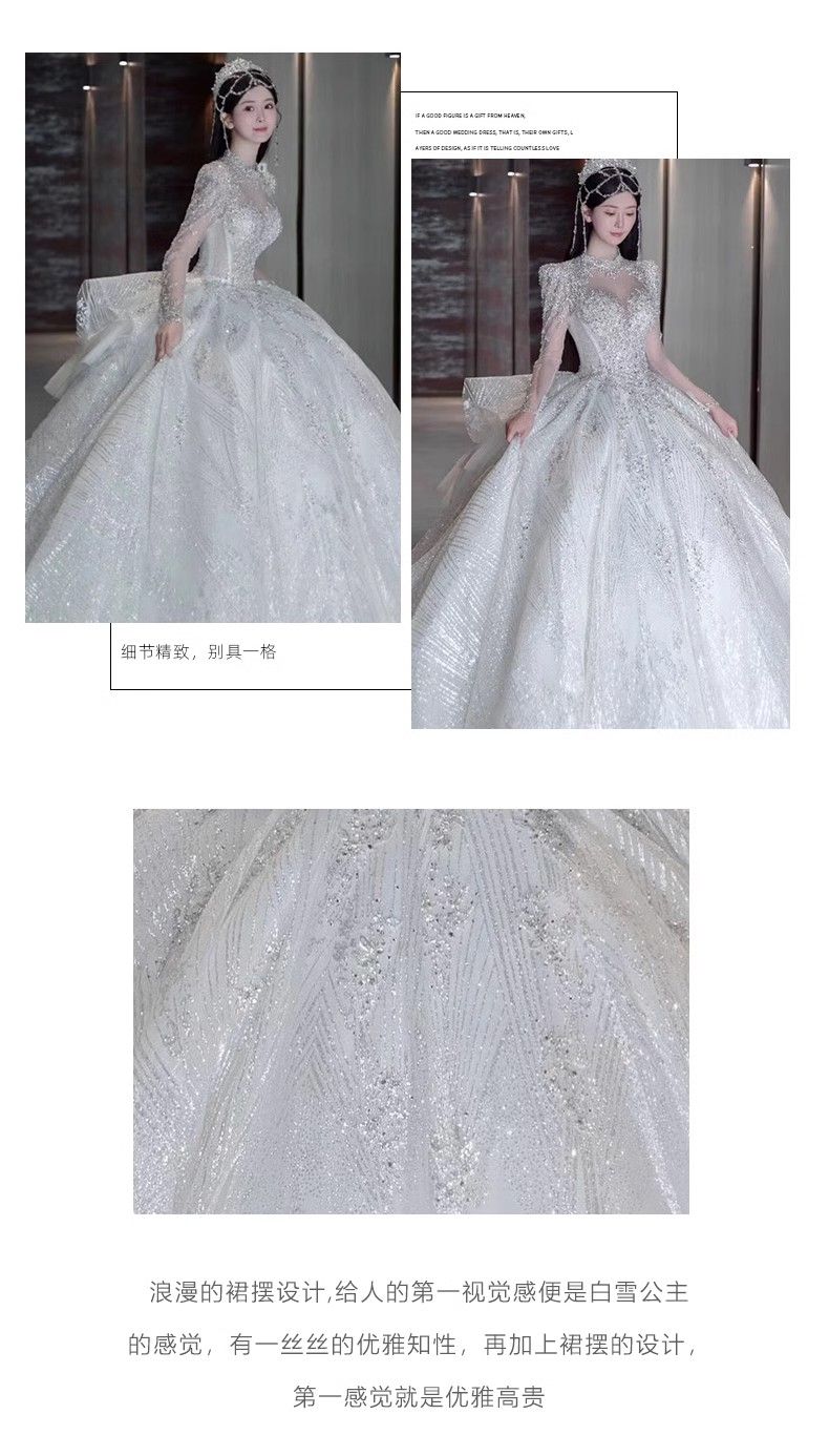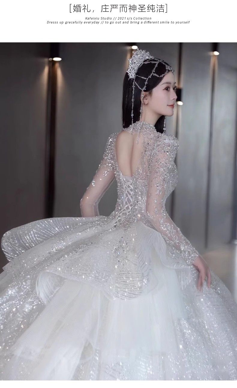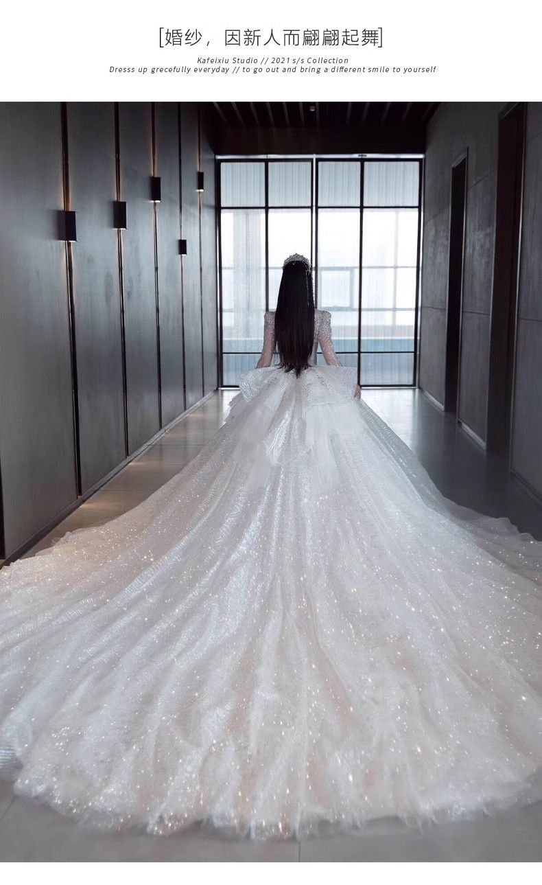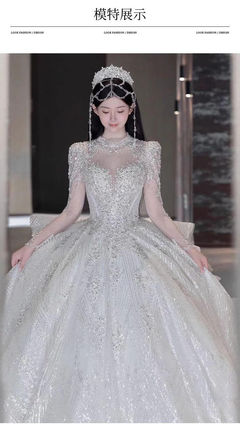 法式轻婚纱新娘2024新款重工长袖高端奢华复古主纱高级质感长拖尾