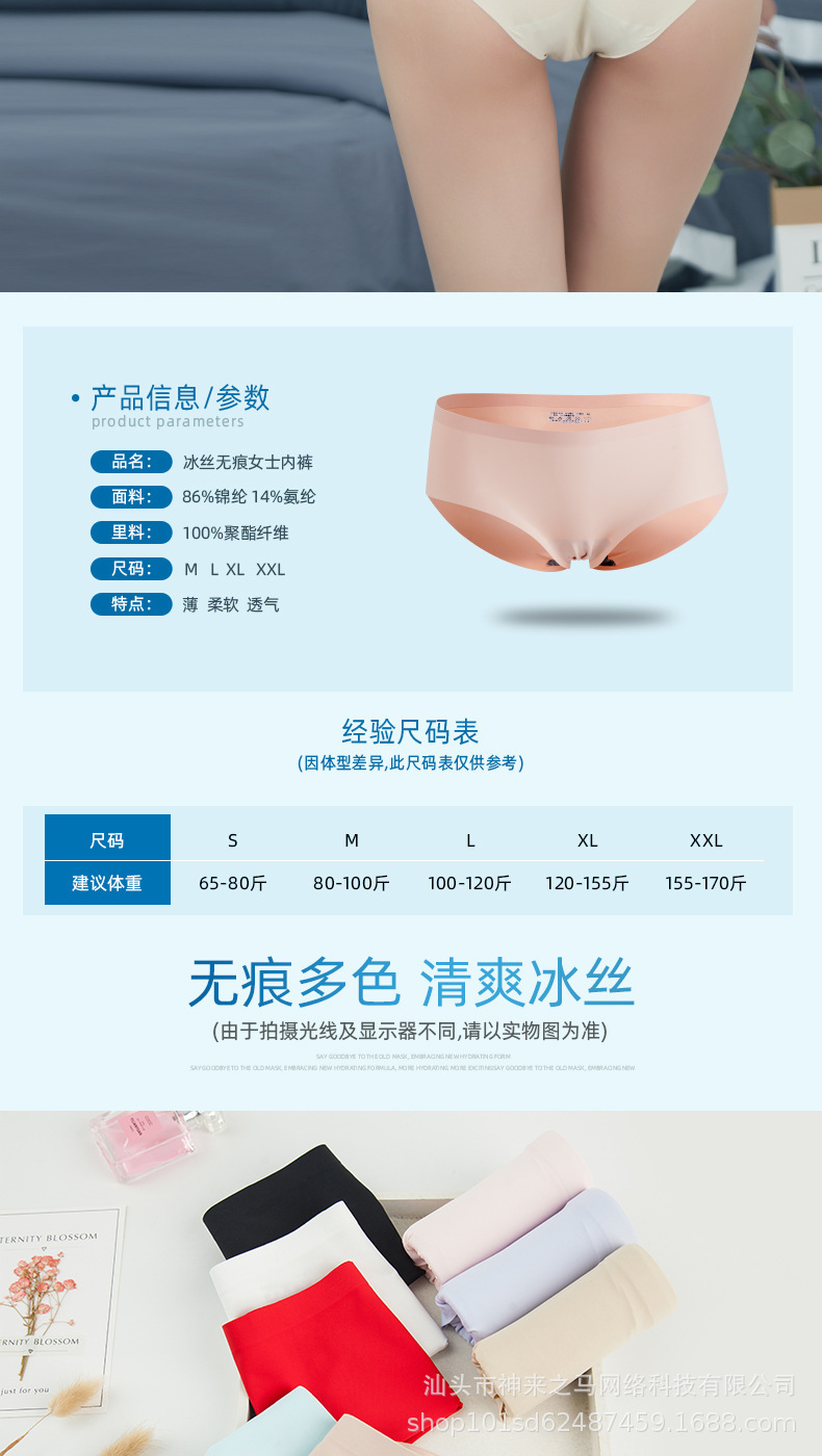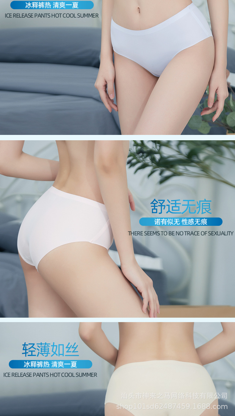 跨境内裤女士冰丝内裤一片式内裤中腰性感女生内裤三角裤工厂直销