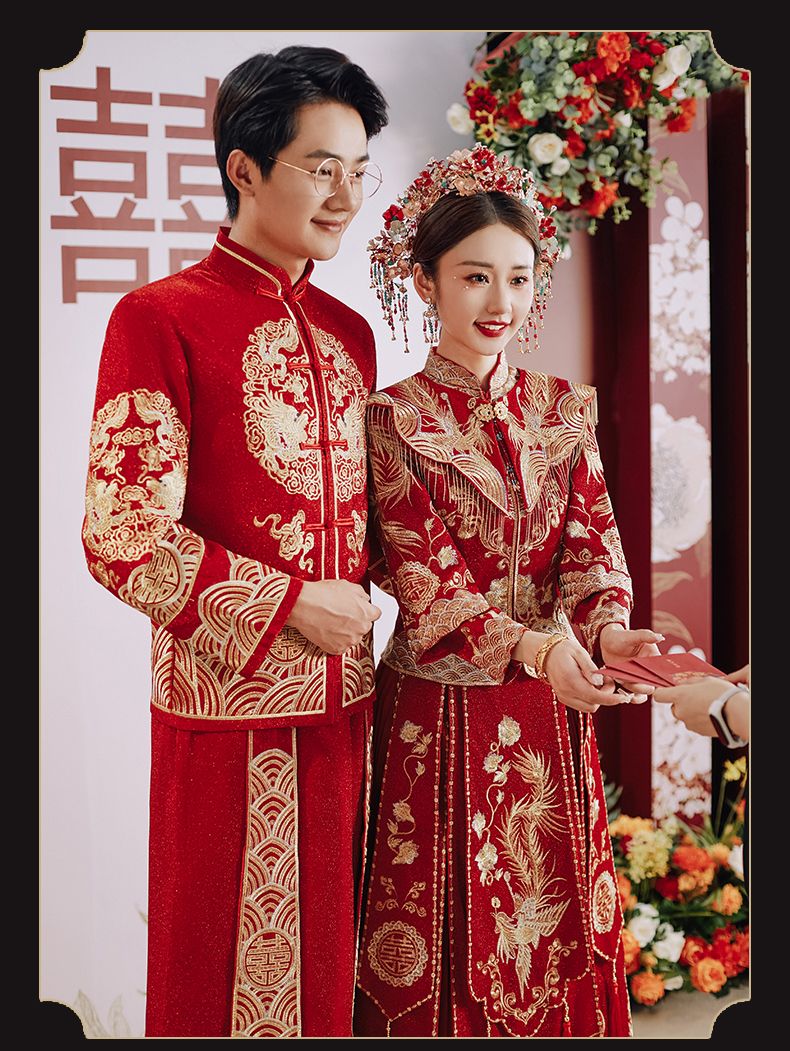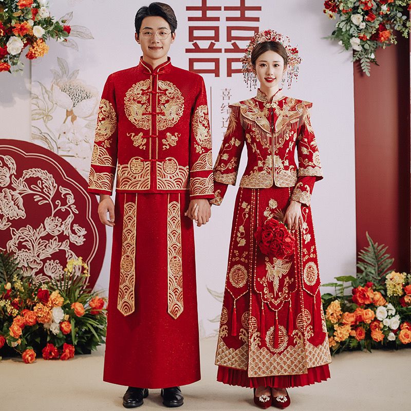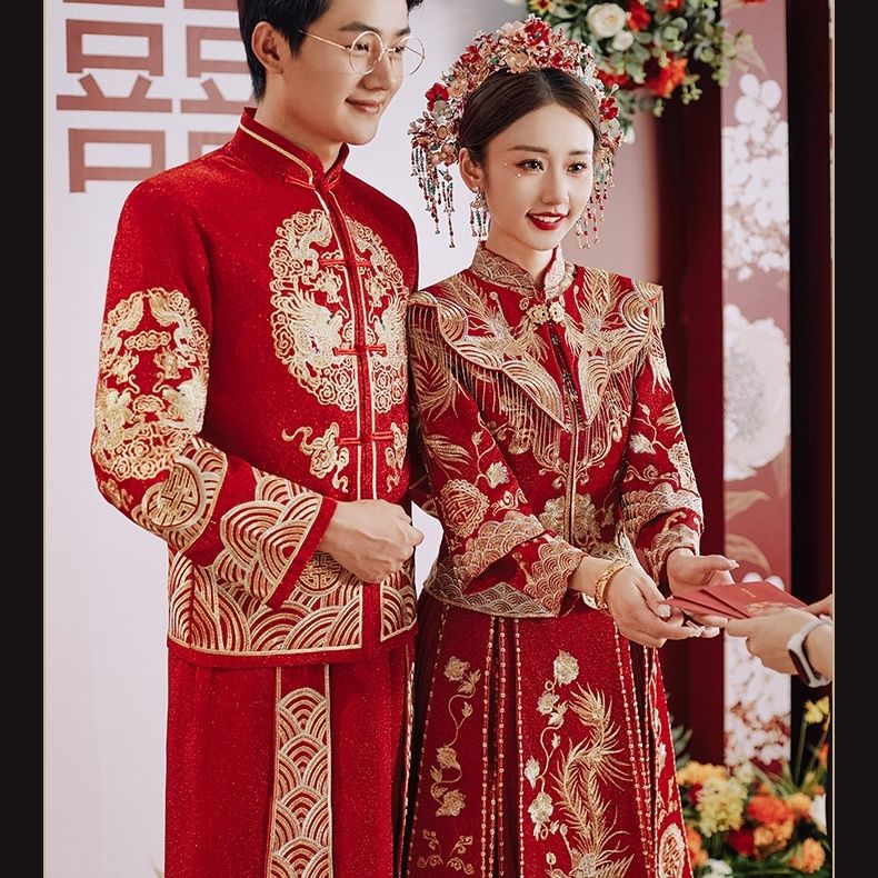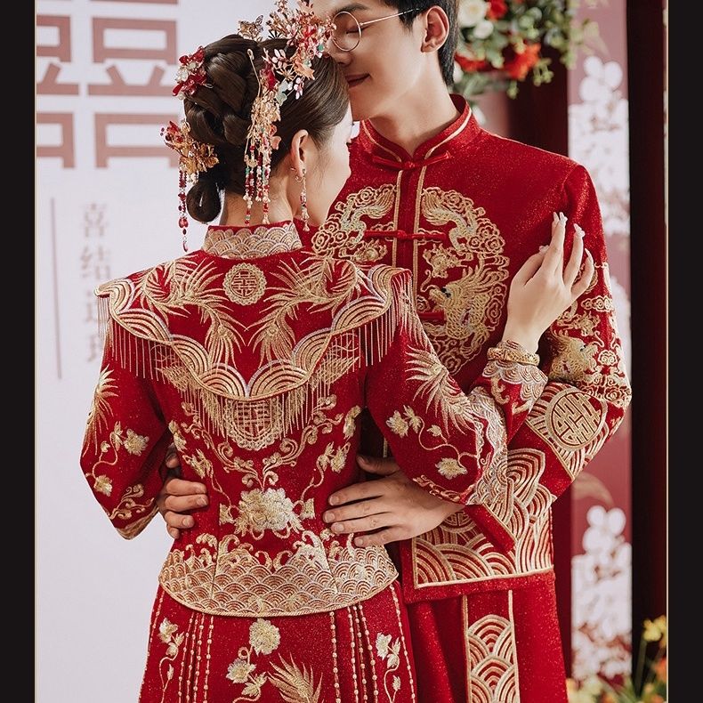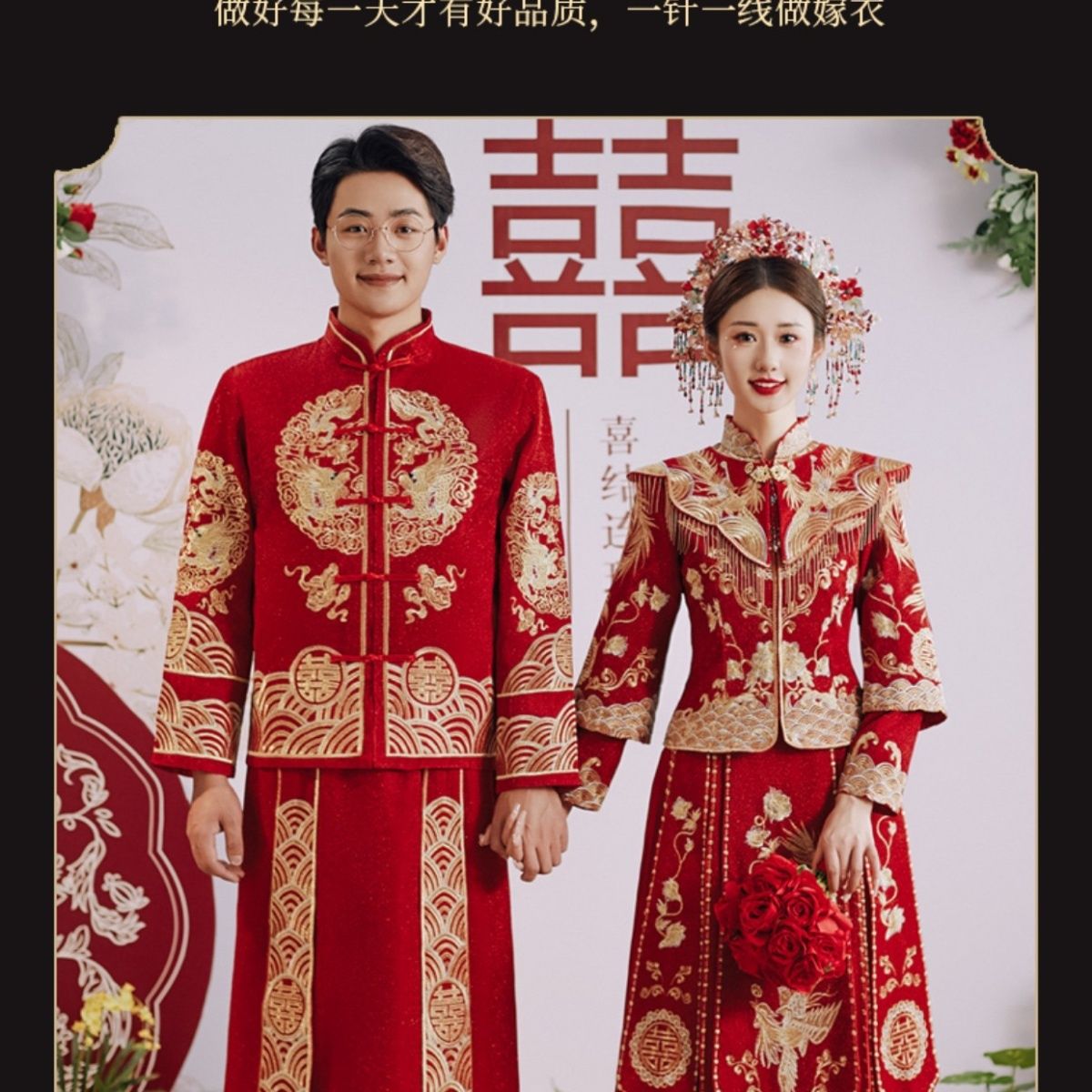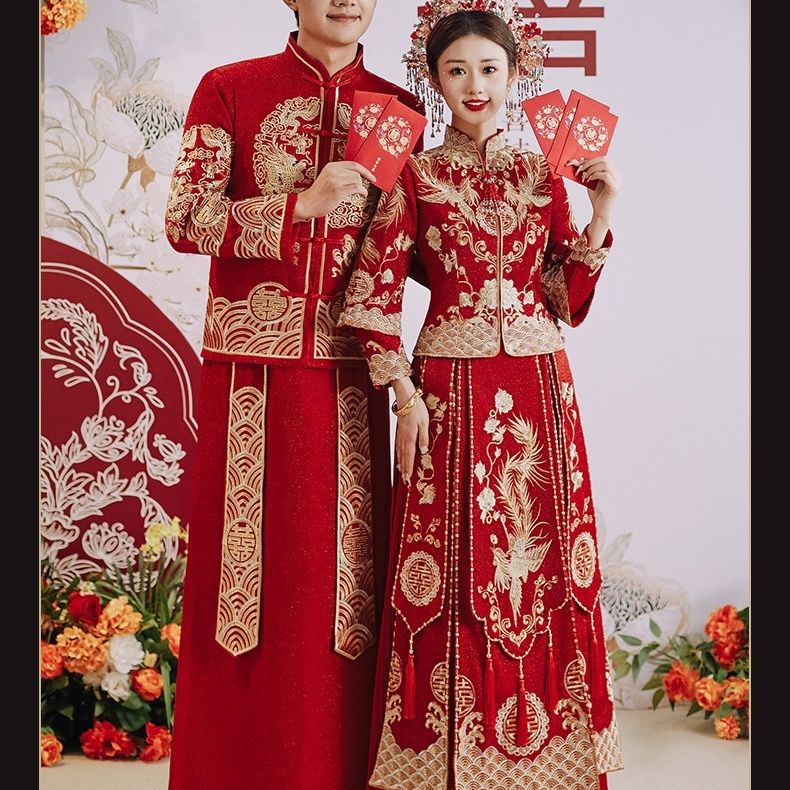 秀禾服新娘2023新款结婚中式婚纱大码情侣套装礼服小个子夏季秀禾