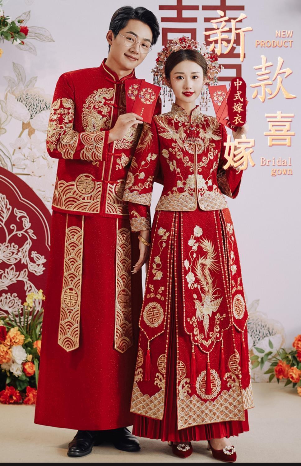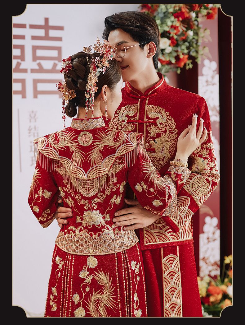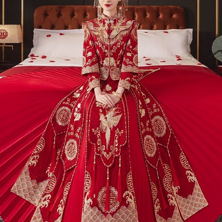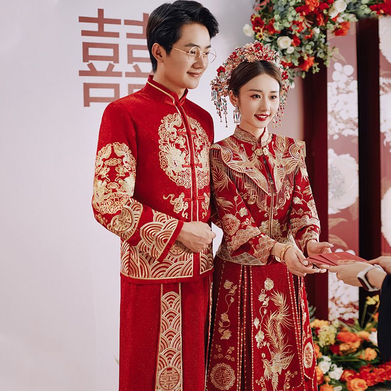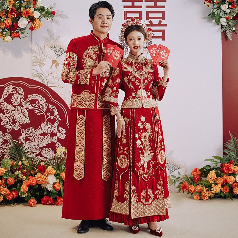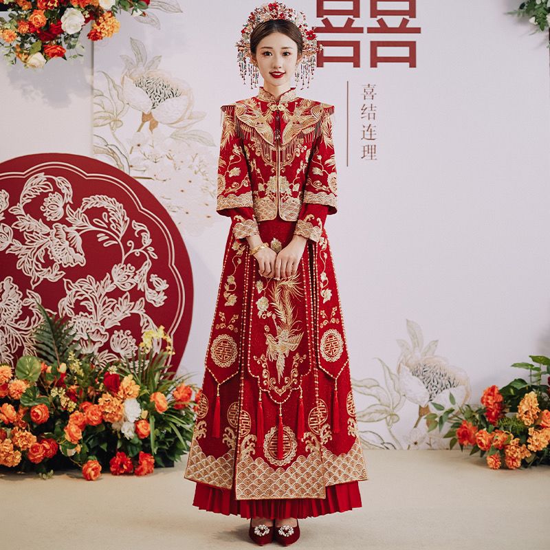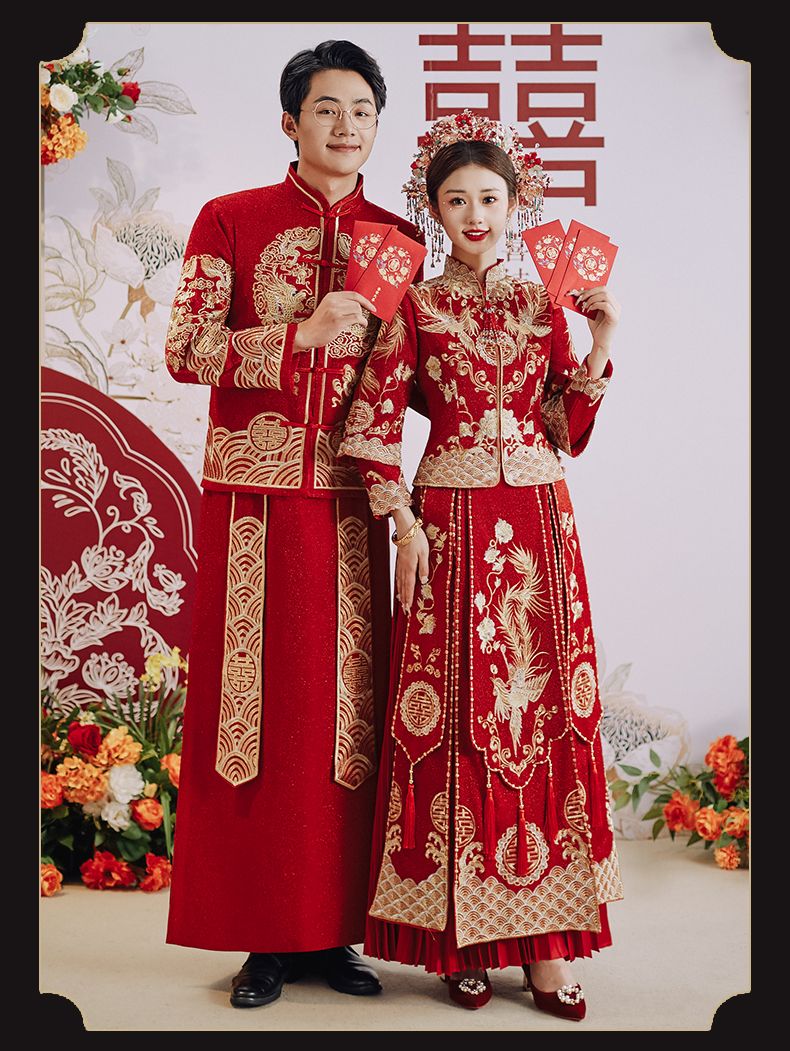 秀禾服新娘2023新款结婚中式婚纱大码情侣套装礼服小个子夏季秀禾