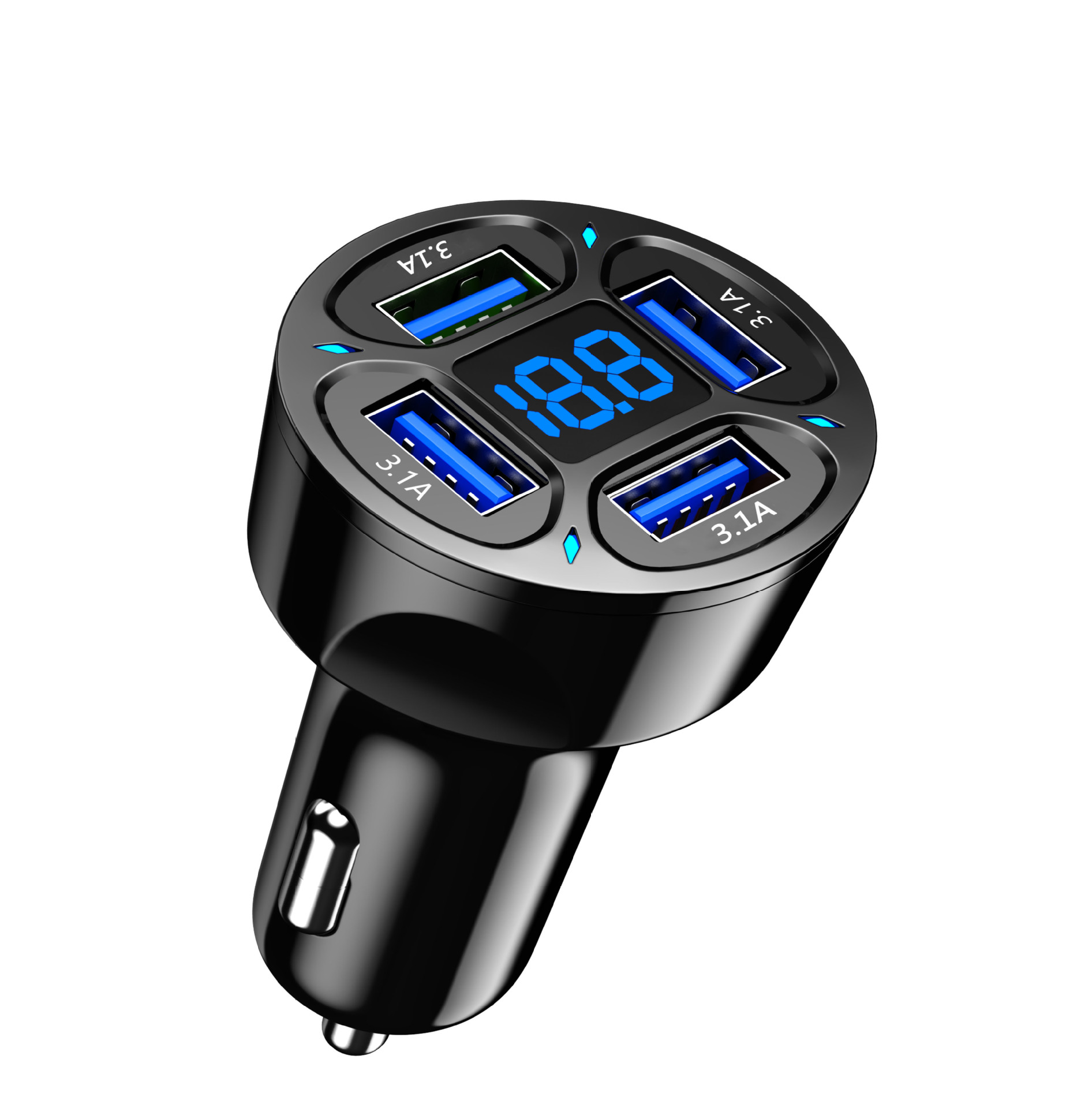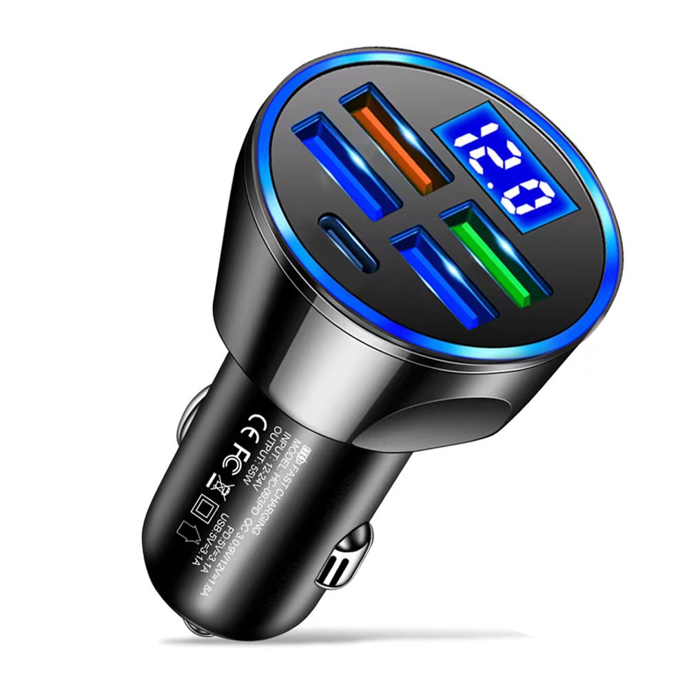 新款4usb数显车充66W快充PD手机充电头一拖四QC3.0车载充电器厂家