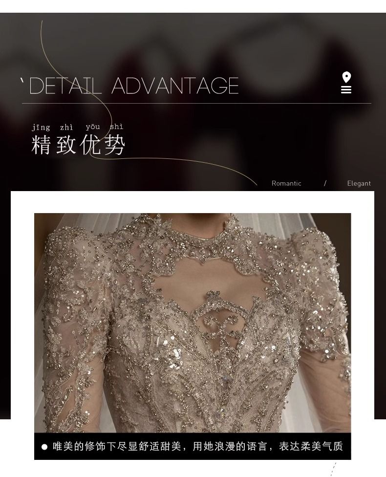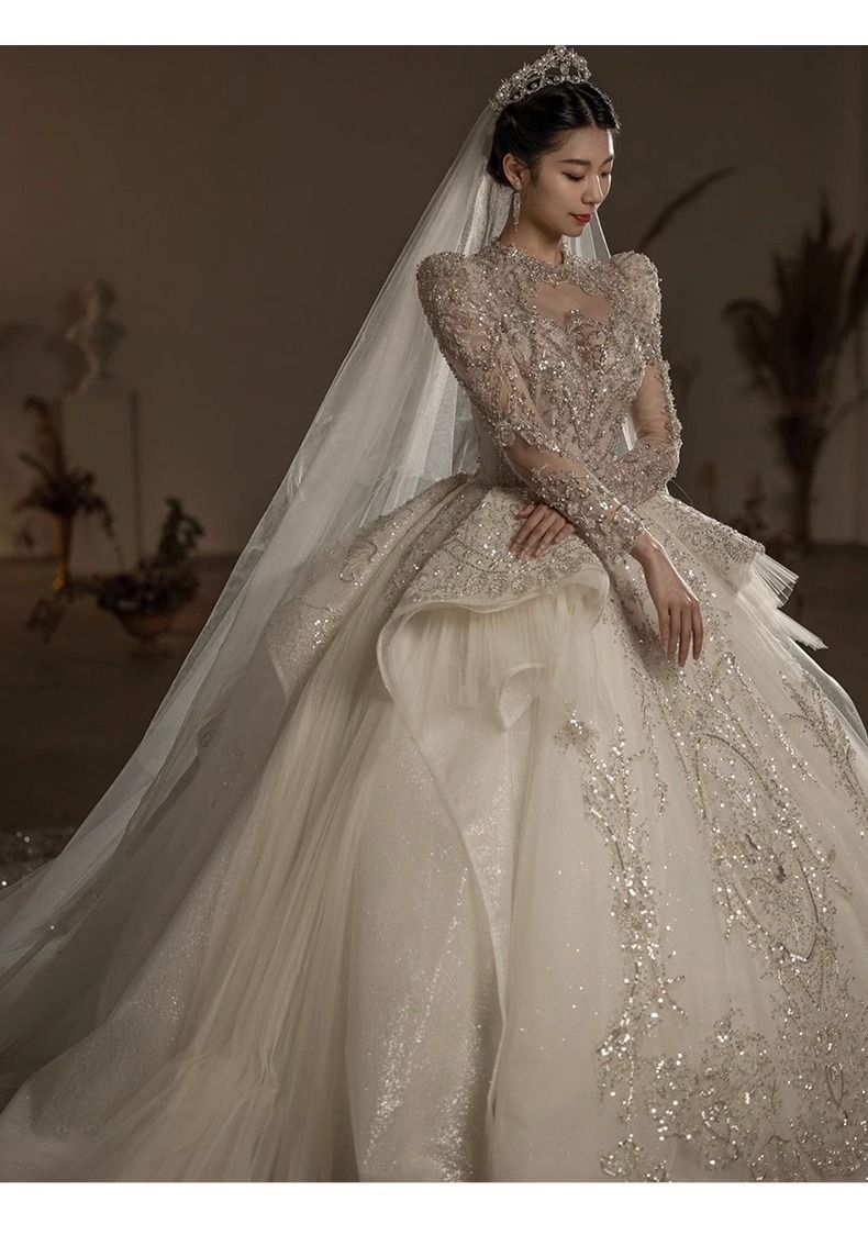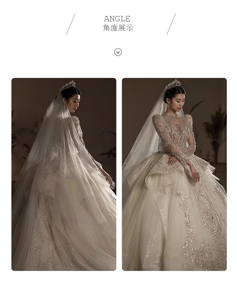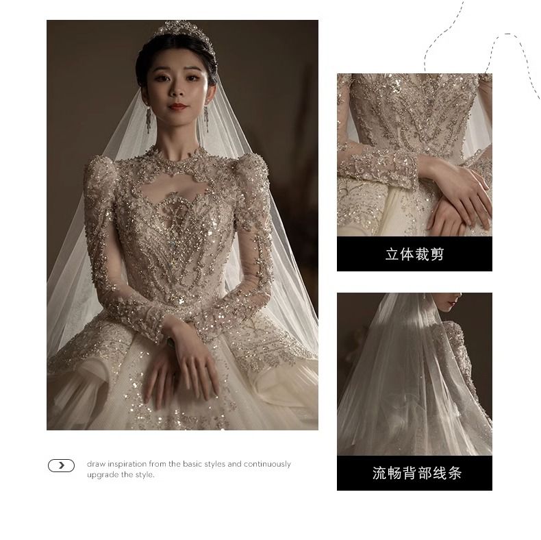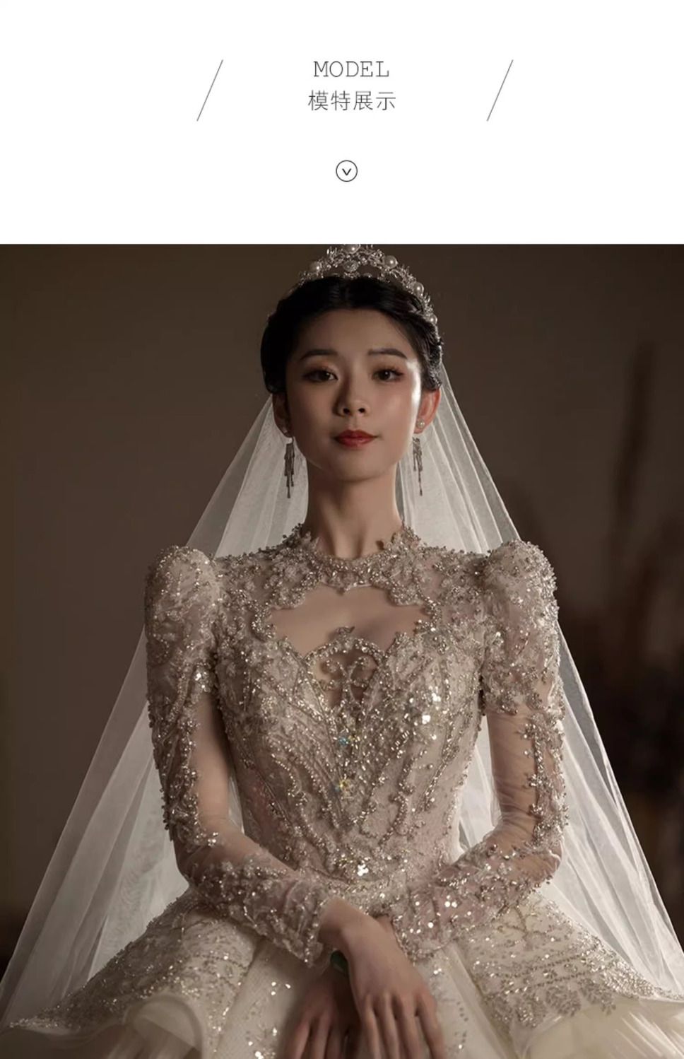 主婚纱2024新款新娘冬季大拖尾婚纱主纱星空小个子法式复古重工女