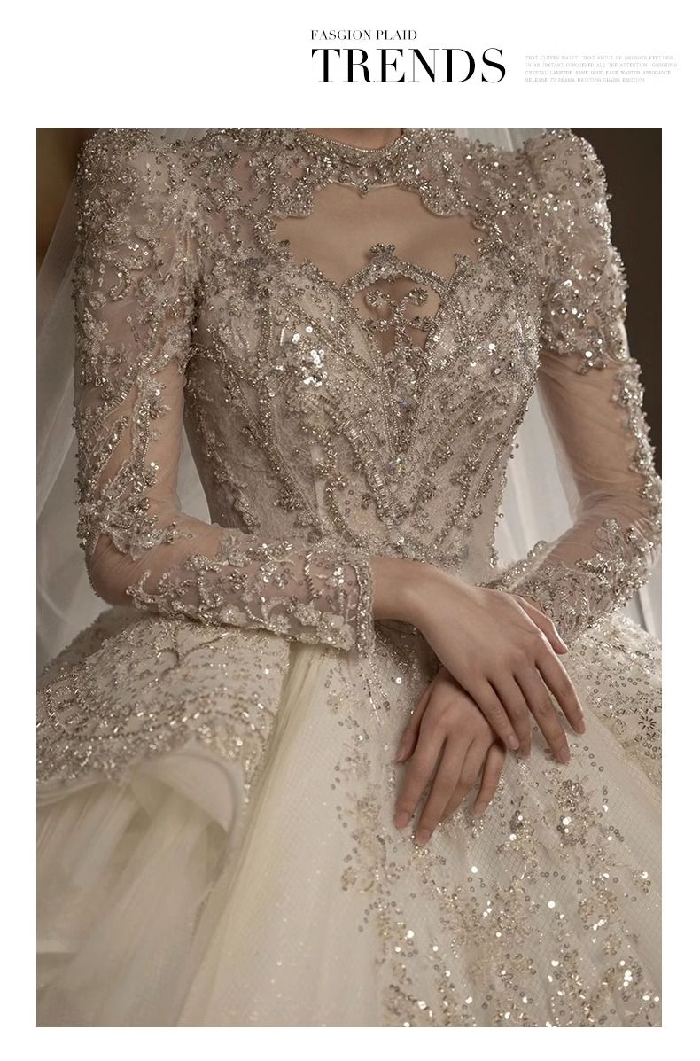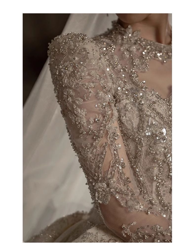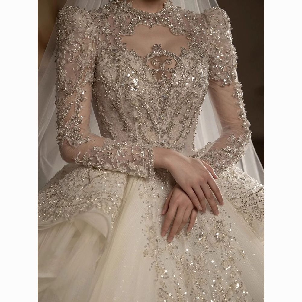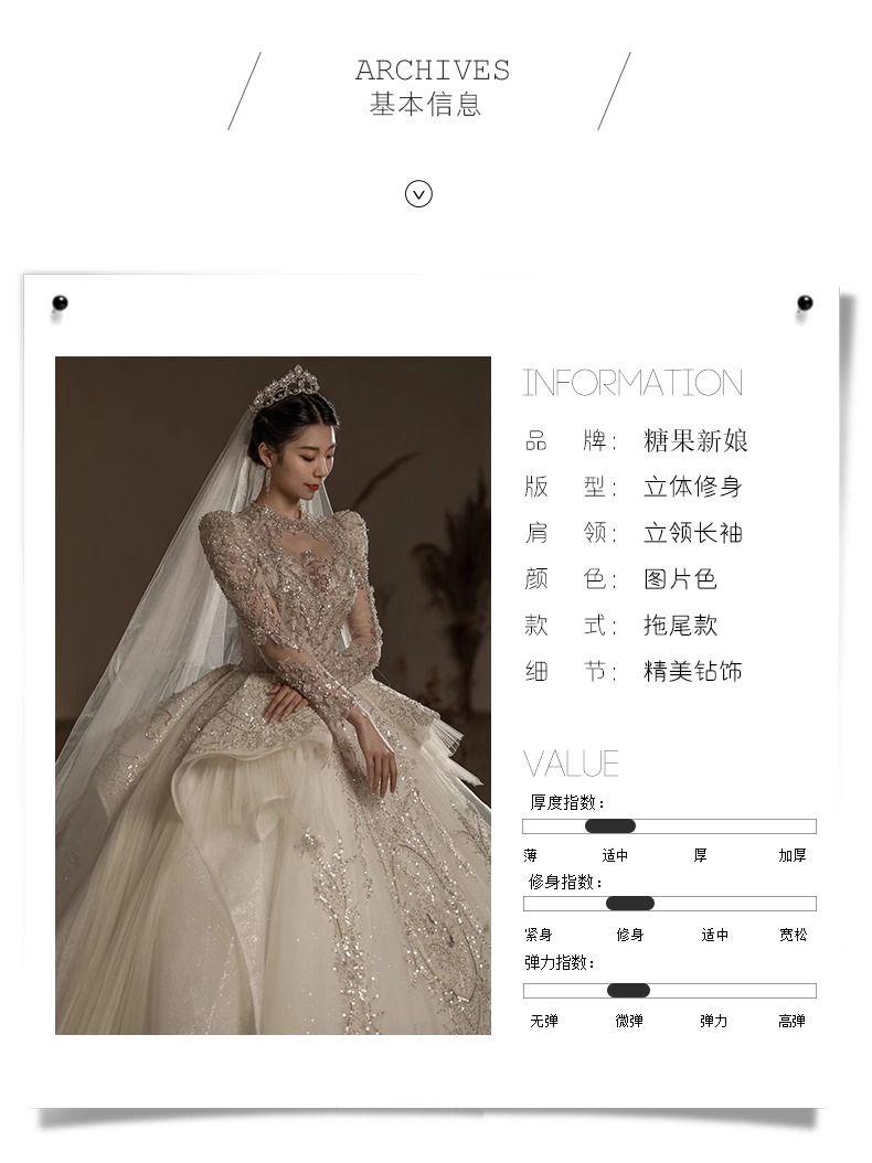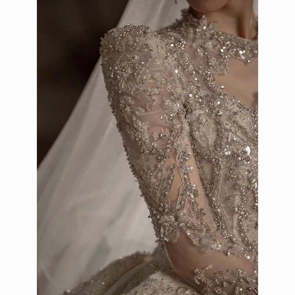 主婚纱2024新款新娘冬季大拖尾婚纱主纱星空小个子法式复古重工女