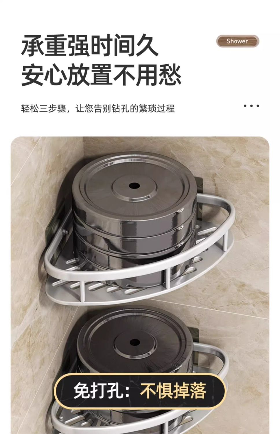 免打孔浴室三角架卫生间洗漱台壁挂置物架厕所洗手间厨房收纳角架