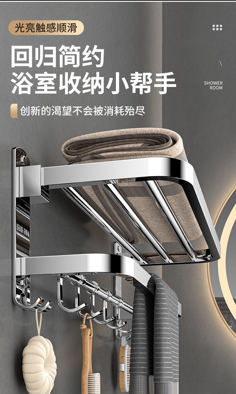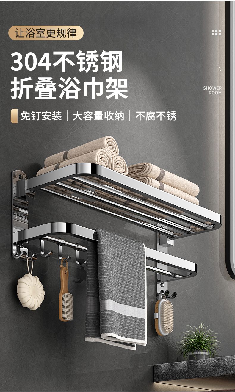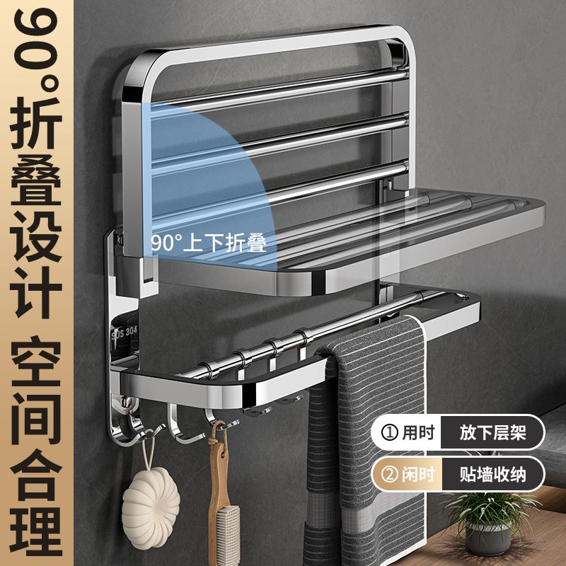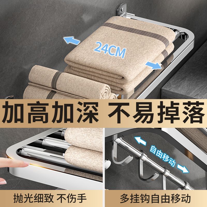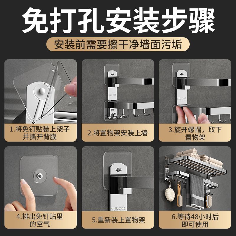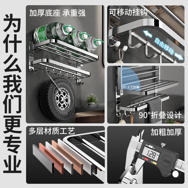 加厚304不锈钢毛巾架免打孔卫生间浴巾架浴室置物架厕所毛巾挂架