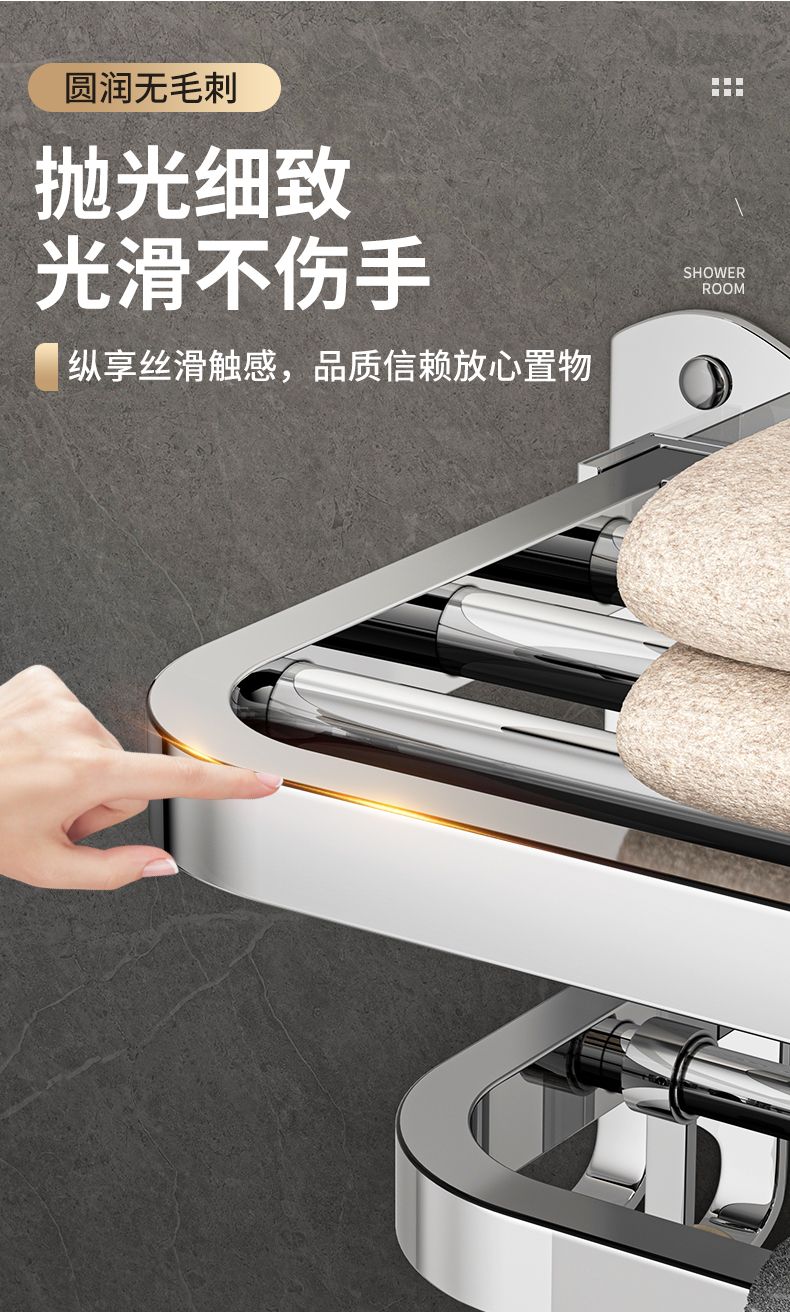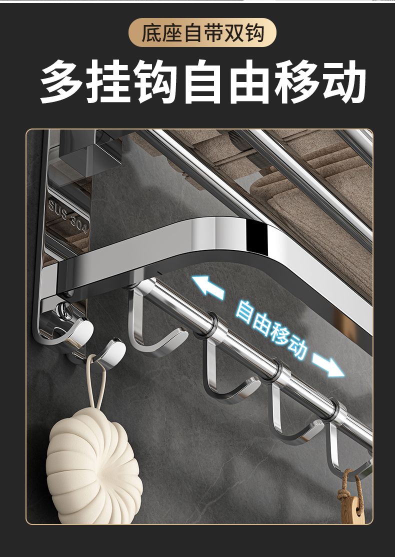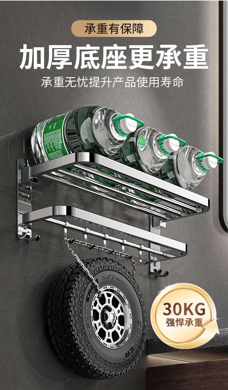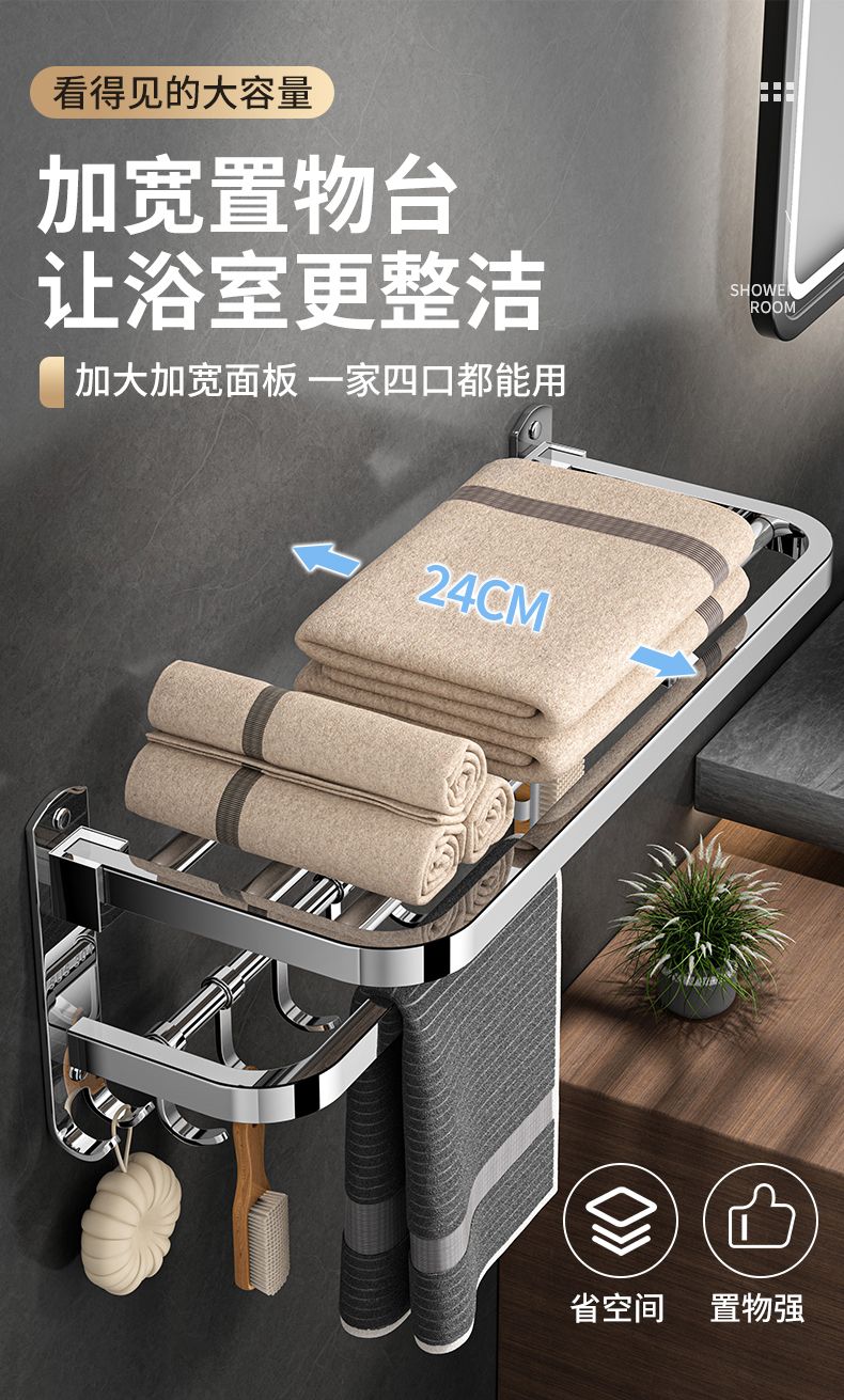 加厚304不锈钢毛巾架免打孔卫生间浴巾架浴室置物架厕所毛巾挂架