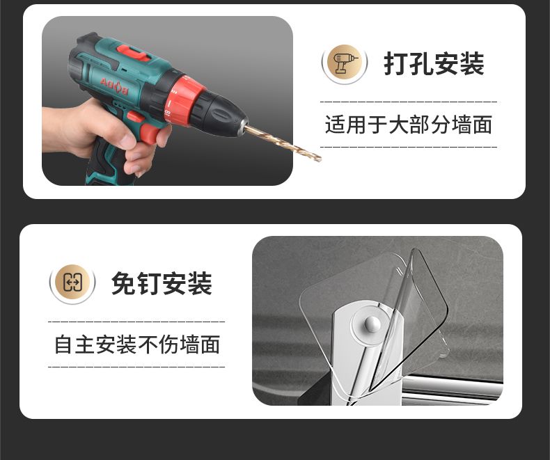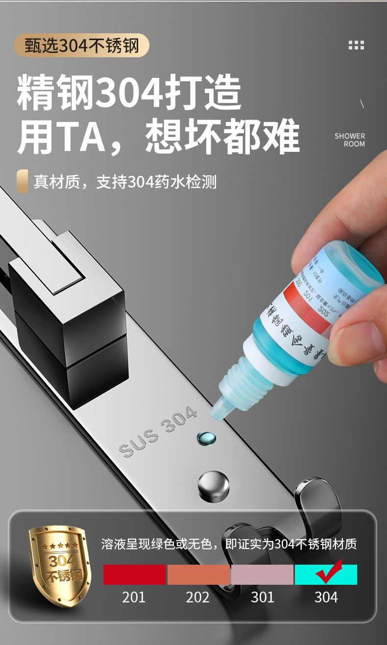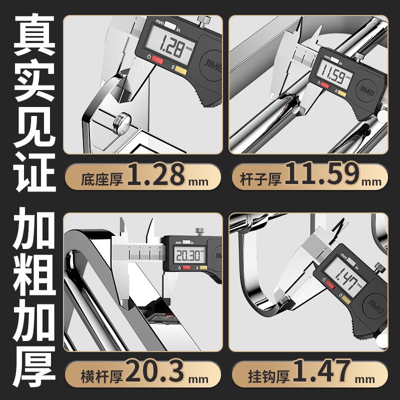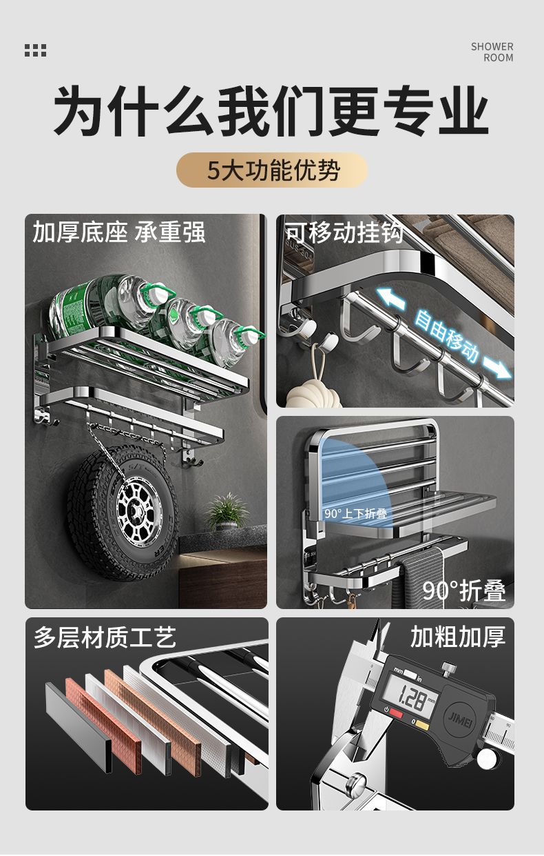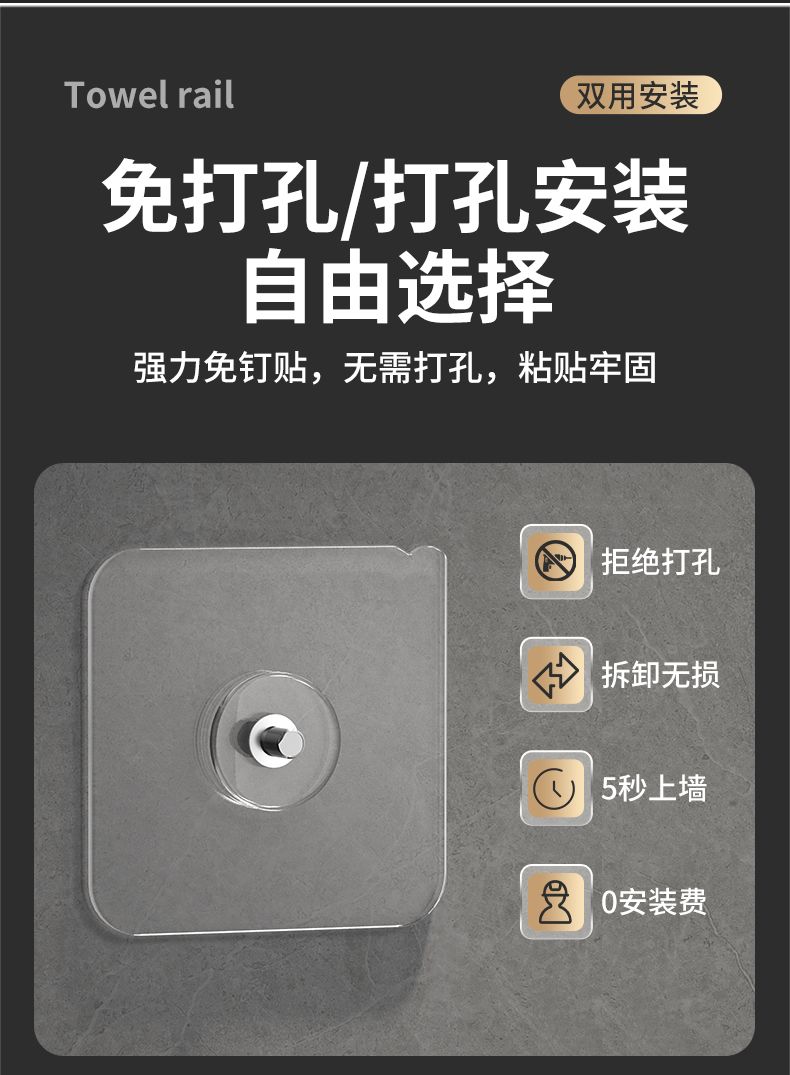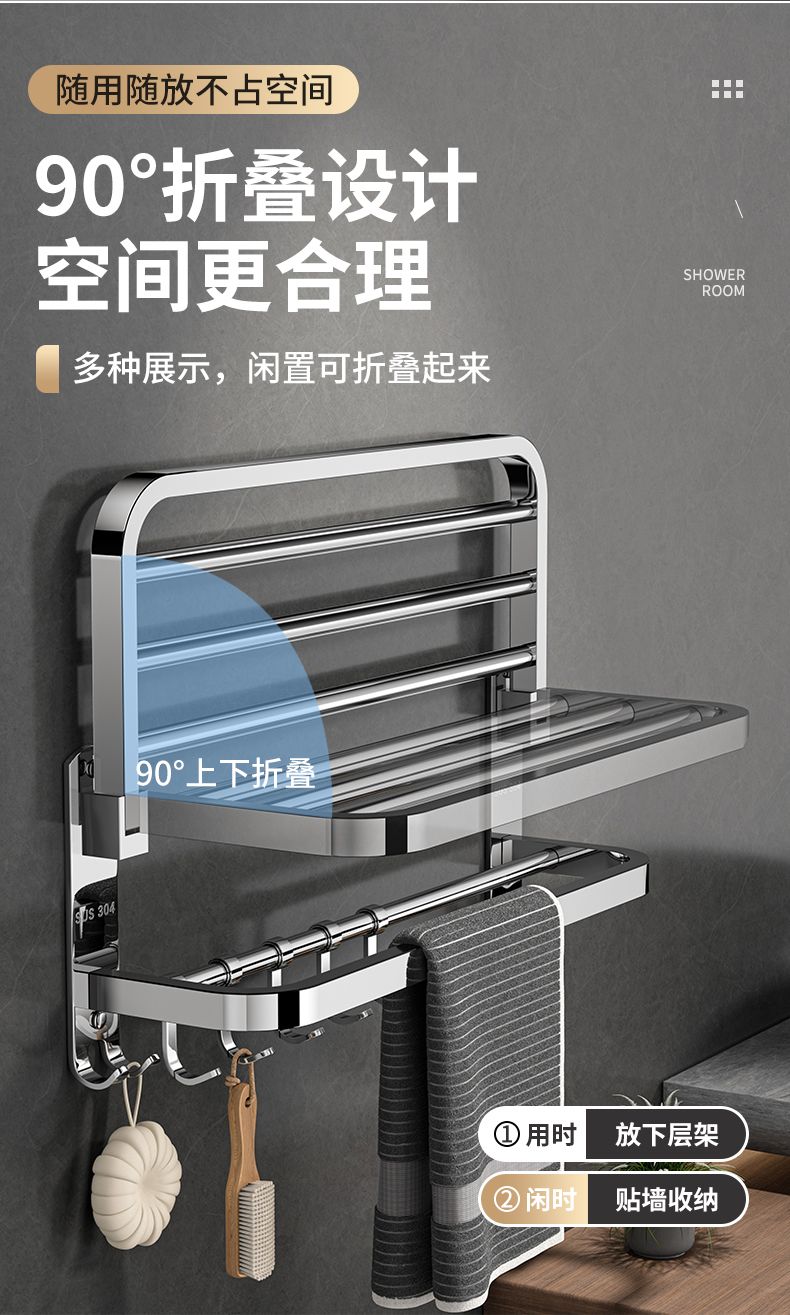 加厚304不锈钢毛巾架免打孔卫生间浴巾架浴室置物架厕所毛巾挂架