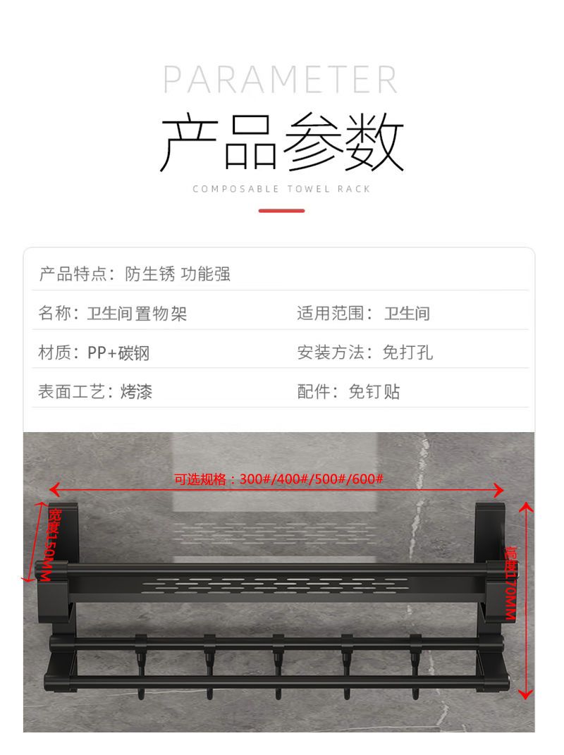 | 实惠款60cm二层+5钩+免钉贴 | USD $6.84 | 99999 piece available |