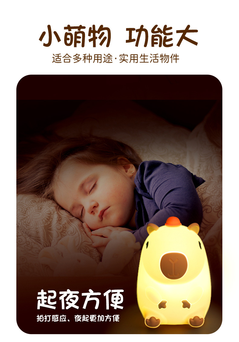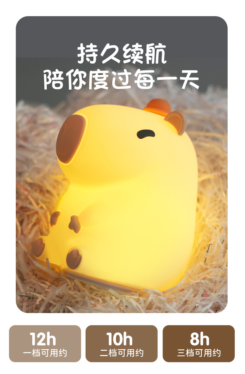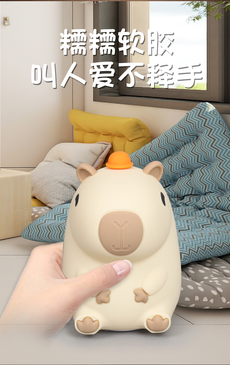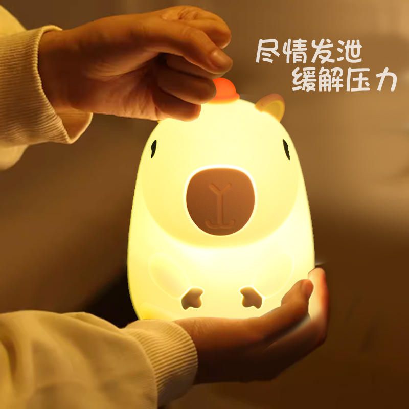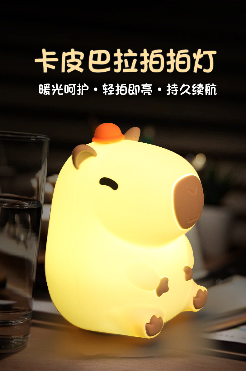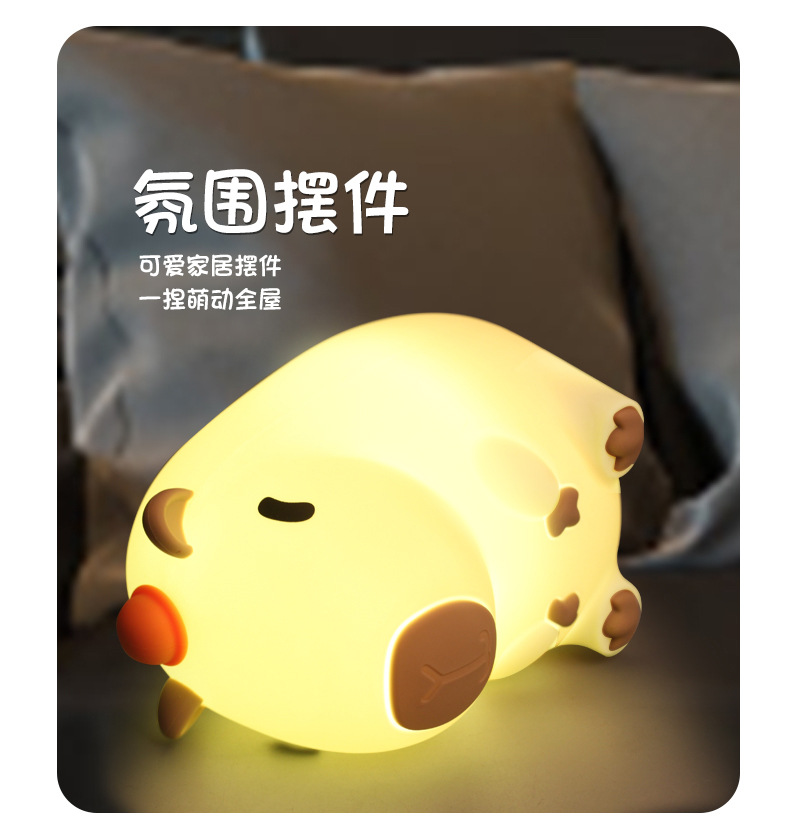 跨境卡皮巴拉小夜灯硅胶拍拍灯可充电水豚拍拍灯氛围灯礼物
