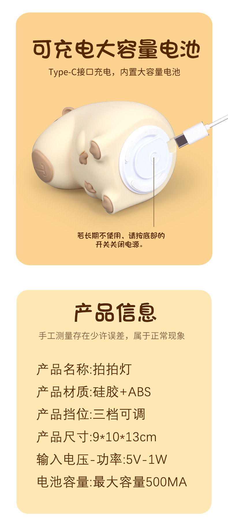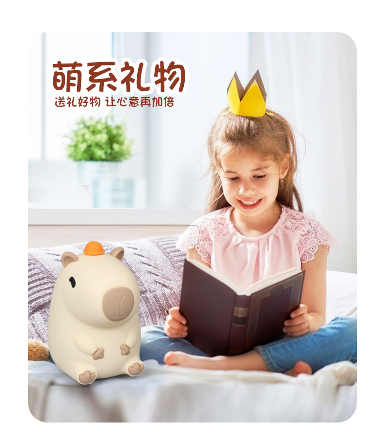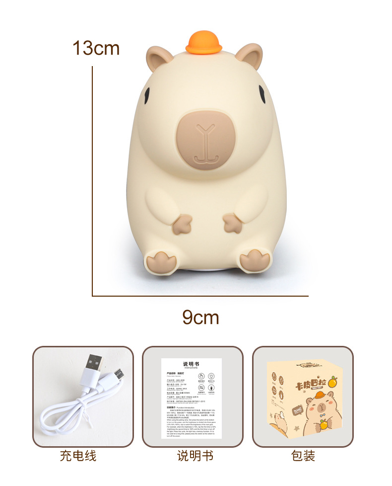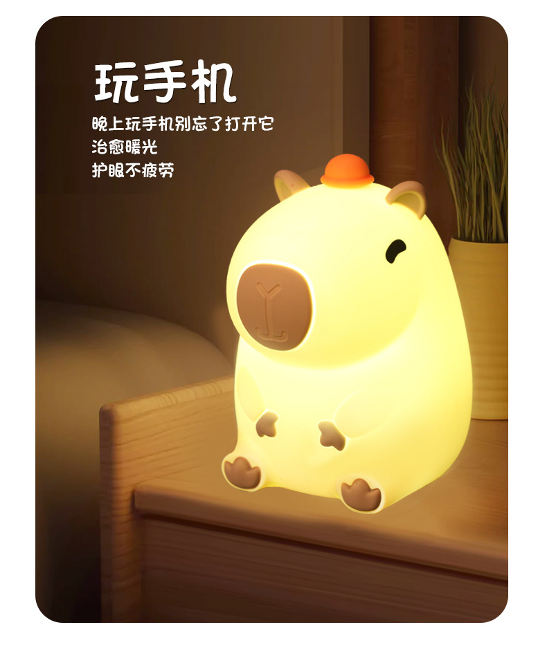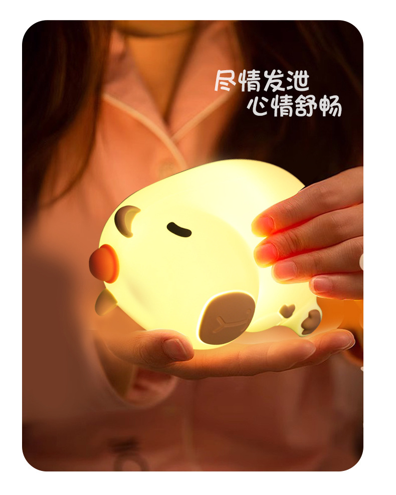 跨境卡皮巴拉小夜灯硅胶拍拍灯可充电水豚拍拍灯氛围灯礼物