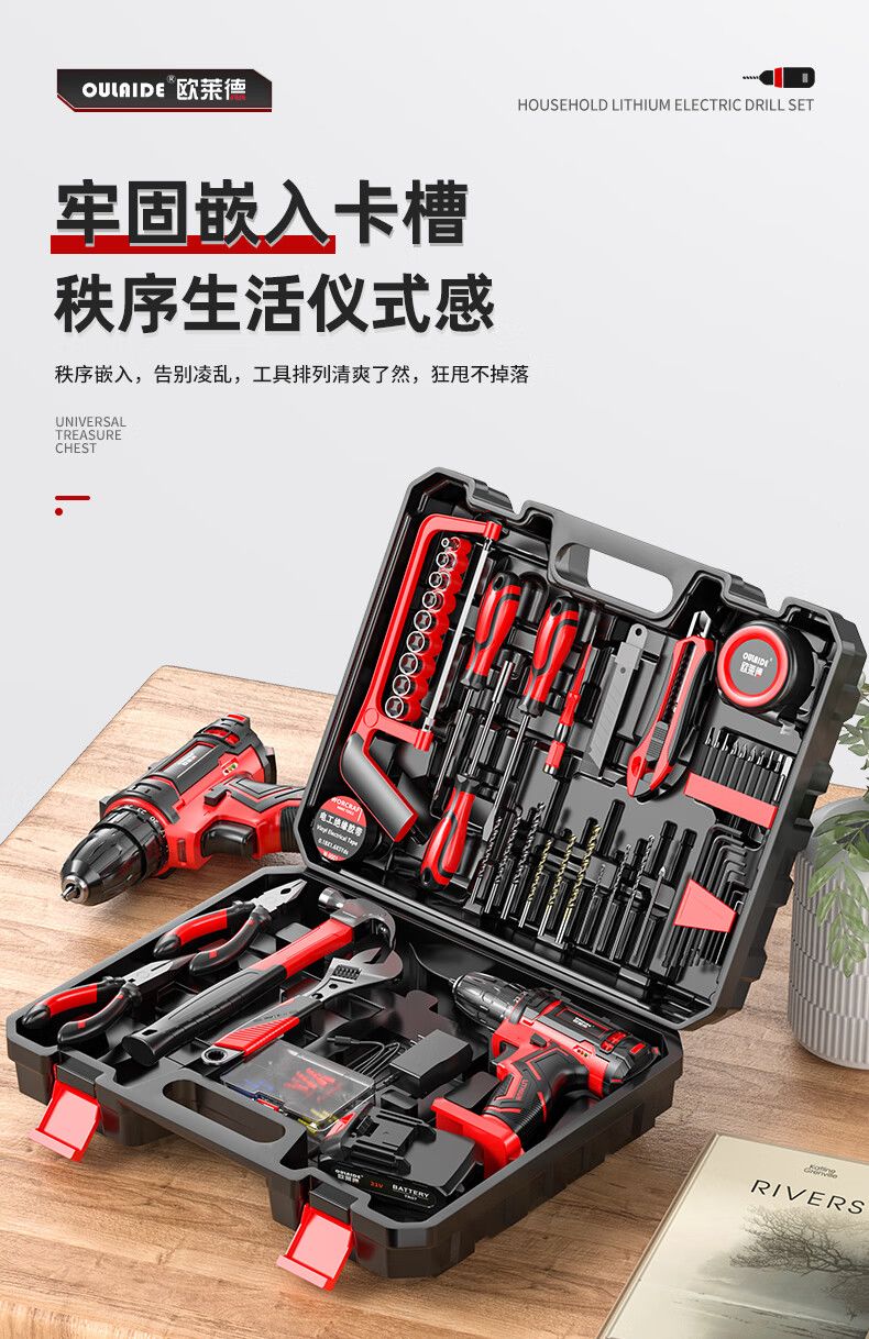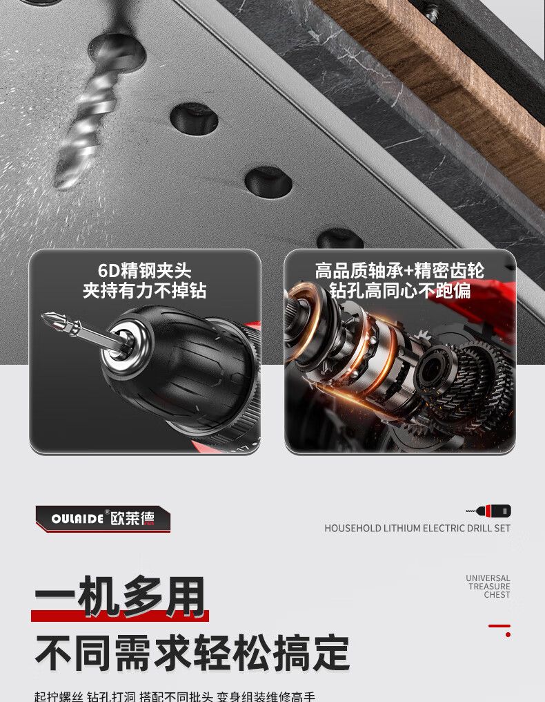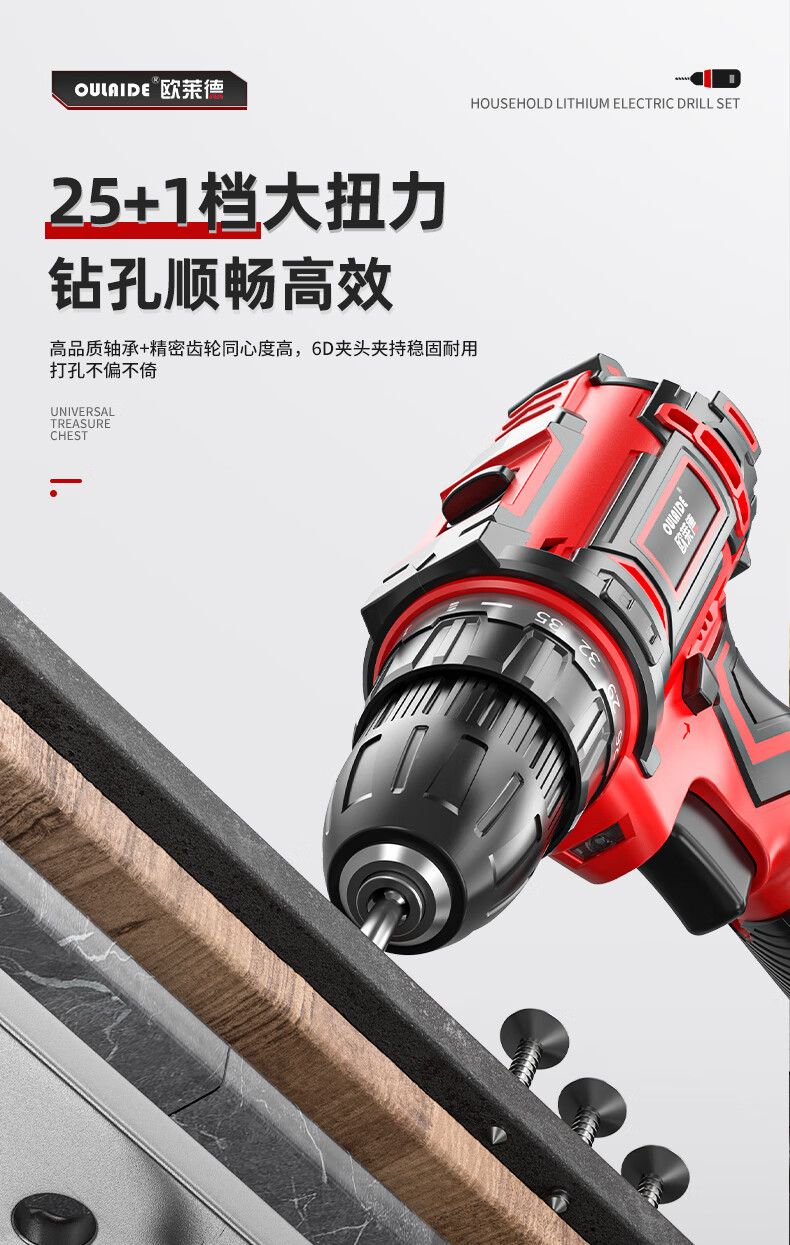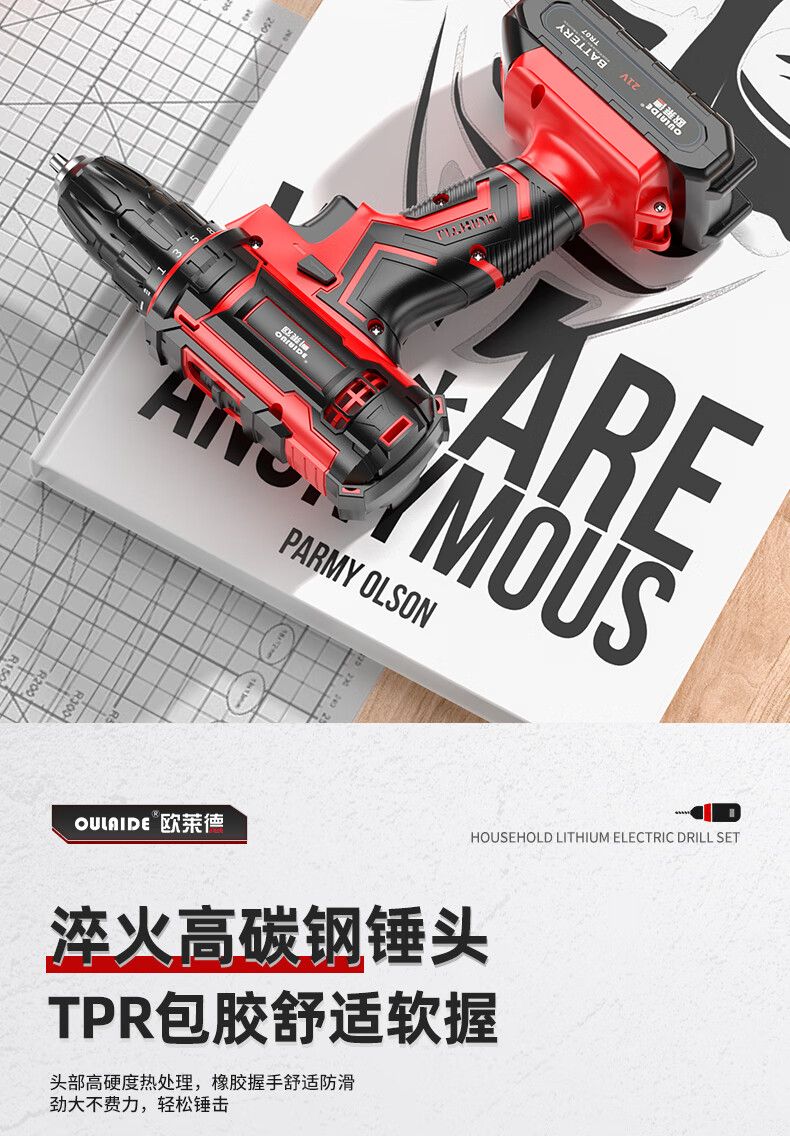 欧莱德锂电钻转21v充电手电钻德国电动螺丝刀工具箱冲击钻套装