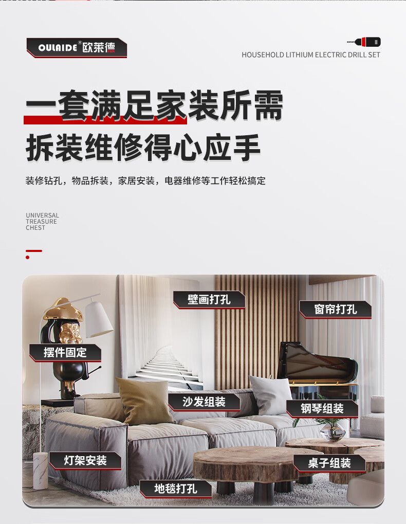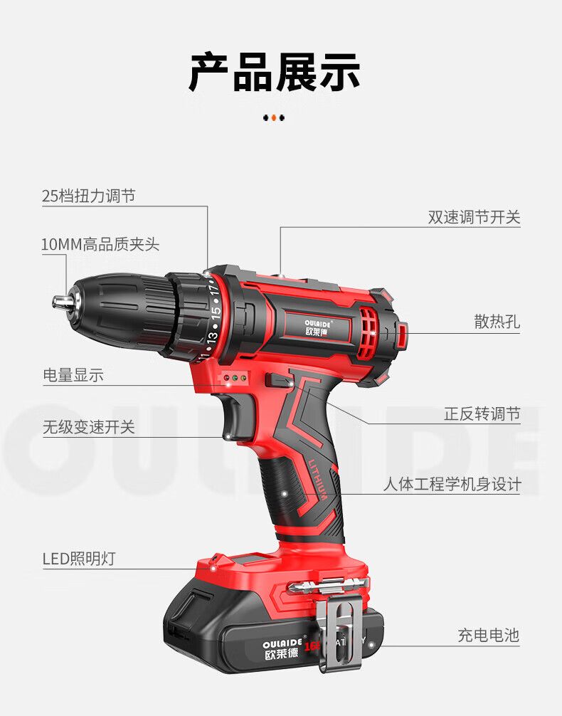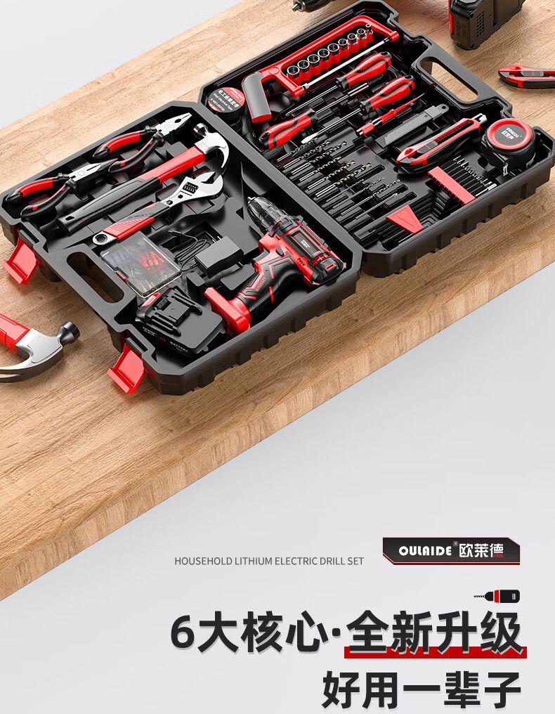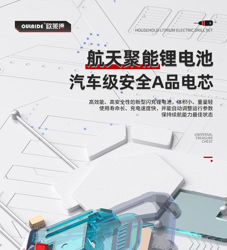欧莱德锂电钻转21v充电手电钻德国电动螺丝刀工具箱冲击钻套装