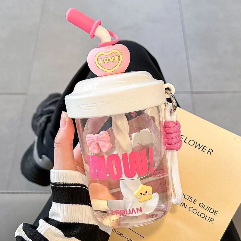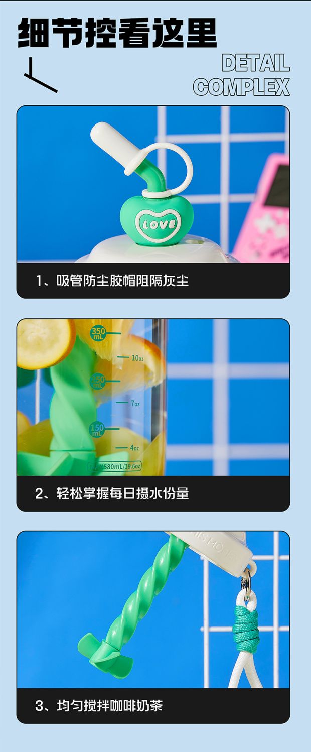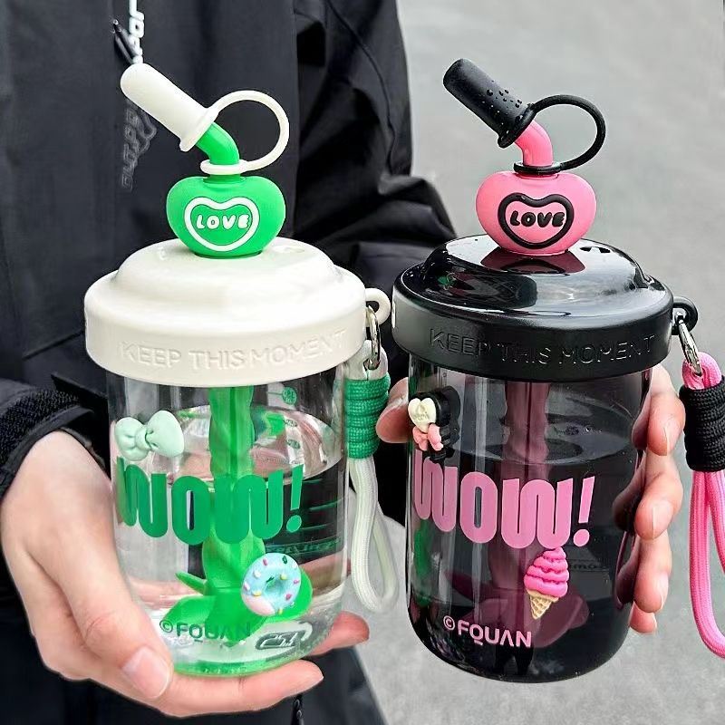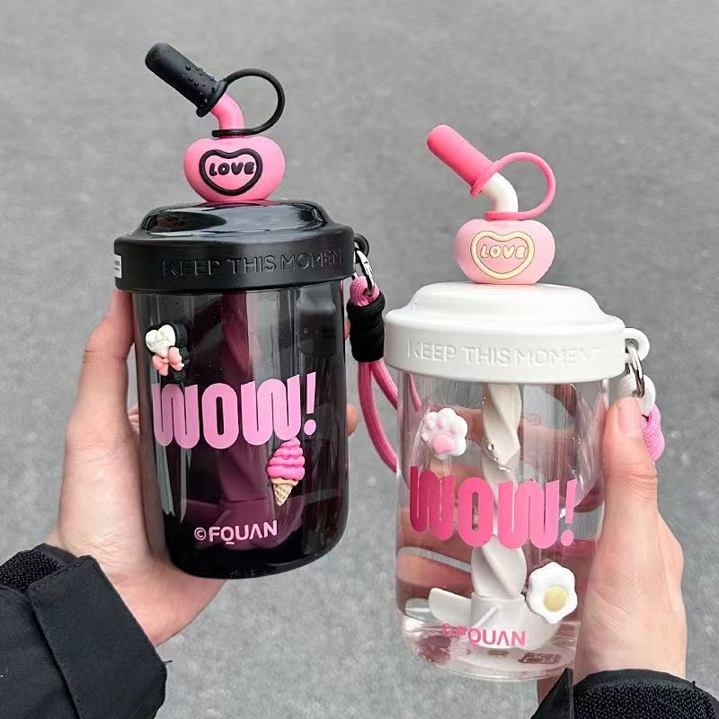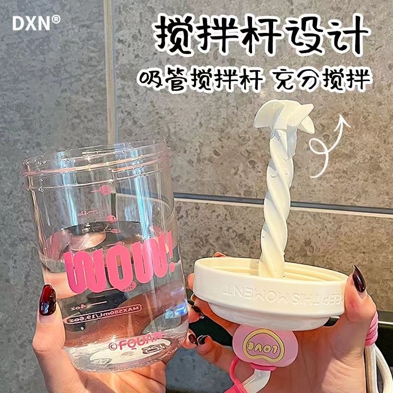 水杯夏天2024新款女高颜值吸管杯子夏季可爱塑料便携少女心搅拌杯