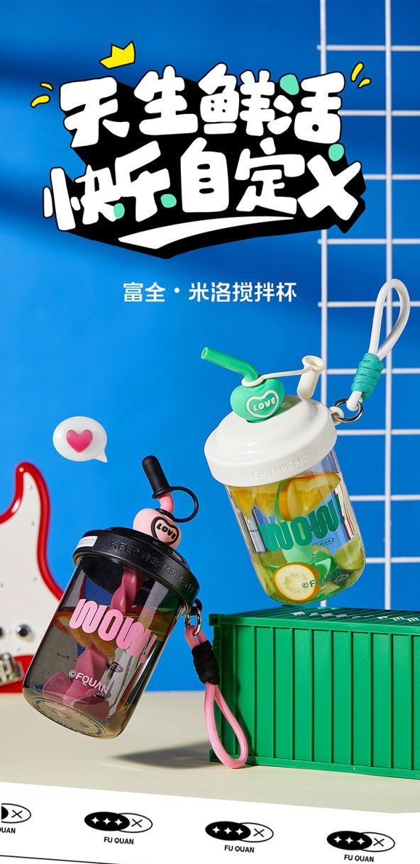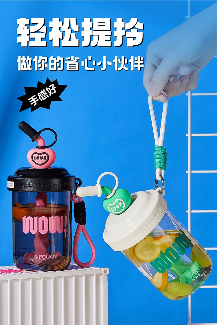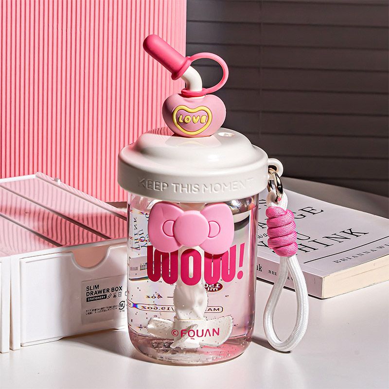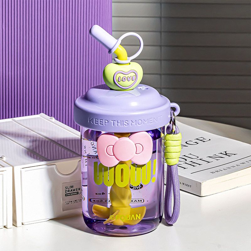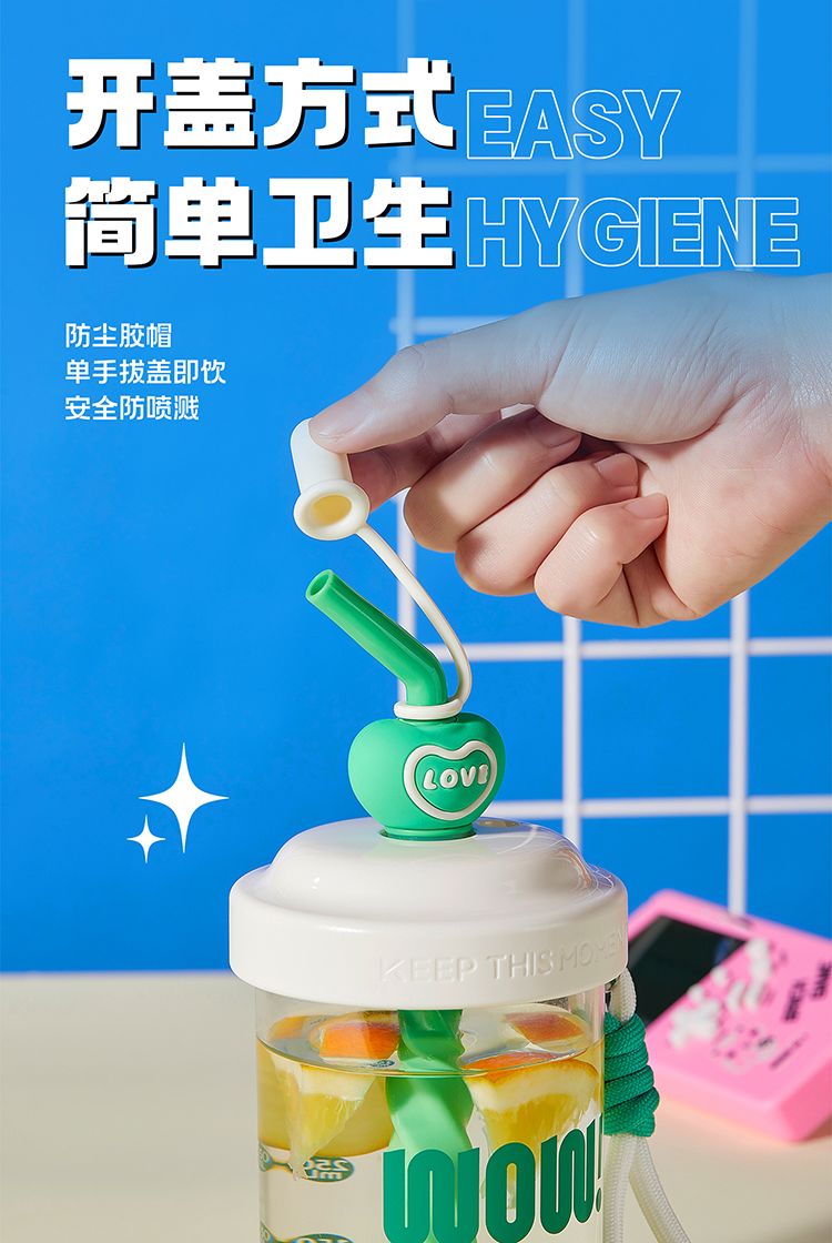 水杯夏天2024新款女高颜值吸管杯子夏季可爱塑料便携少女心搅拌杯