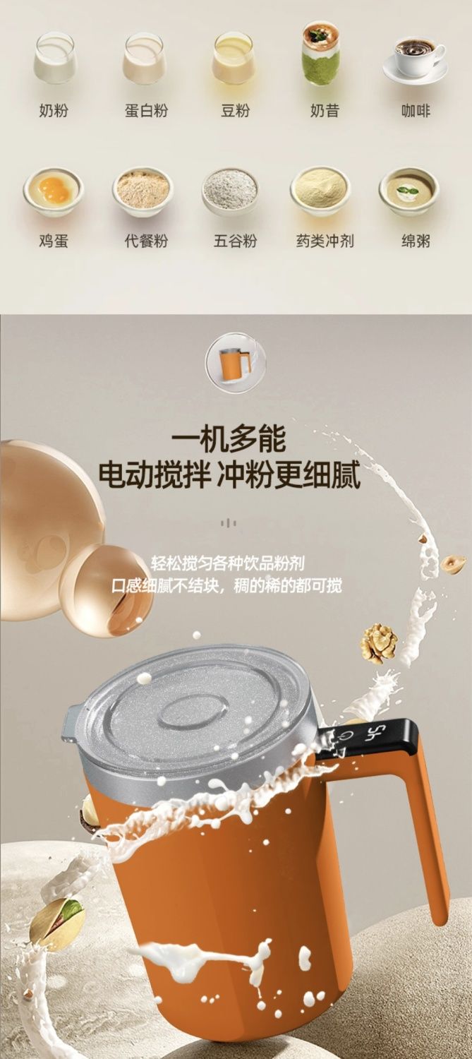 防摔全自动搅拌杯智能咖啡杯女生高颜值316不锈钢便携充电水杯子