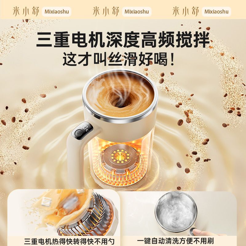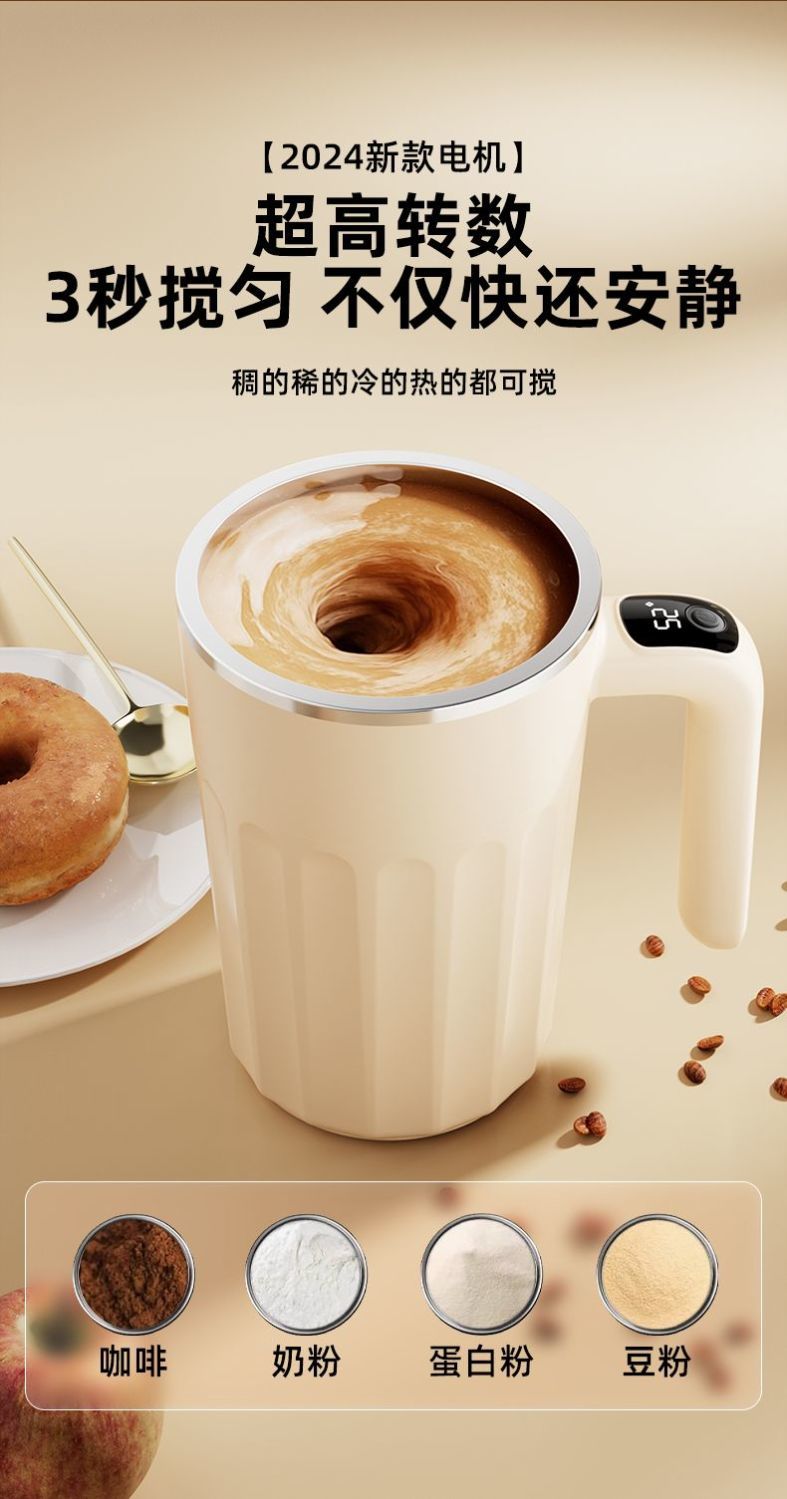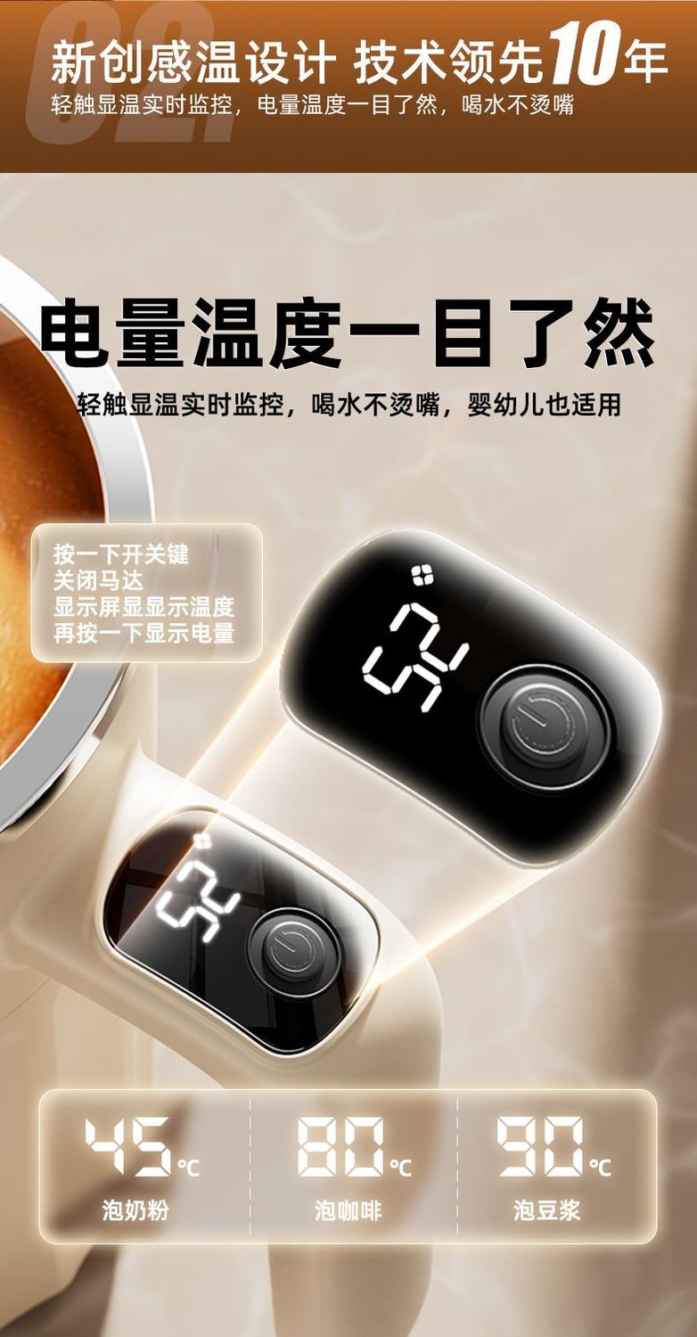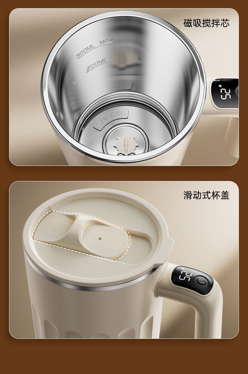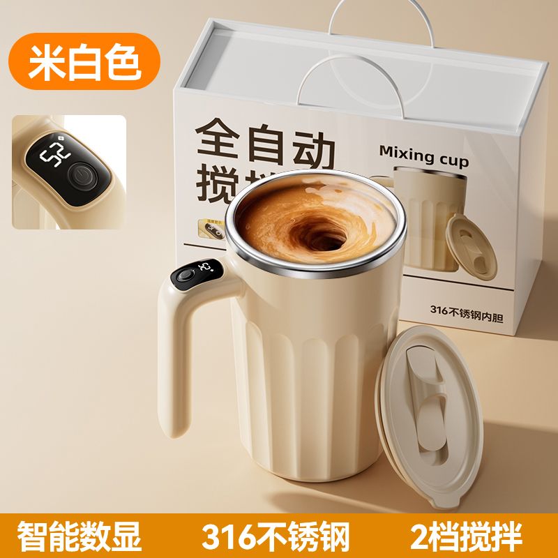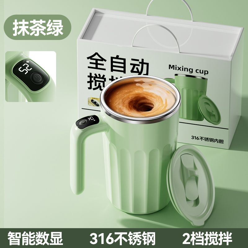 新款全自动316不锈钢咖啡搅拌杯充电智能温显便捷式懒人水杯保温
