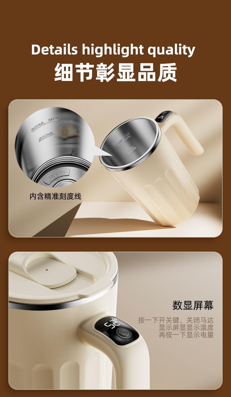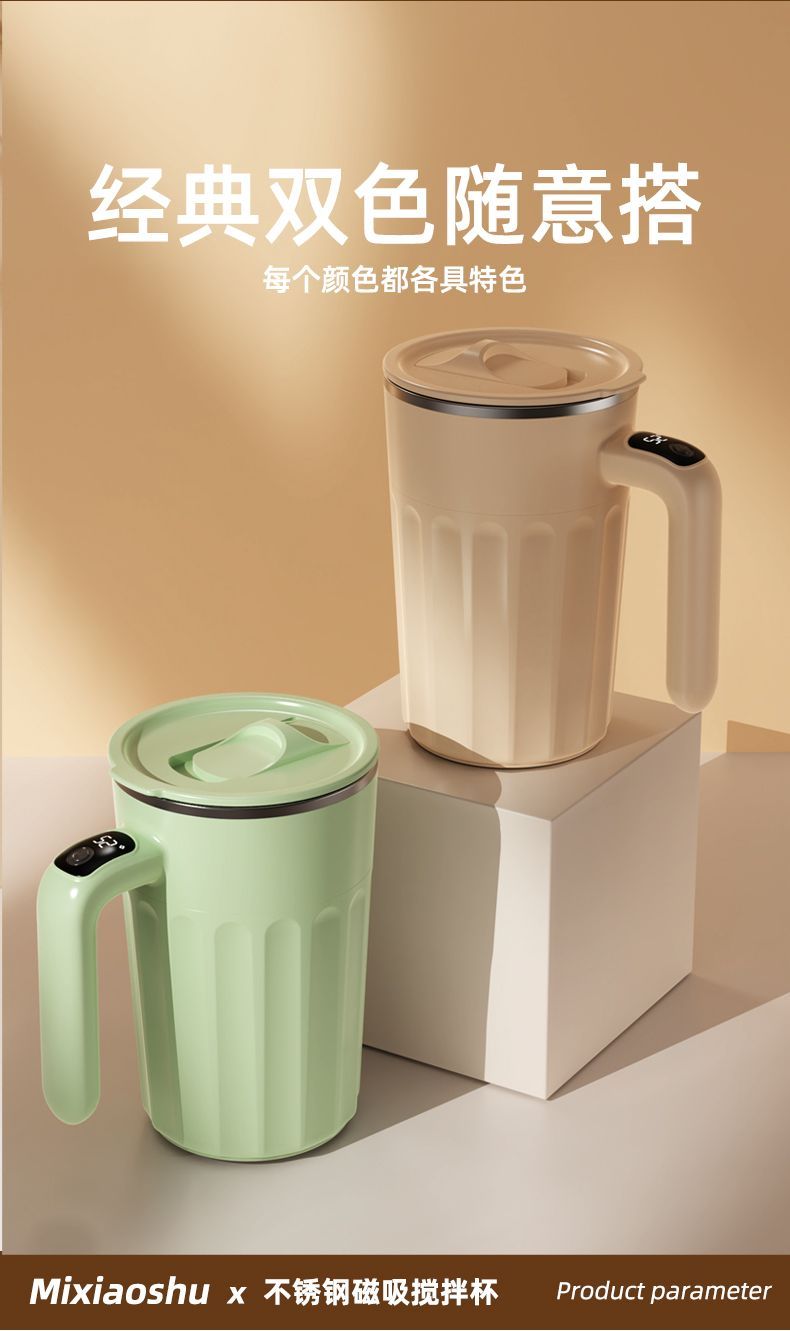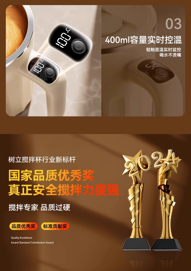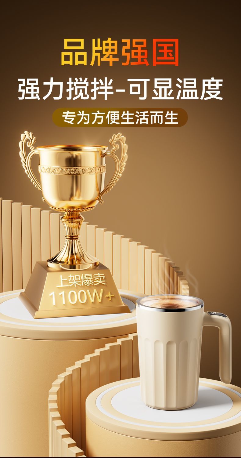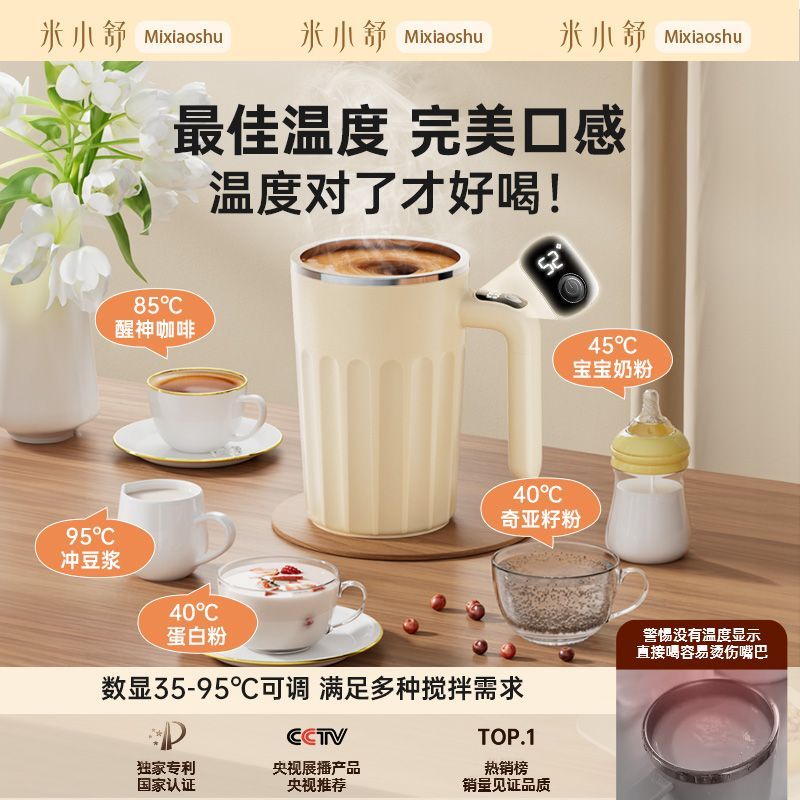 新款全自动316不锈钢咖啡搅拌杯充电智能温显便捷式懒人水杯保温