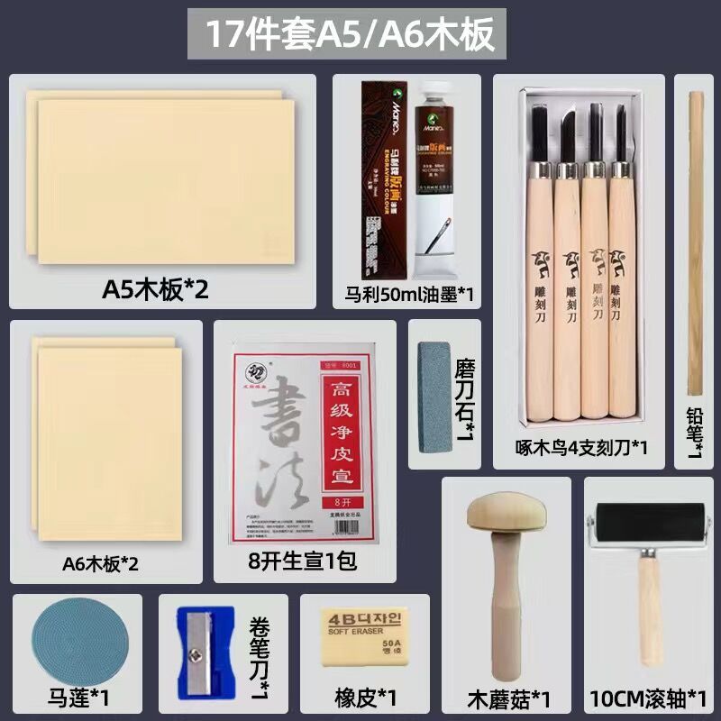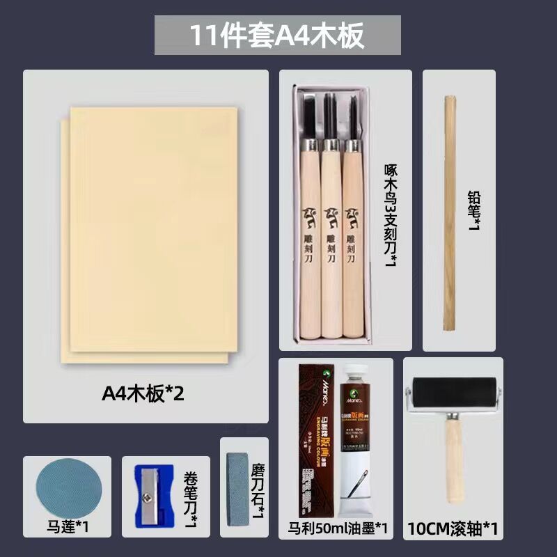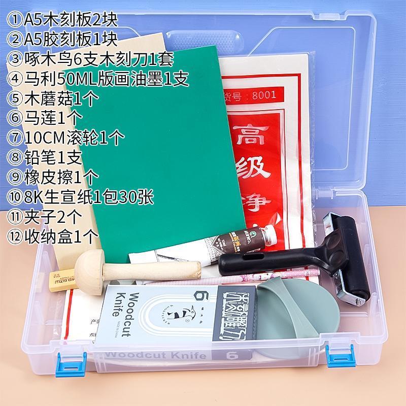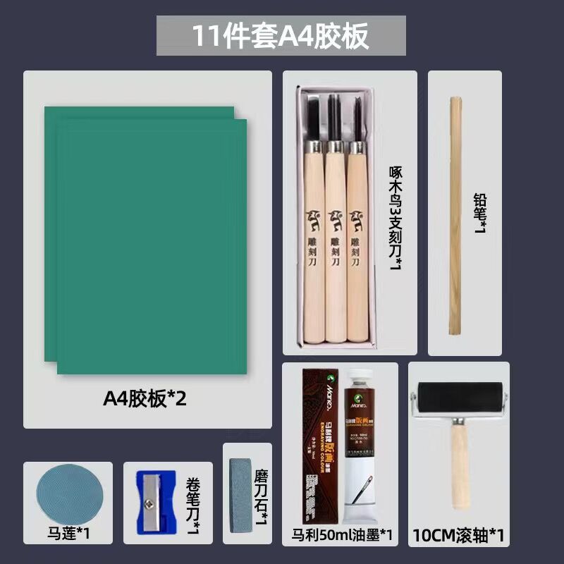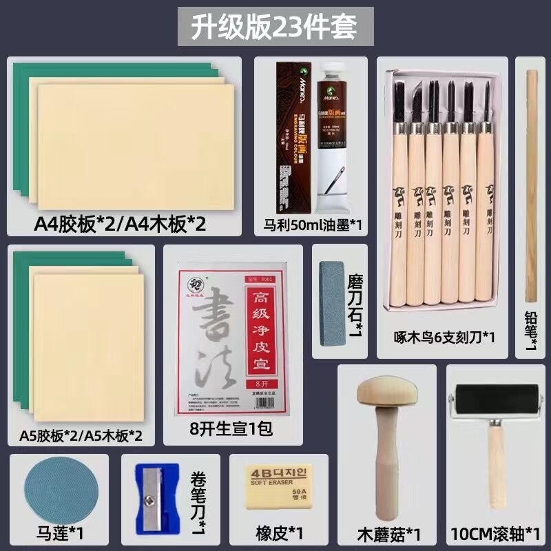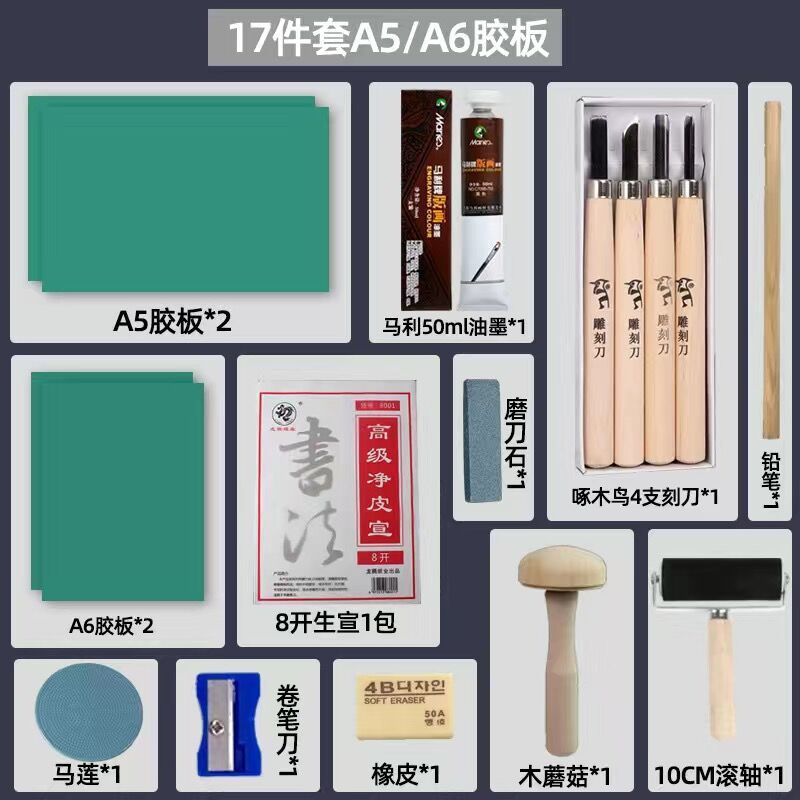 初学者版画工具套装木刻板胶刻板版画胶板马利油墨木刻刀马莲滚轮