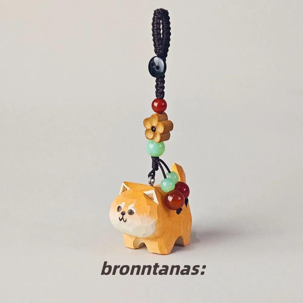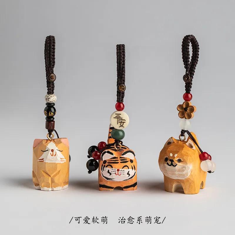 创意手工木雕萌猫柴犬桃木梅花钥匙扣书包挂件高颜值生日礼物