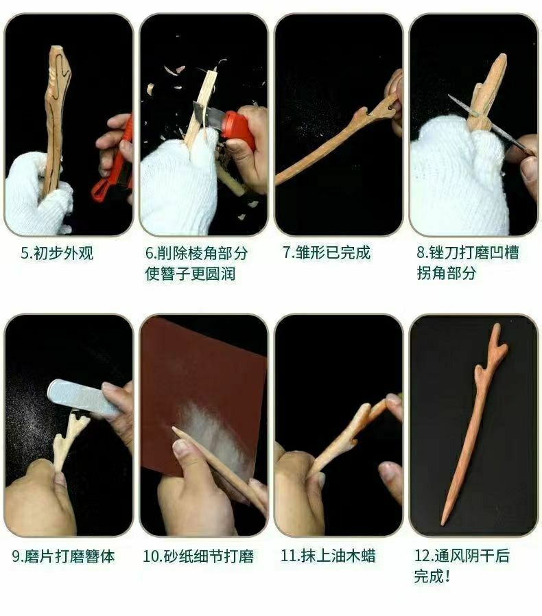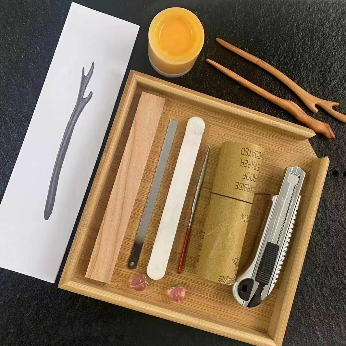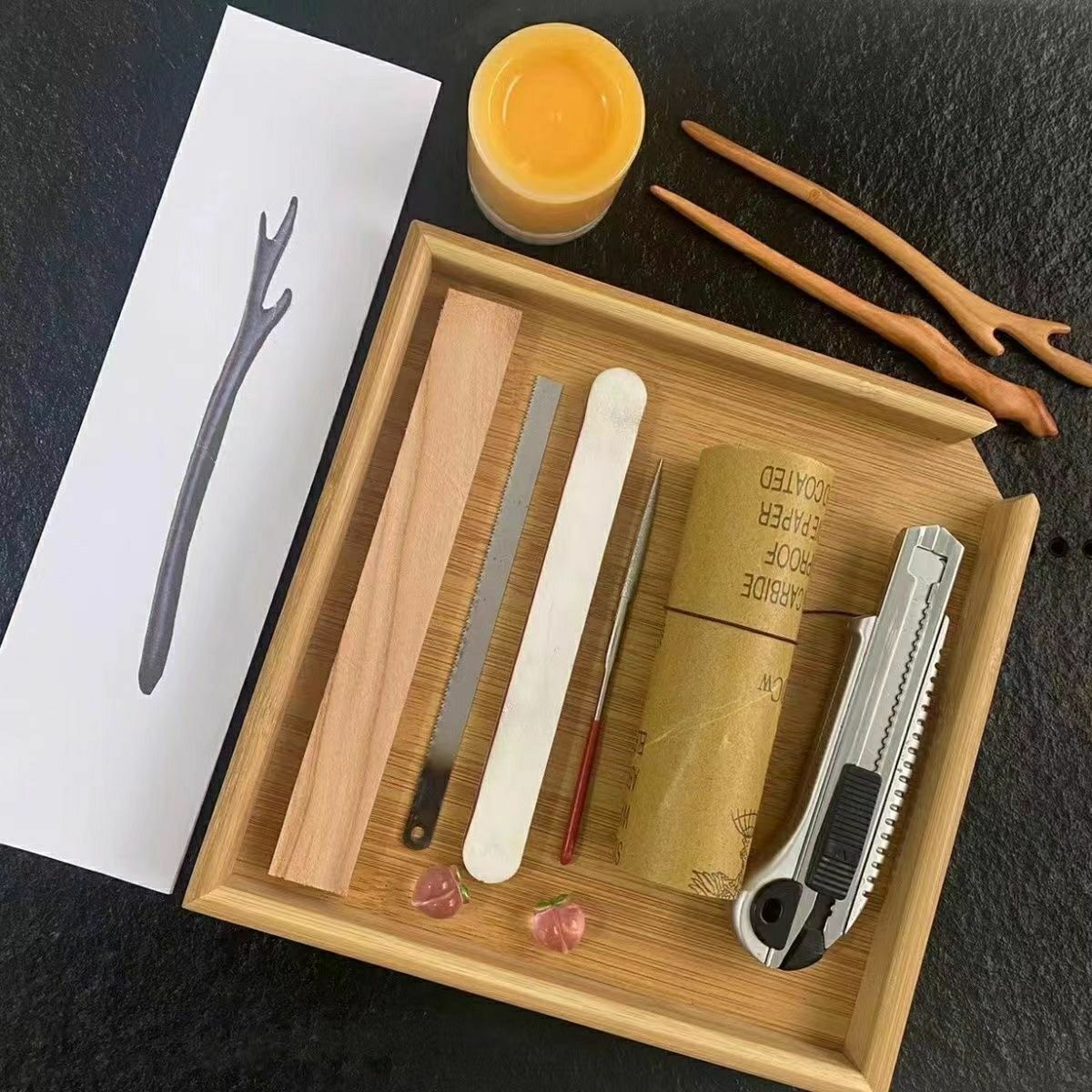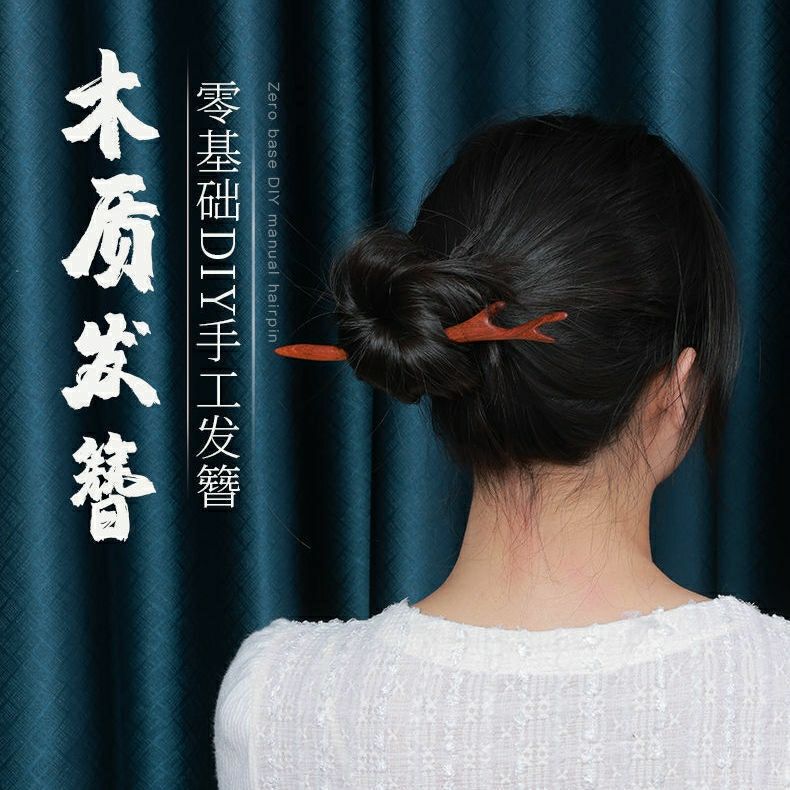 生日礼物手工diy桃木发簪工具材料包七夕情人节送女友紫檀木簪子