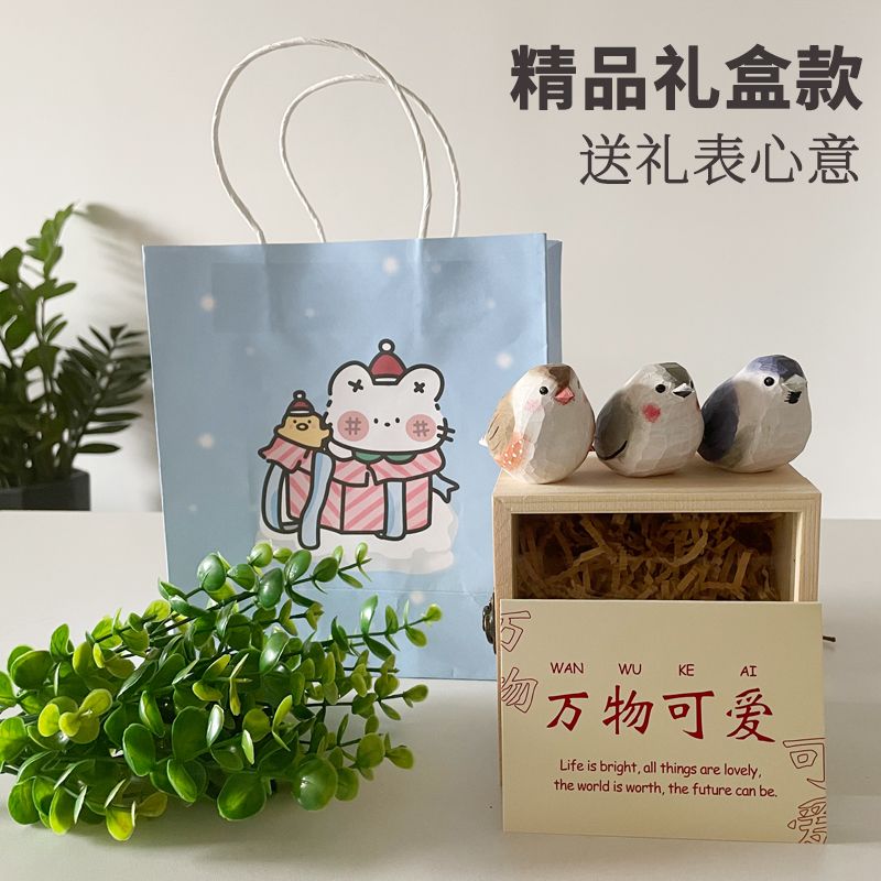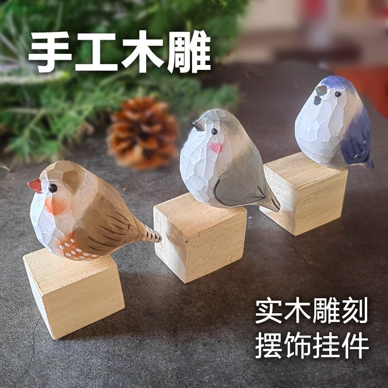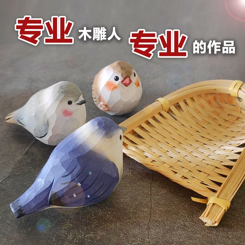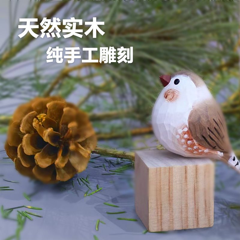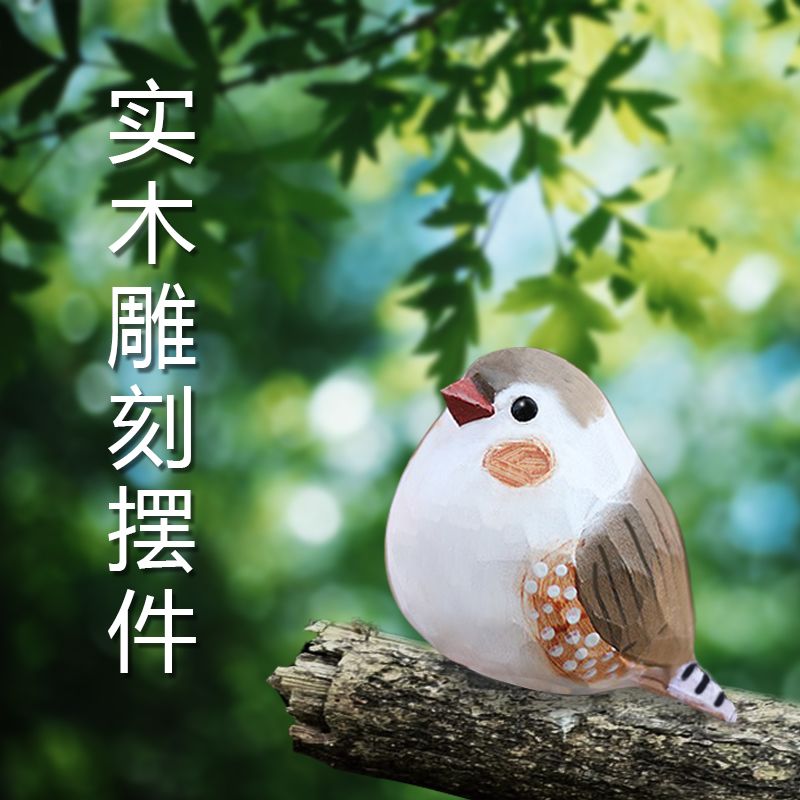 珍珠鸟纯手工木雕小鸟仿真木制雕刻朋友礼物小众高级可爱桌面摆件